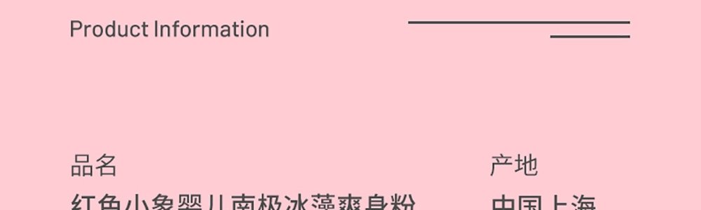 商品名称:红色小象 南极冰藻爽身粉 100g/瓶