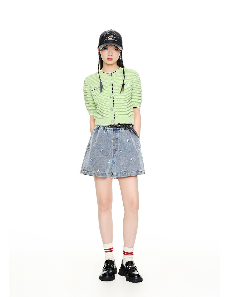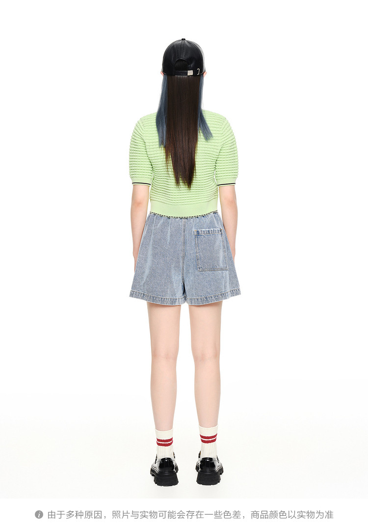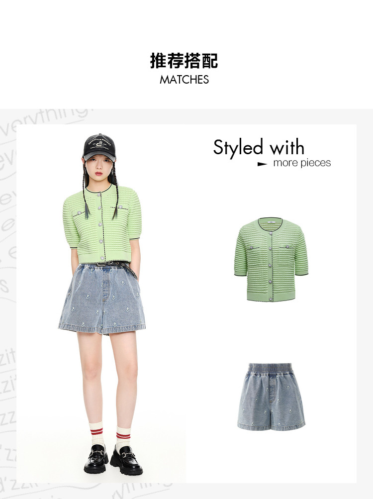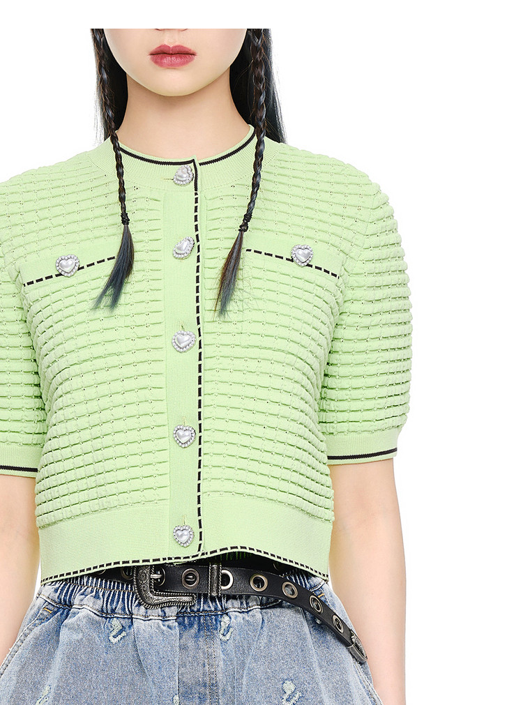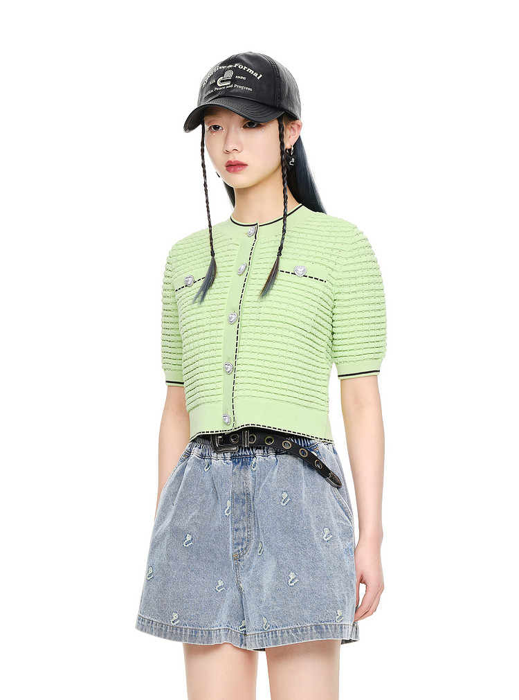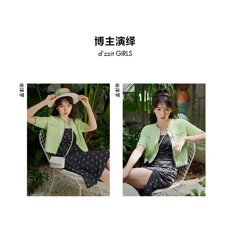 地素夏秋季专柜时尚短款撞色薄款针织衫开衫短袖上衣外套女 368267
