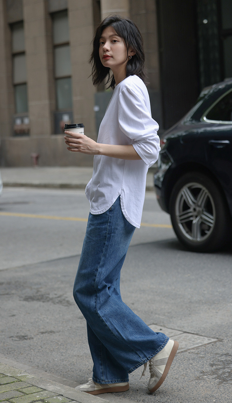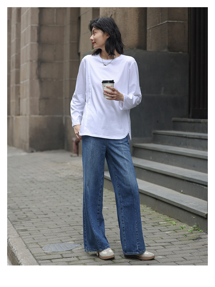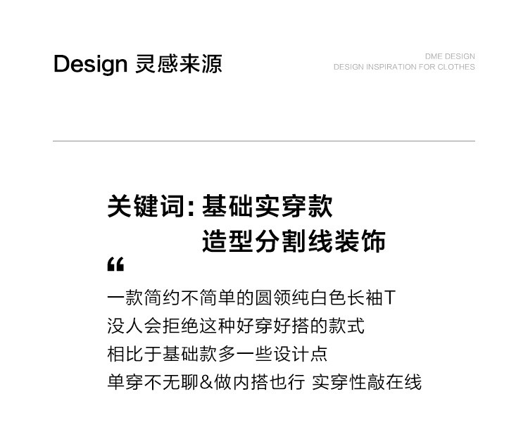 商品名称:【基础款白T】春款圆领分割线设计可内搭可外穿长袖T恤女 720066