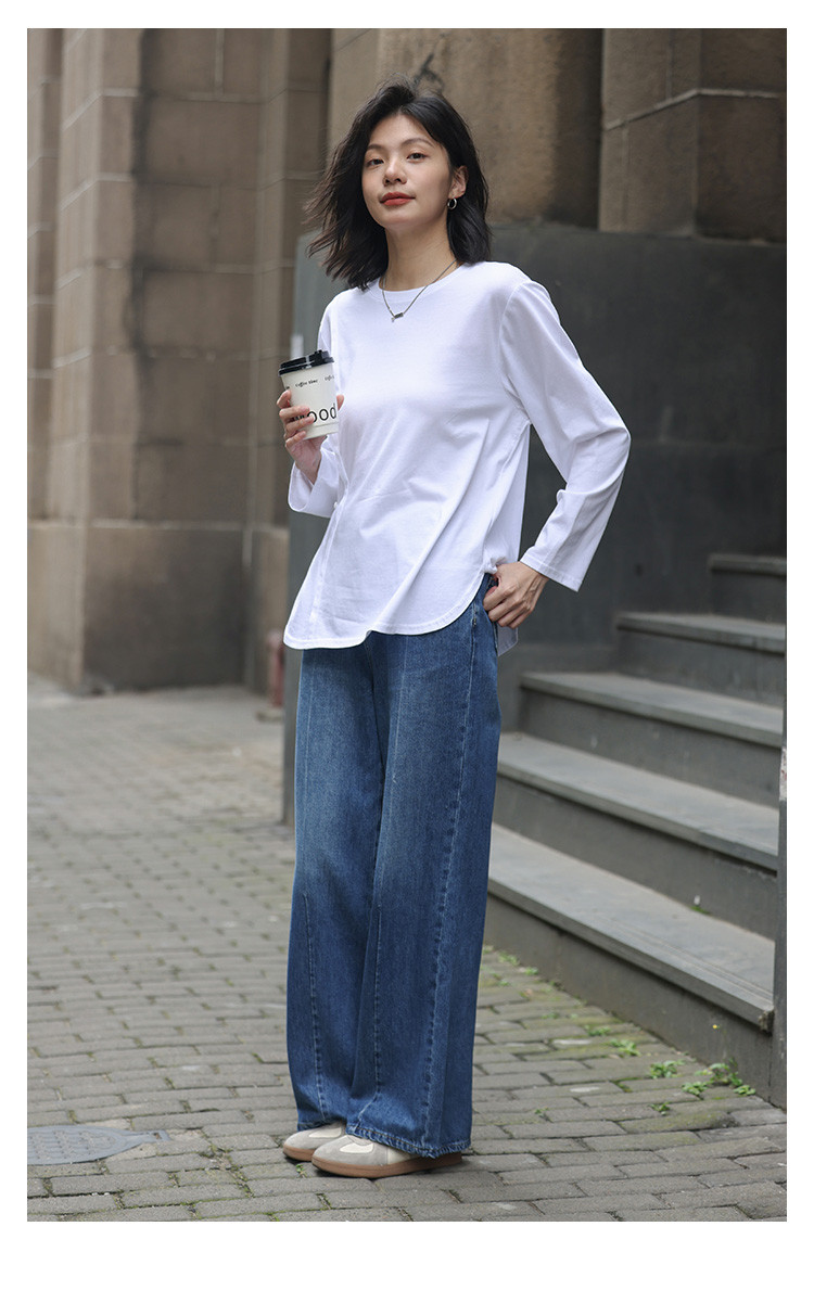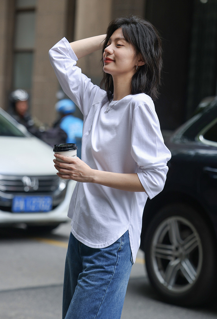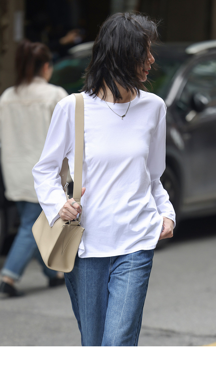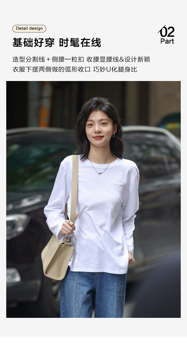 【基础款白T】春款圆领分割线设计可内搭可外穿长袖T恤女 720066