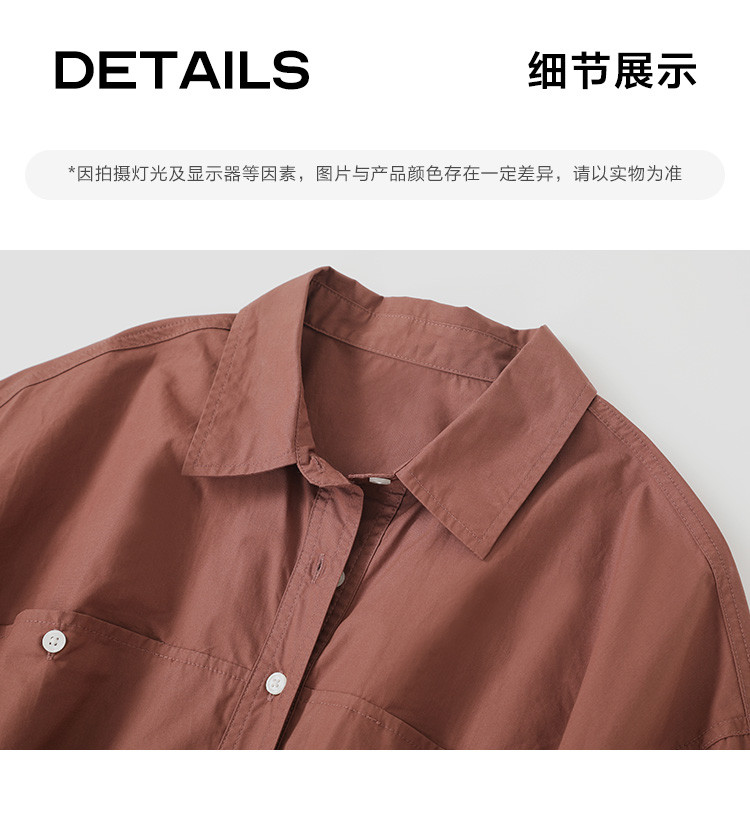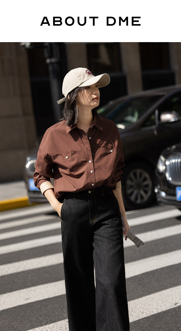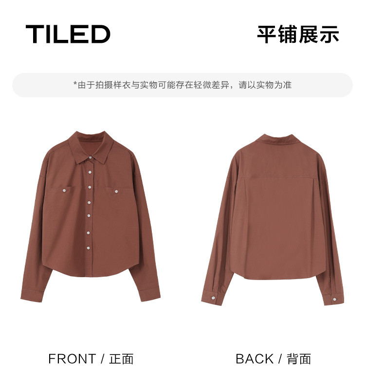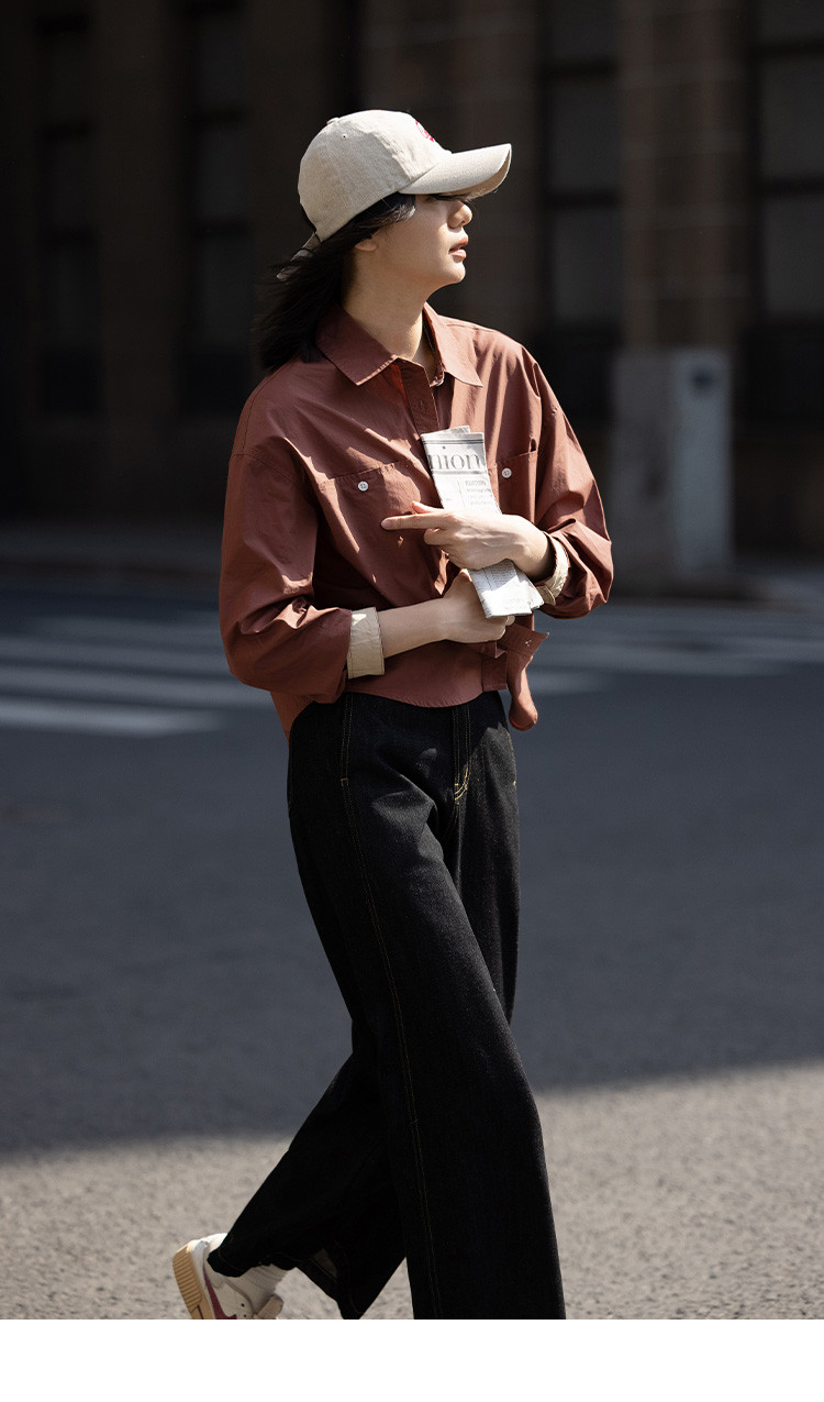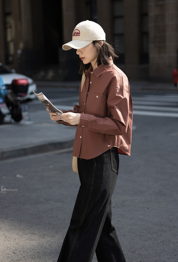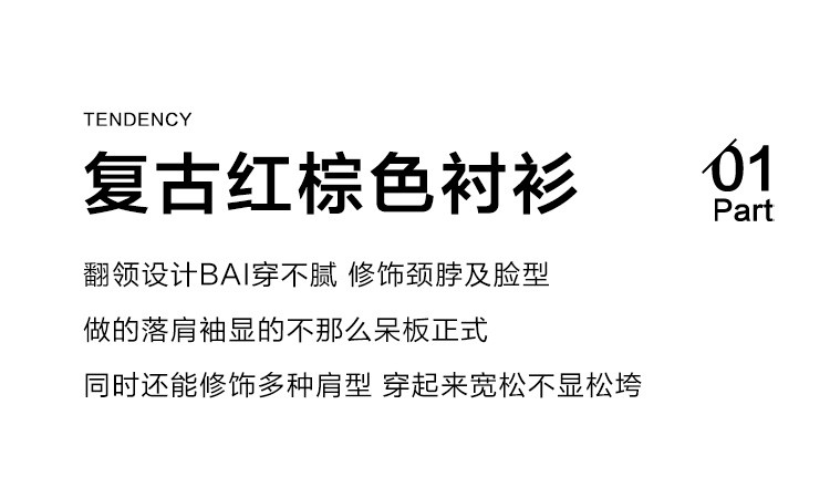 商品名称:【休闲翻领衬衫】秋复古红棕色袖口拼接撞色设计衬衫女 863426