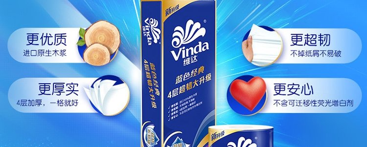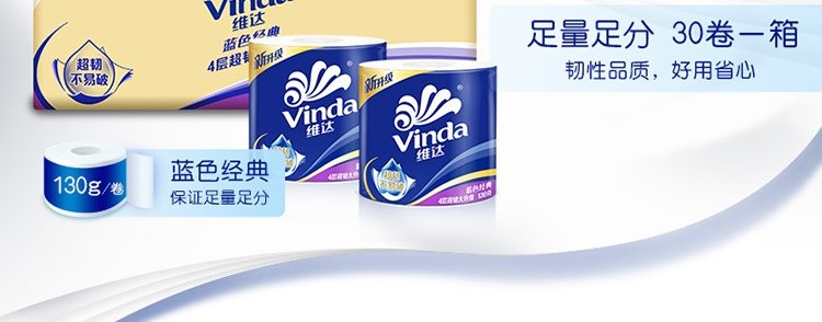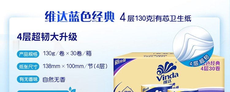 商品名称:维达 蓝色经典有芯卷纸4层 130g/卷(30卷/箱)