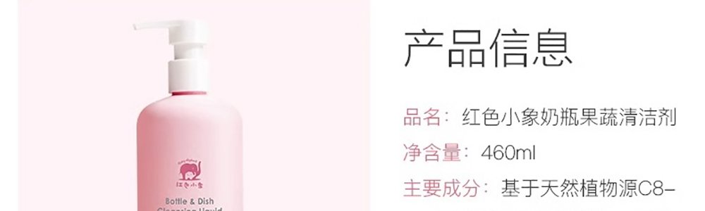 商品名称:红色小象 奶瓶果蔬清洁剂 460ml/瓶