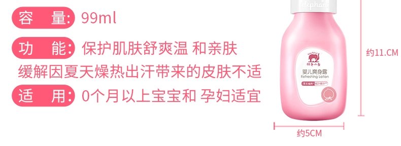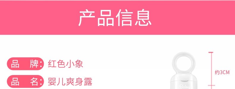 商品名称:红色小象 婴儿爽身露 99ml/瓶