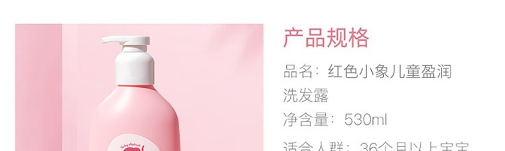 商品名称:红色小象 儿童盈润洗发露 530ml/瓶