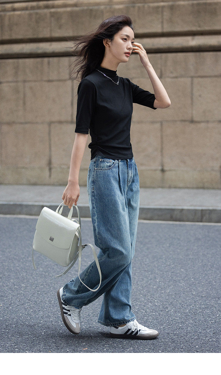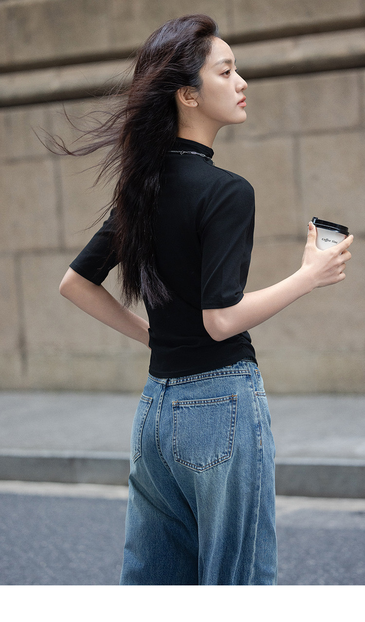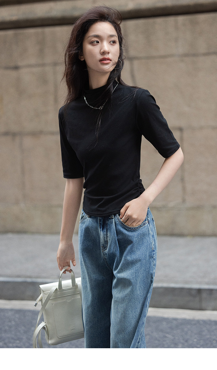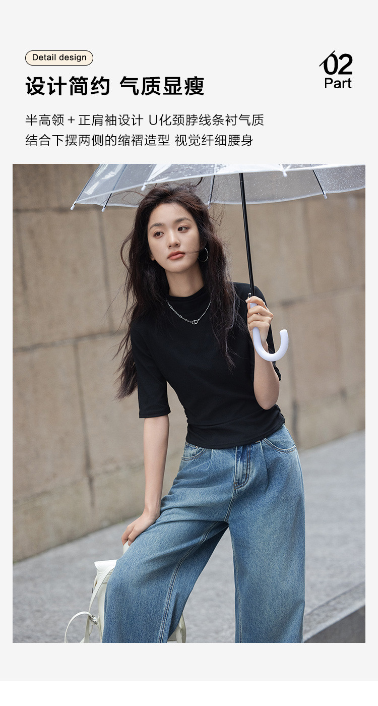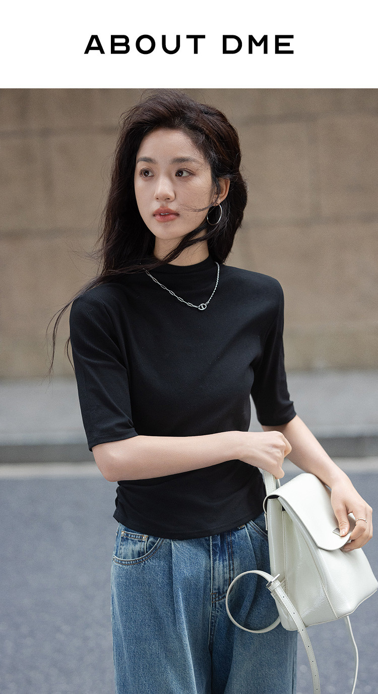 【基础款内搭T恤】春款气质百搭中高领修身中袖T恤女 859330