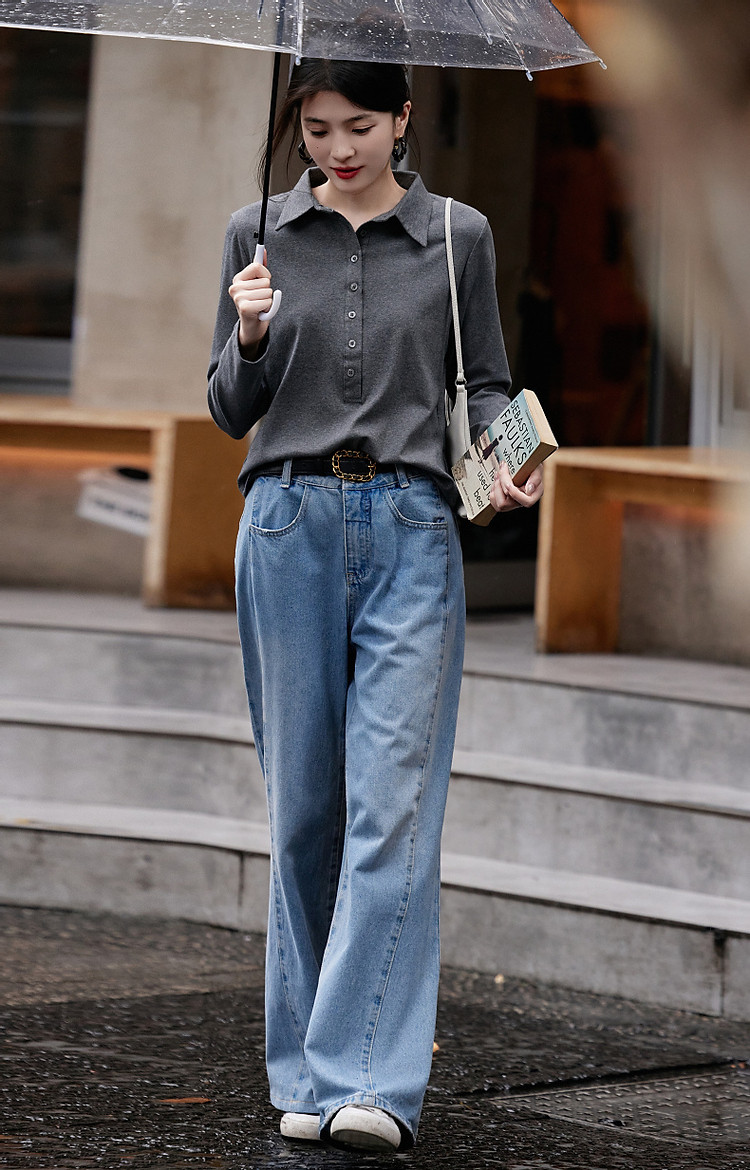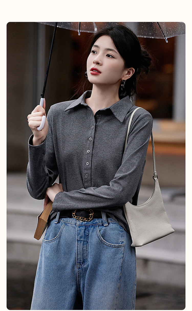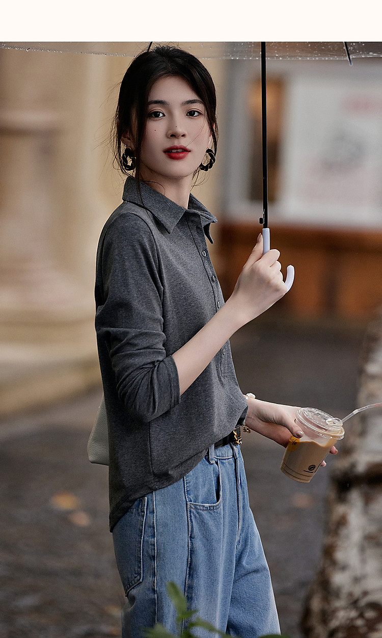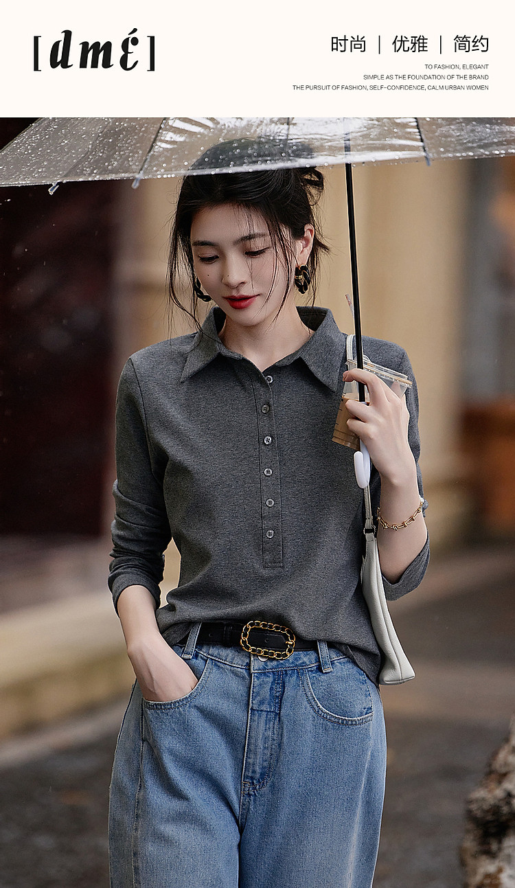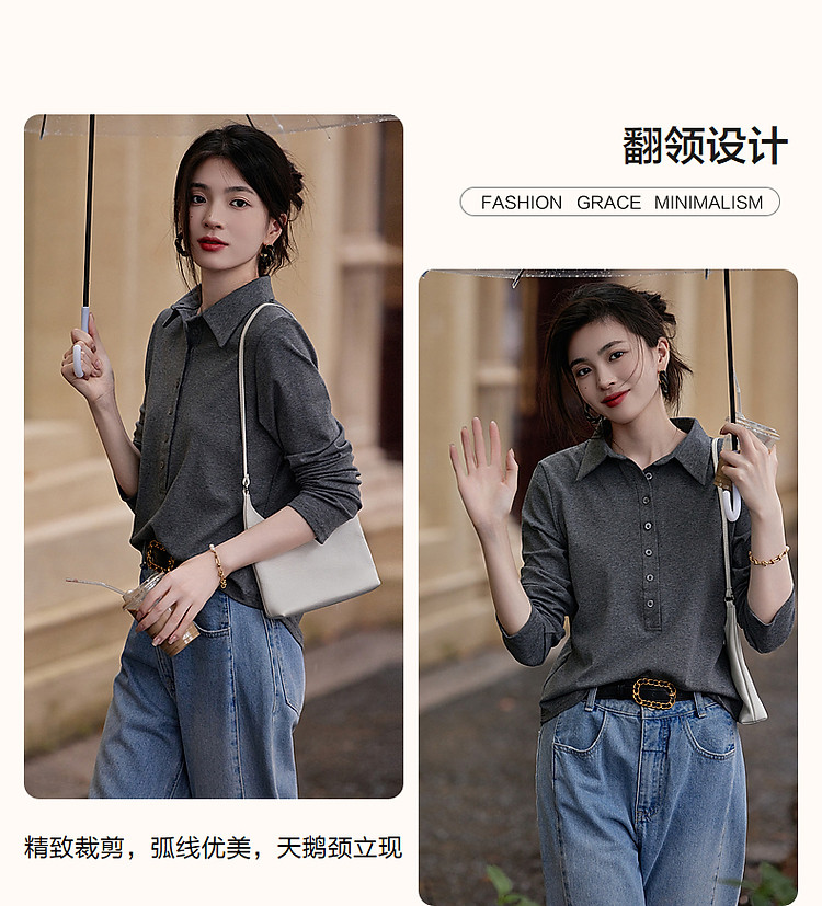 商品名称:【优雅女绅士】秋动感氛围Polo衫舒适棉氨好搭遮肉女式t恤 887681