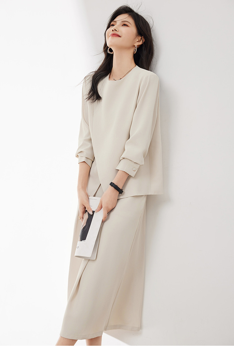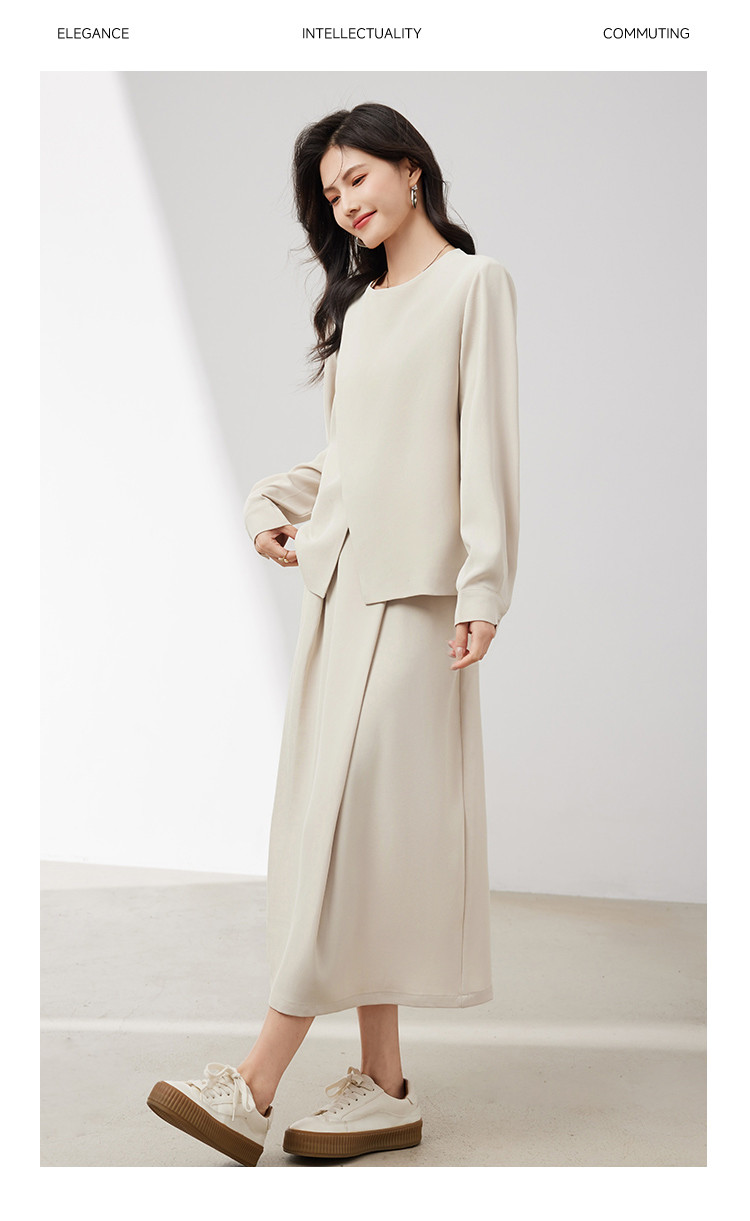 商品名称:【简约通勤时尚两件套】2025春季新款不规则衬衫半身裙套装女 170776