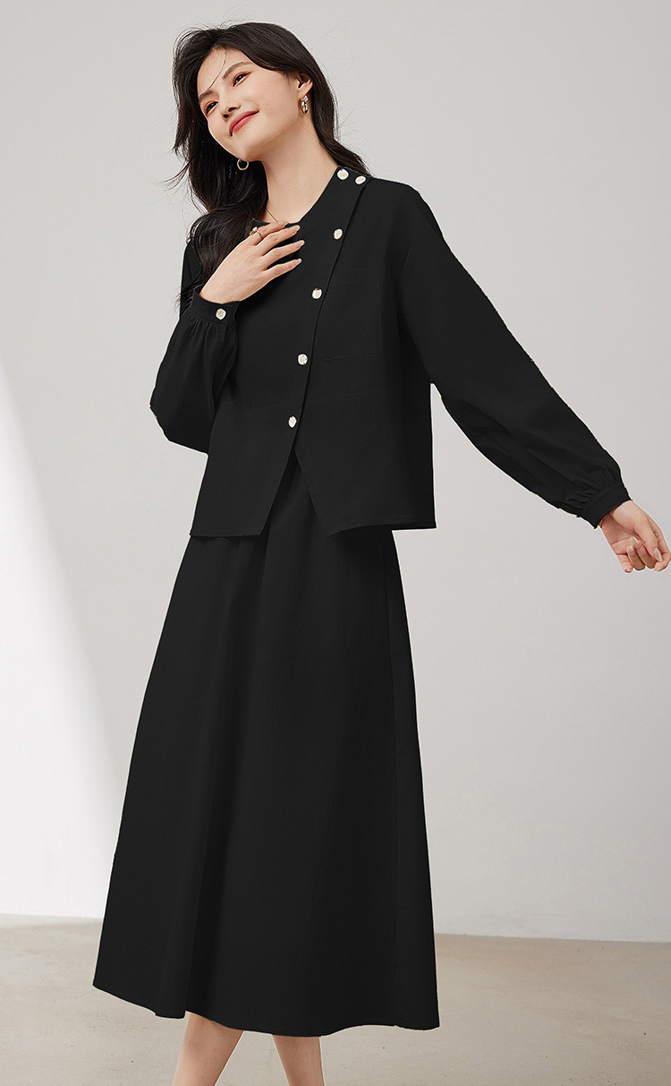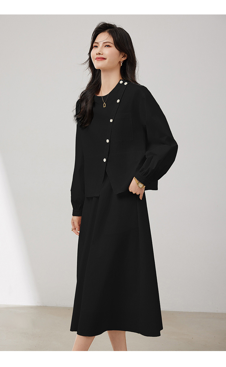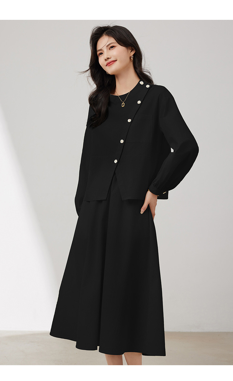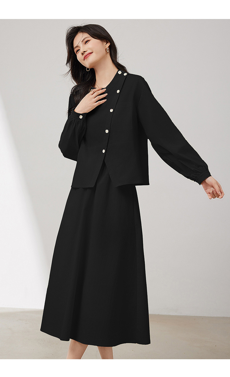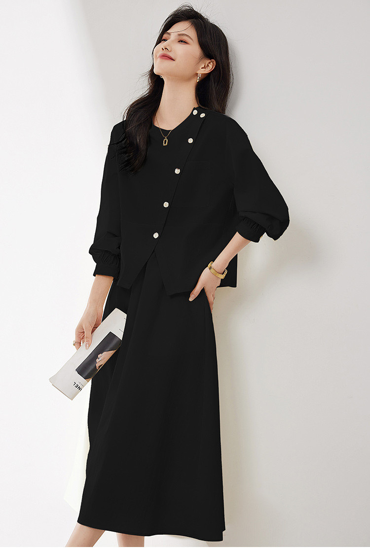 商品名称:时尚连衣裙套装女2025春季新款简约气质衬衫搭半身裙两件套 820056