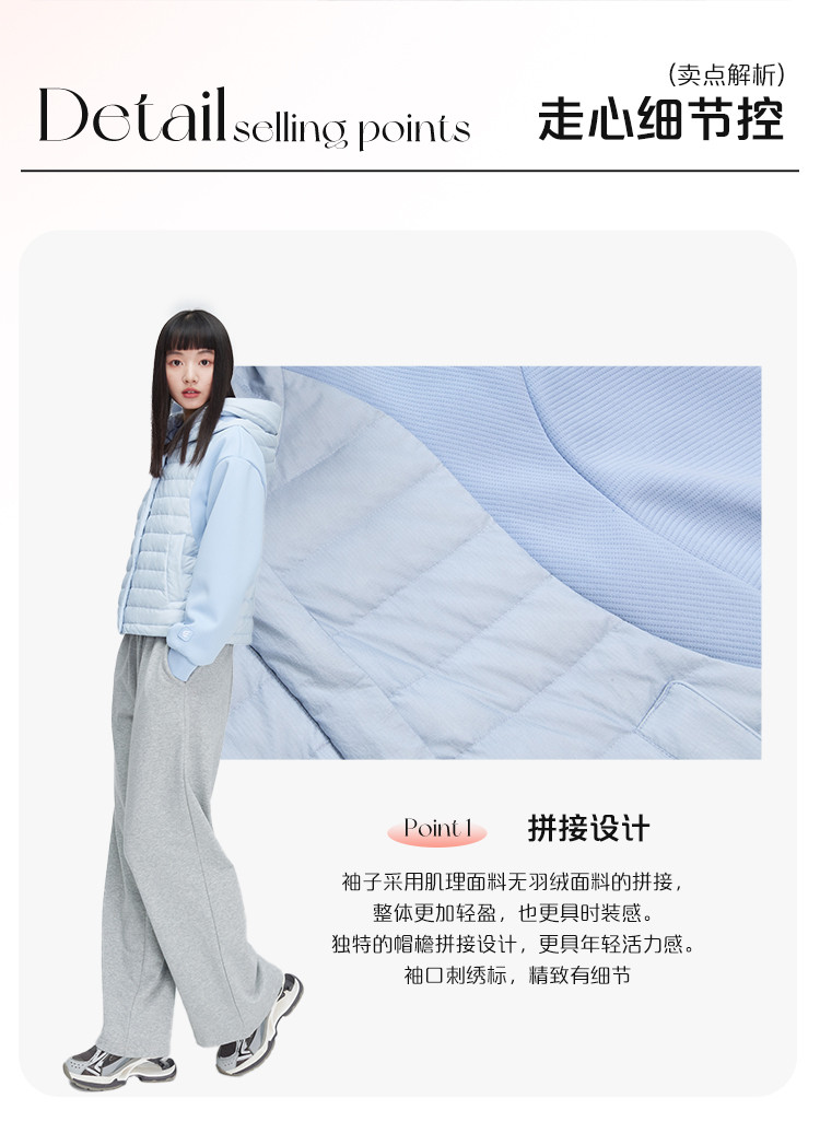 商品名称:【商场同款】时尚梭织拼接轻薄短装女轻薄羽绒服女短款鸭绒外套 311958