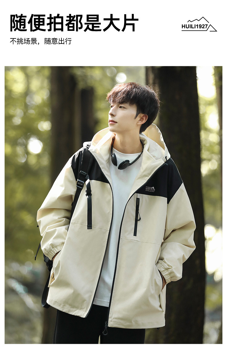 曼西尔奴男士防风潮流时尚舒适百搭休闲连帽外套夹克228229TM
