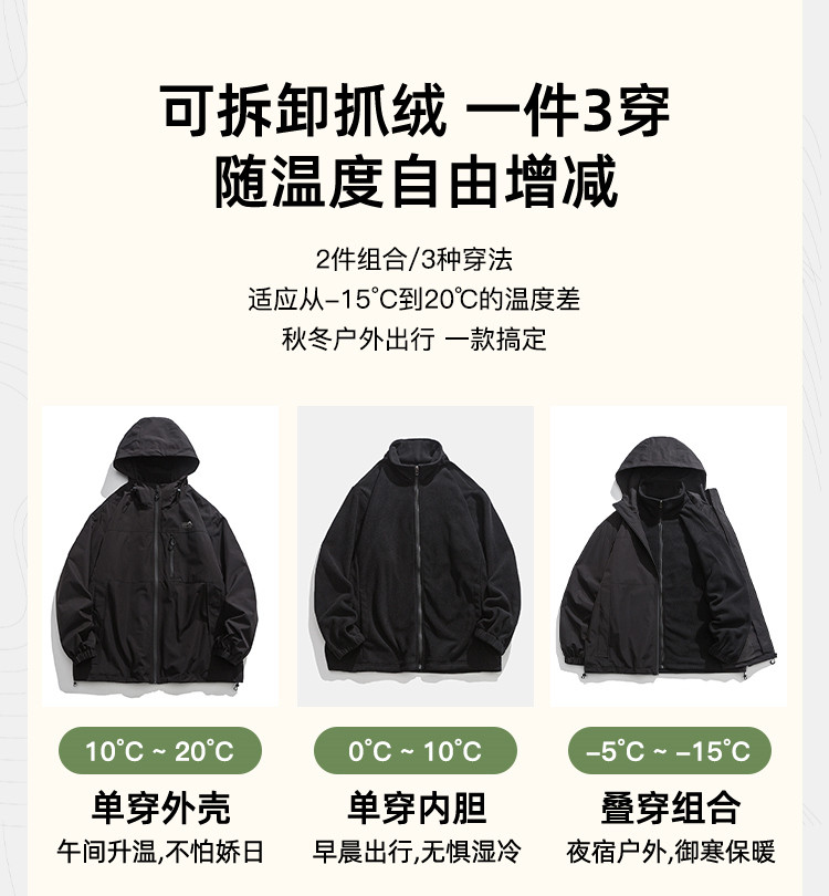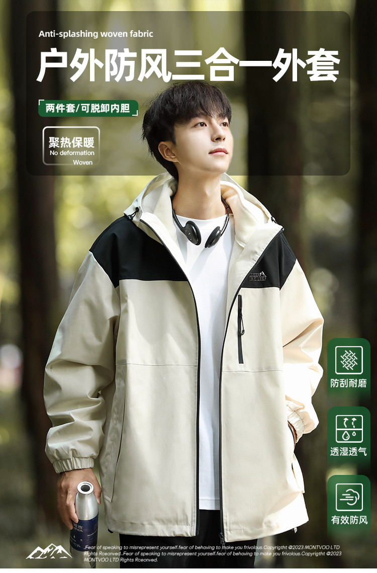 商品名称:【三合一可拆卸内胆】山系户外徒步露营夹克外套男登山防风棉服 619795