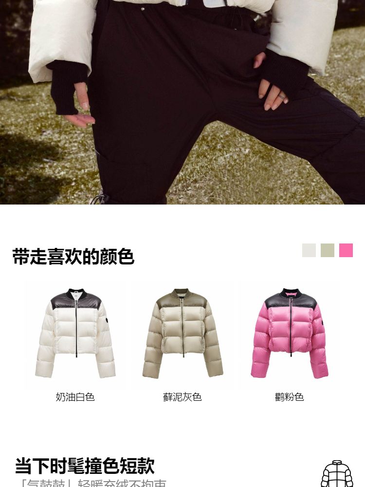 商品名称:【90白鸭绒|撞色设计】冬季圆领宽松短款羽绒服女 992154