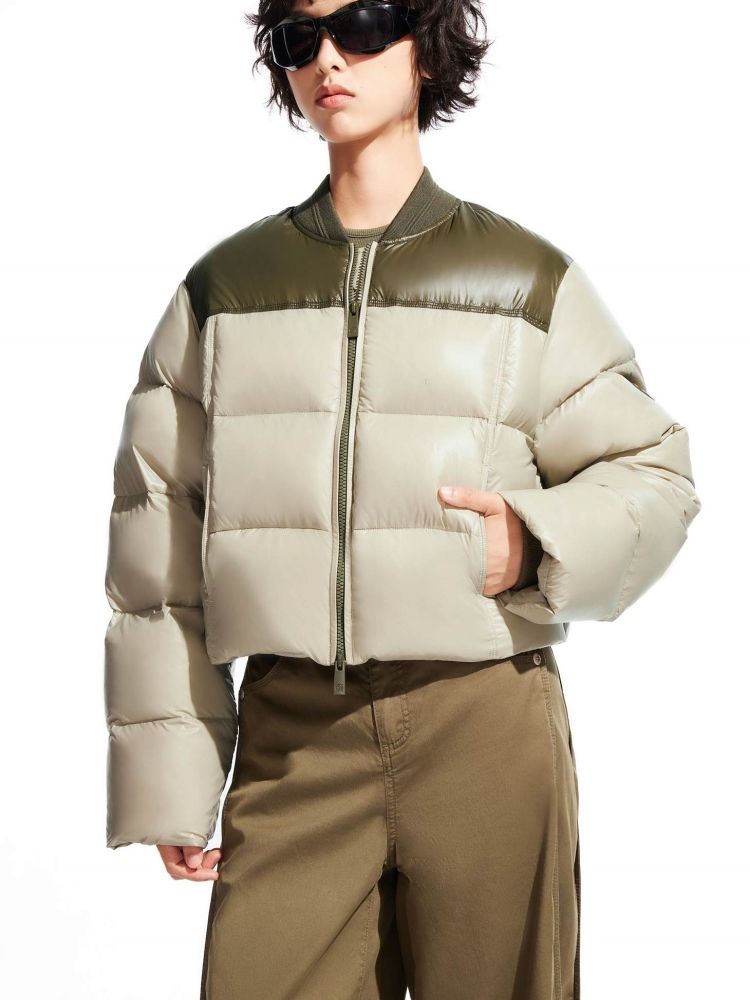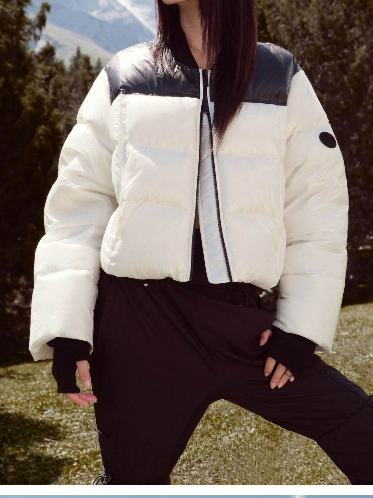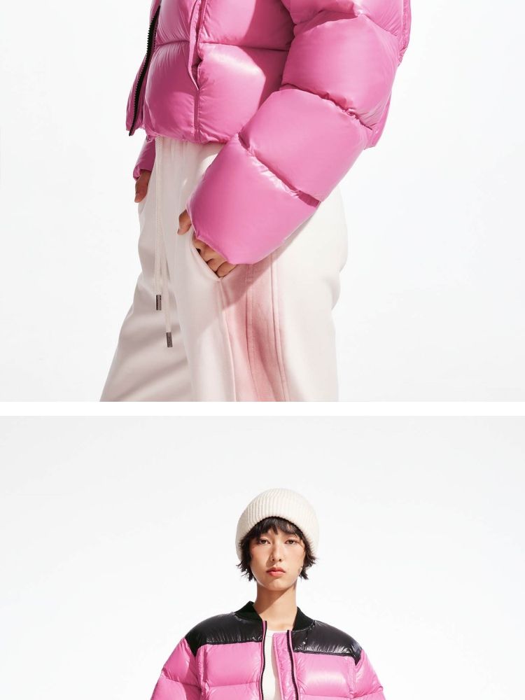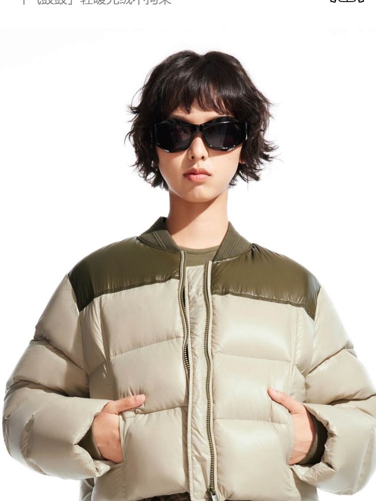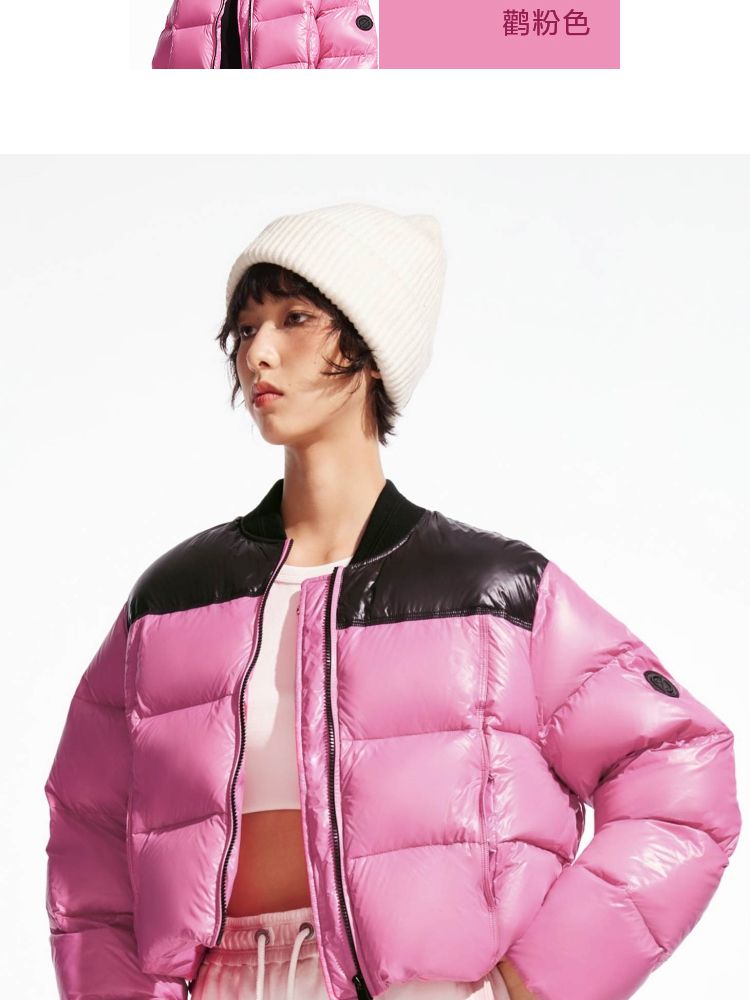 【90白鸭绒|撞色设计】冬季圆领宽松短款羽绒服女 992154