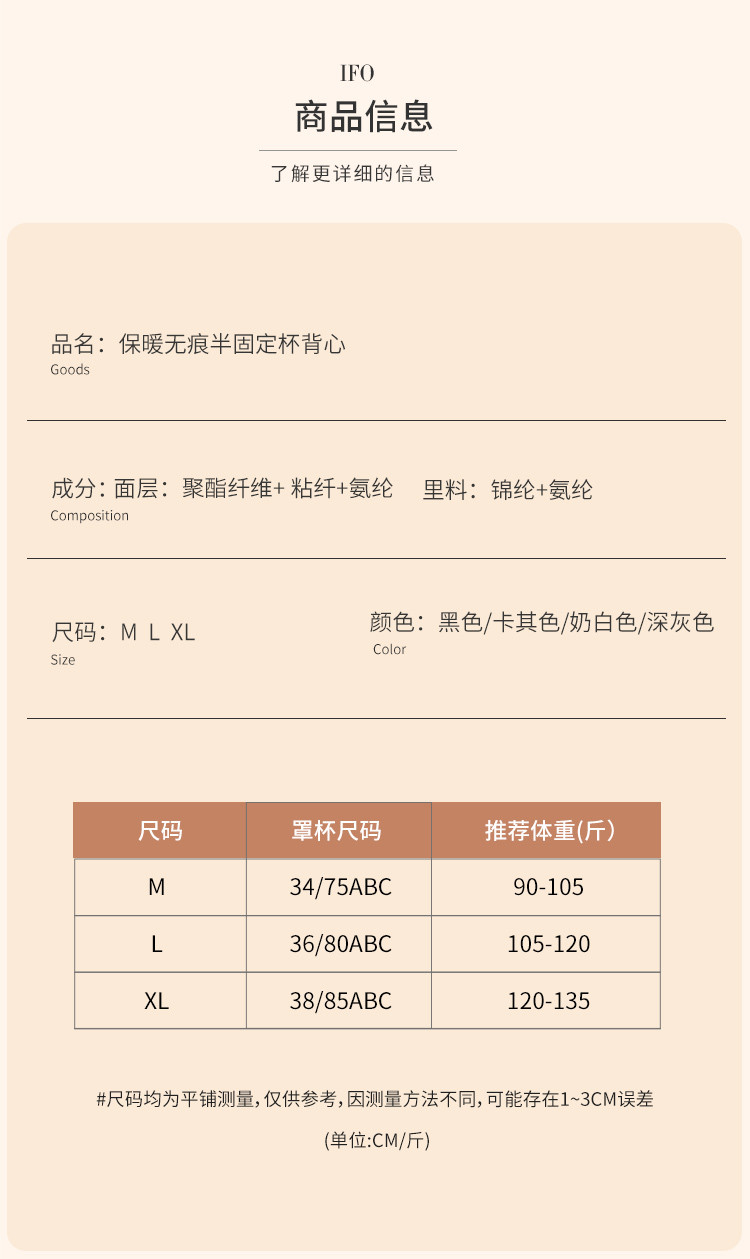 商品名称:【自带胸垫】保暖舒适无痕女士打底衫女内衣秋衣背心女可外穿秋冬 455902