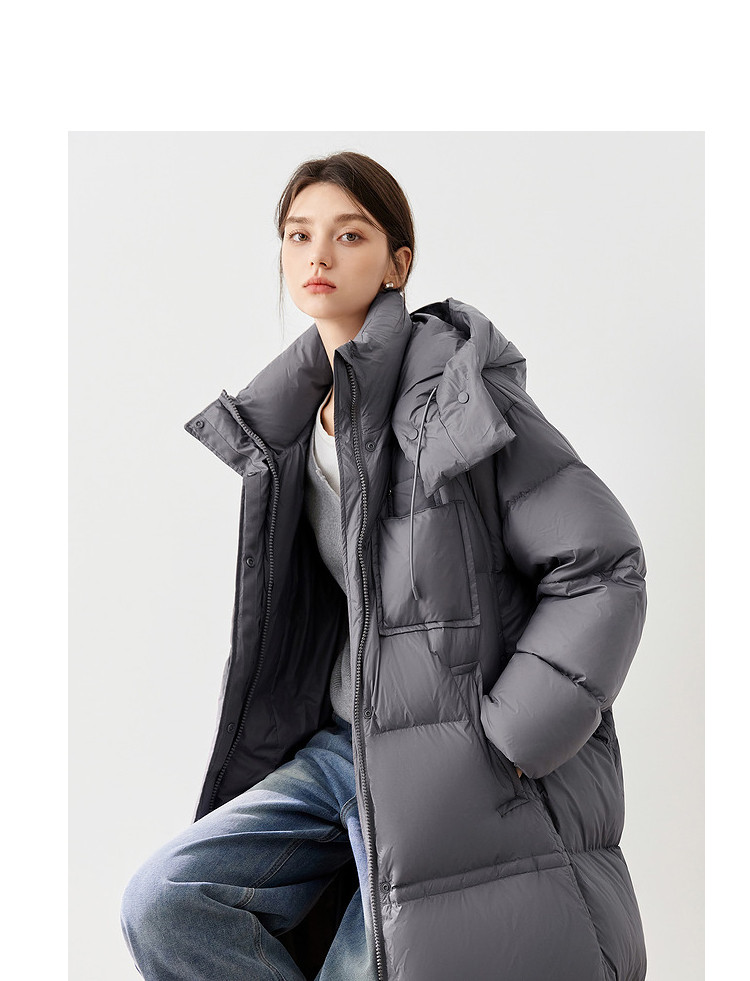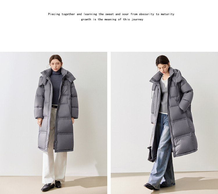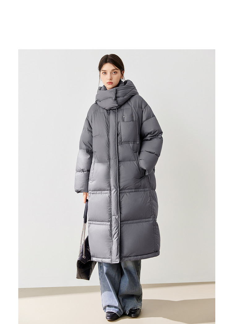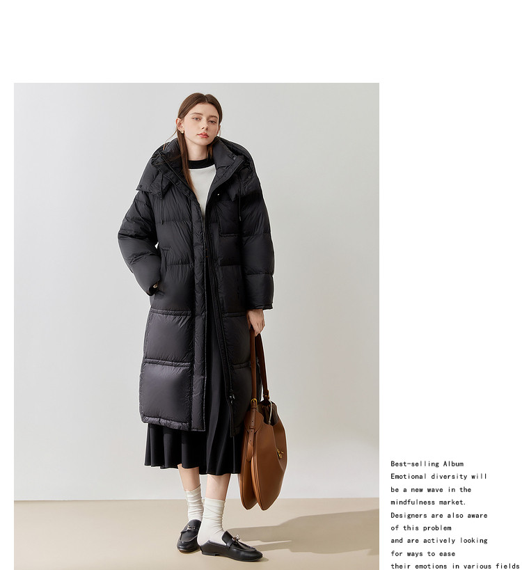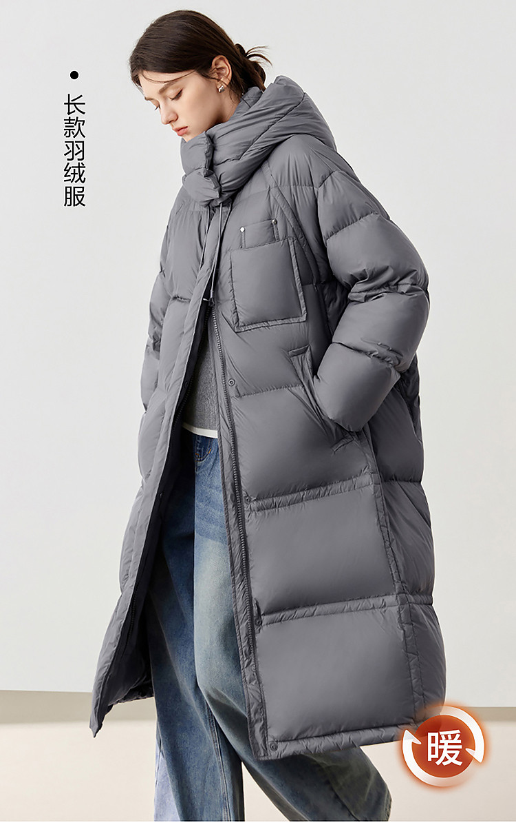 【90白鸭绒】2024冬季时髦保暖连帽长款羽绒服流行双拉链 315860