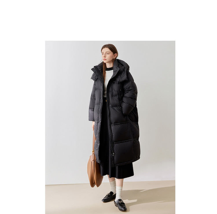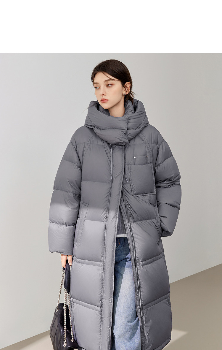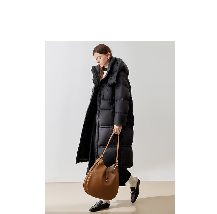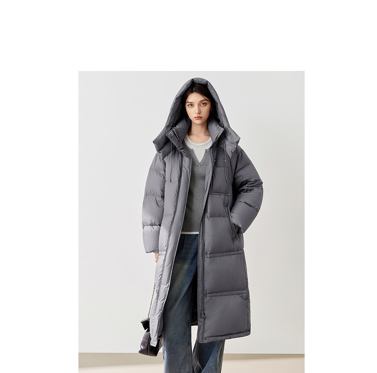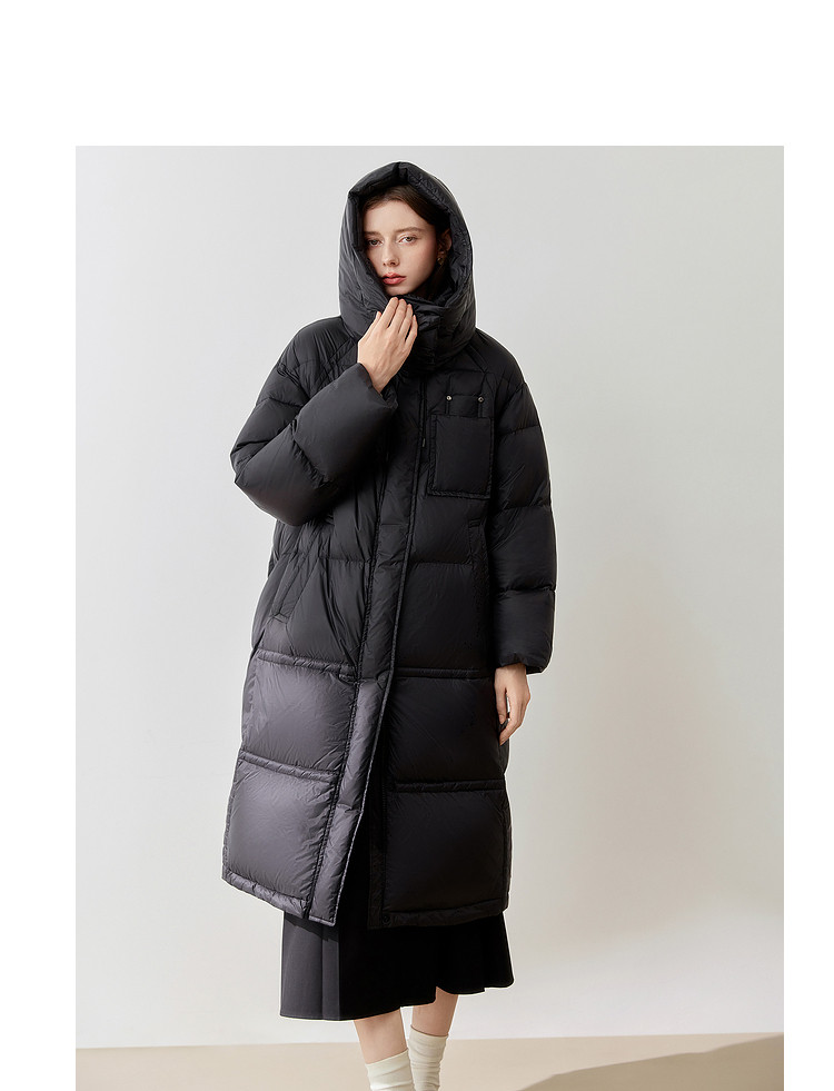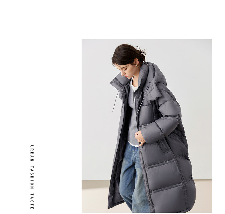 【90白鸭绒】2024冬季时髦保暖连帽长款羽绒服流行双拉链 315860
