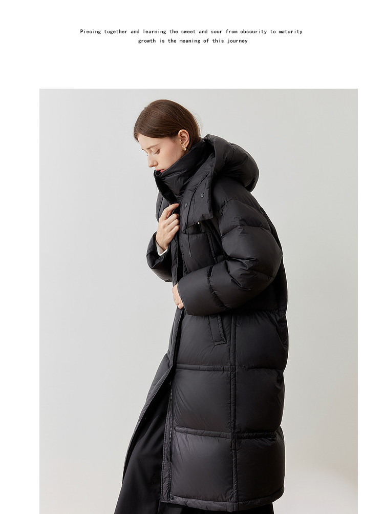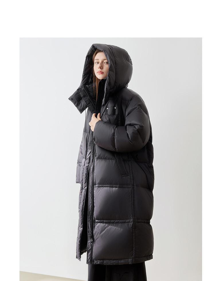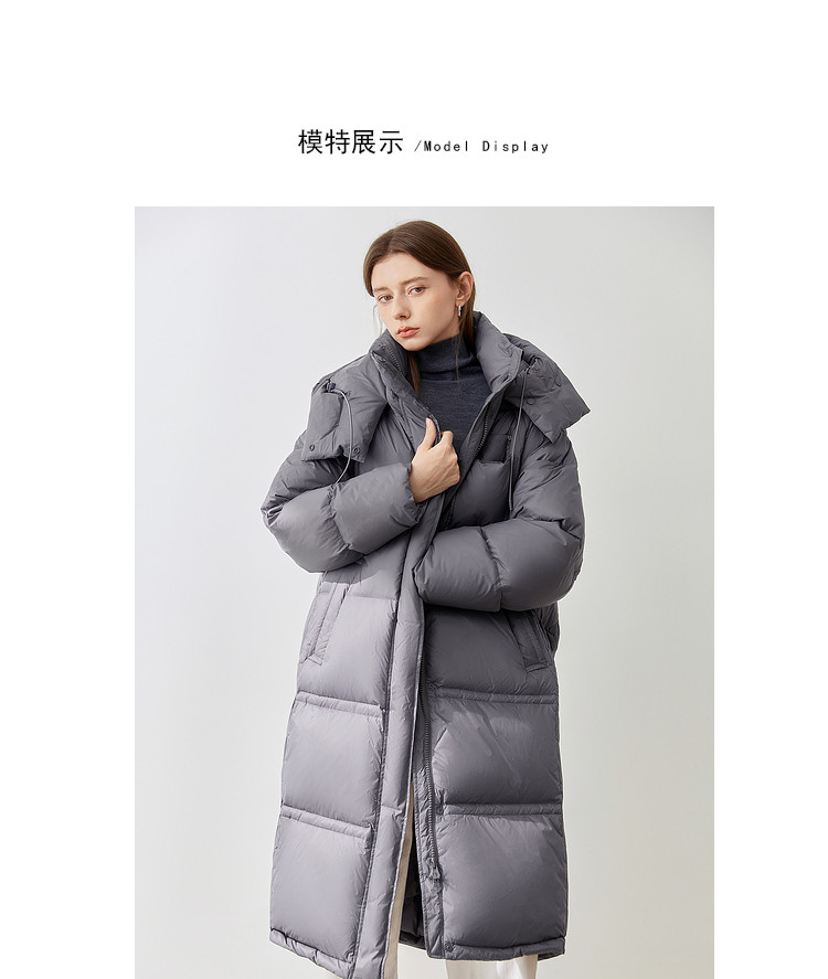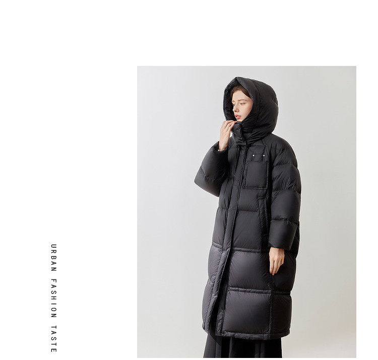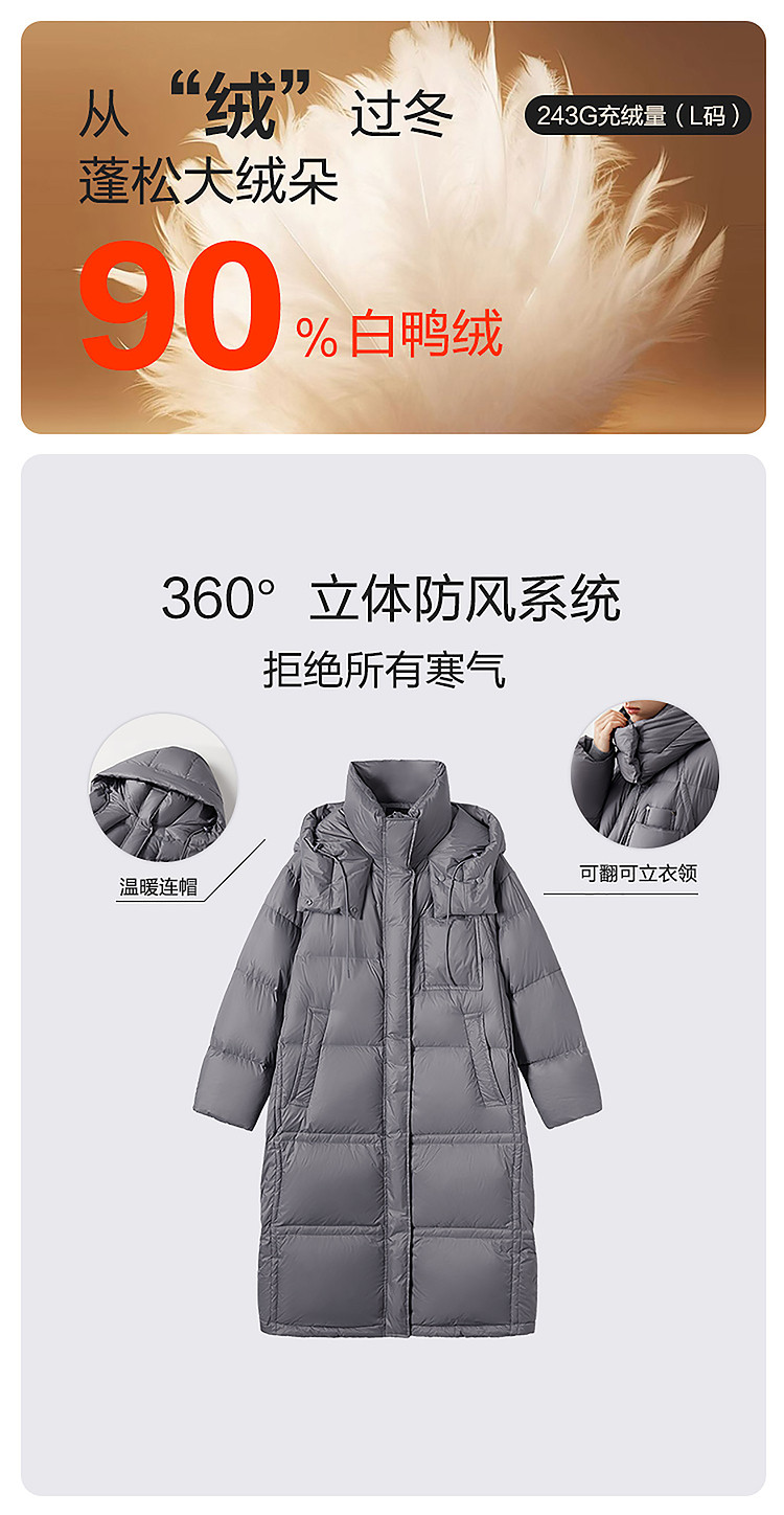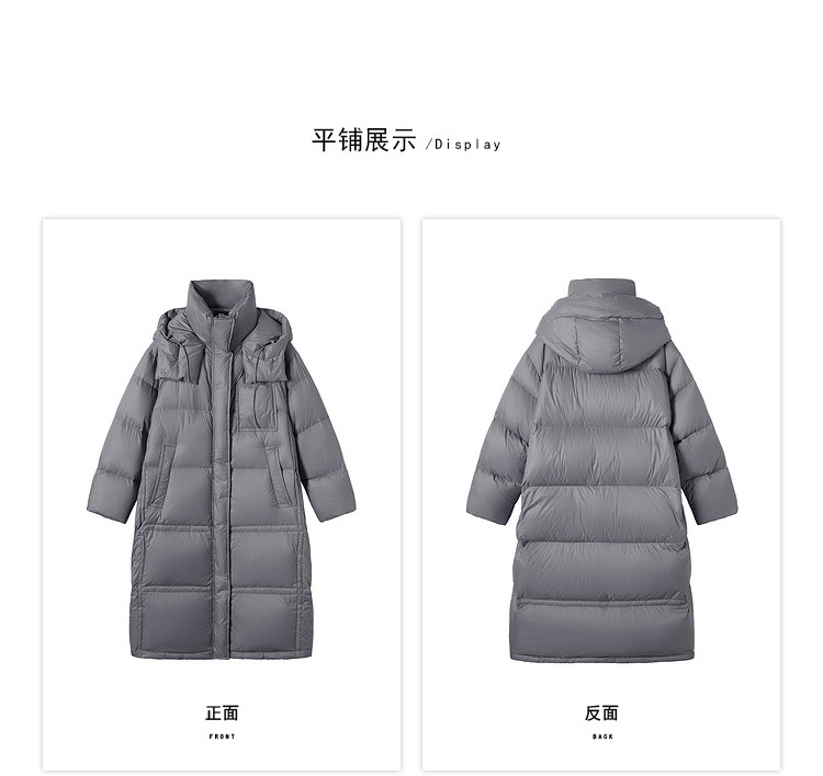 商品名称:【90白鸭绒】2024冬季时髦保暖连帽长款羽绒服流行双拉链 315860