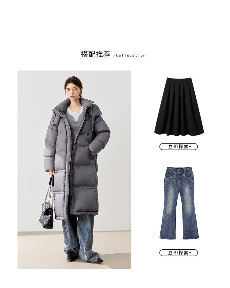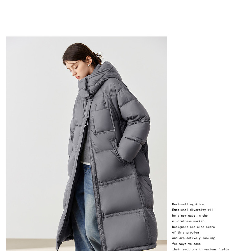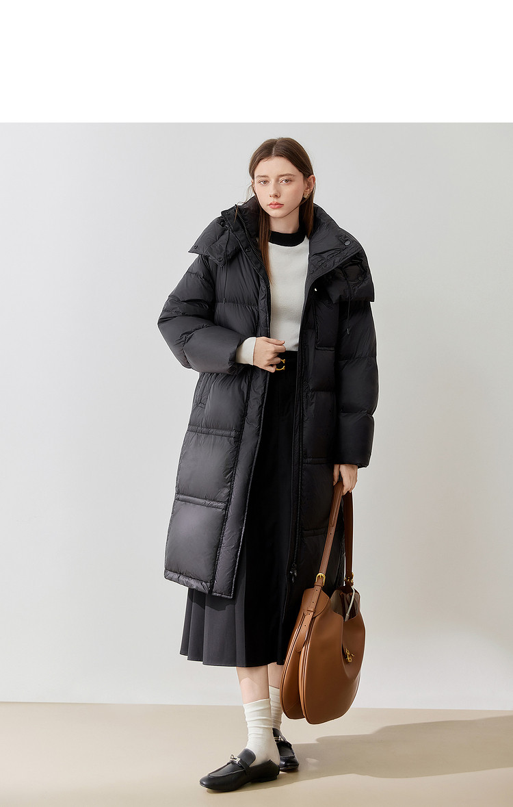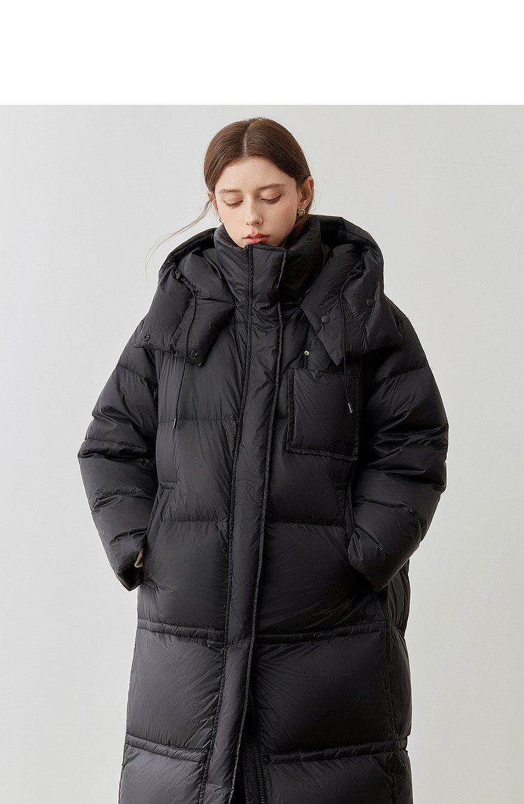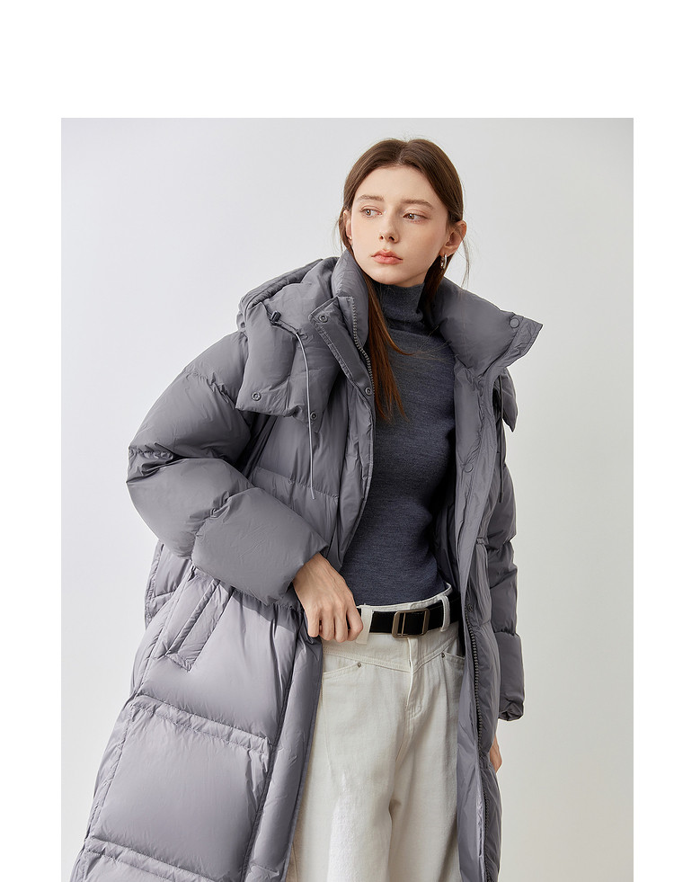 商品名称:【90白鸭绒】2024冬季时髦保暖连帽长款羽绒服流行双拉链 315860