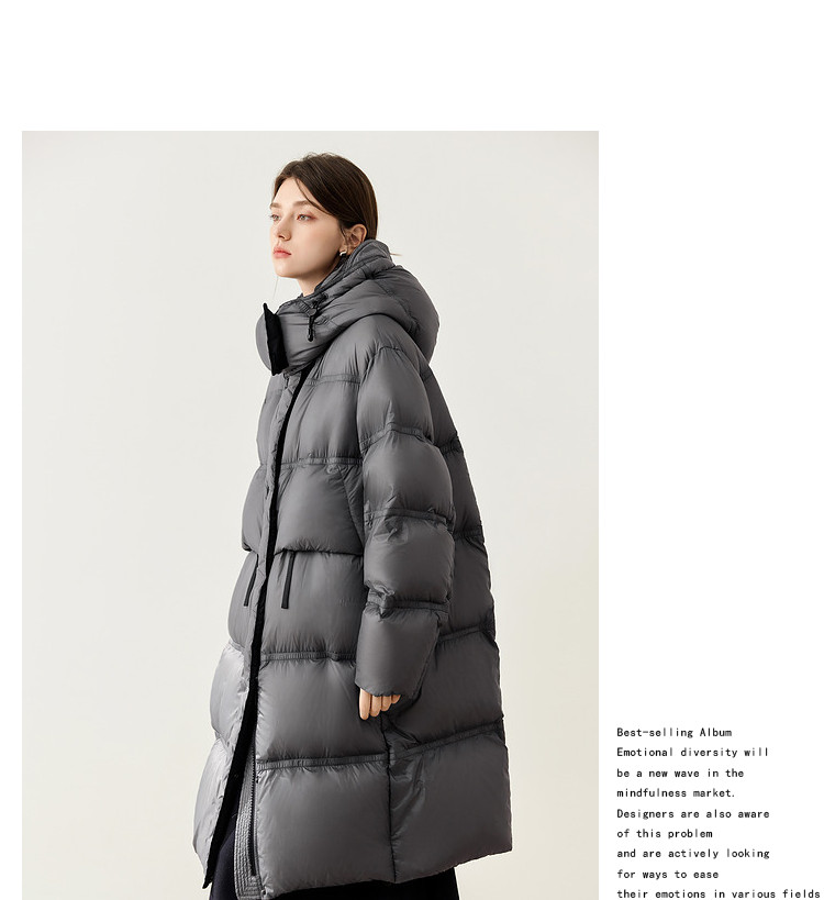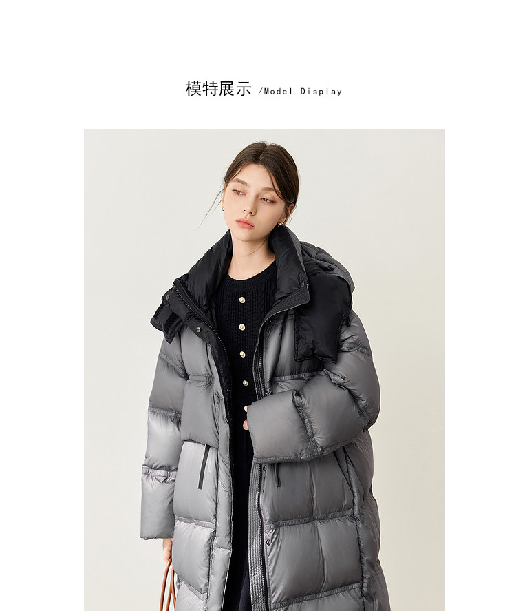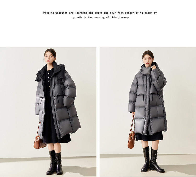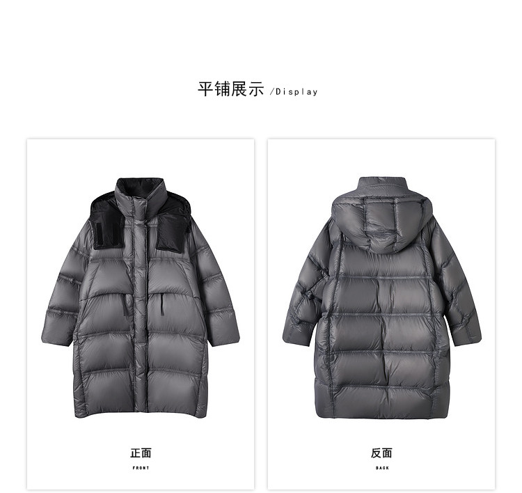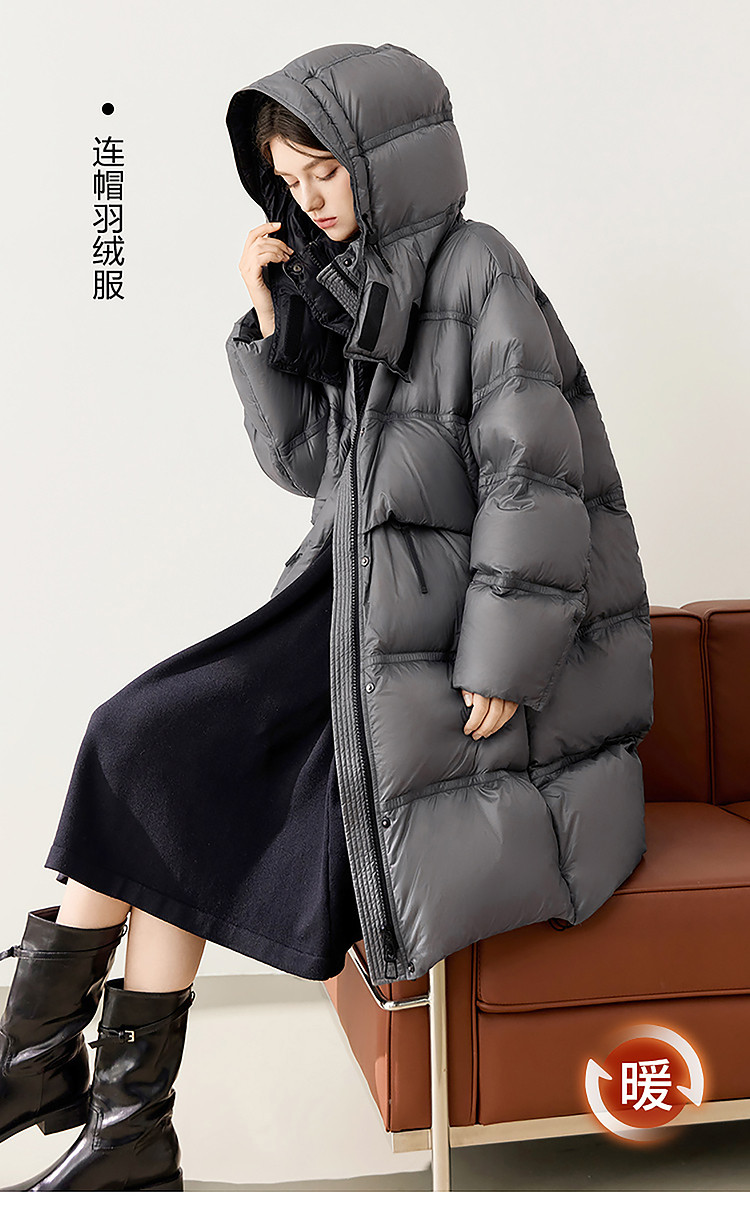 商品名称:【2024冬季】宽松连帽90白鸭绒长款羽绒服今年流行保暖外套 332244
