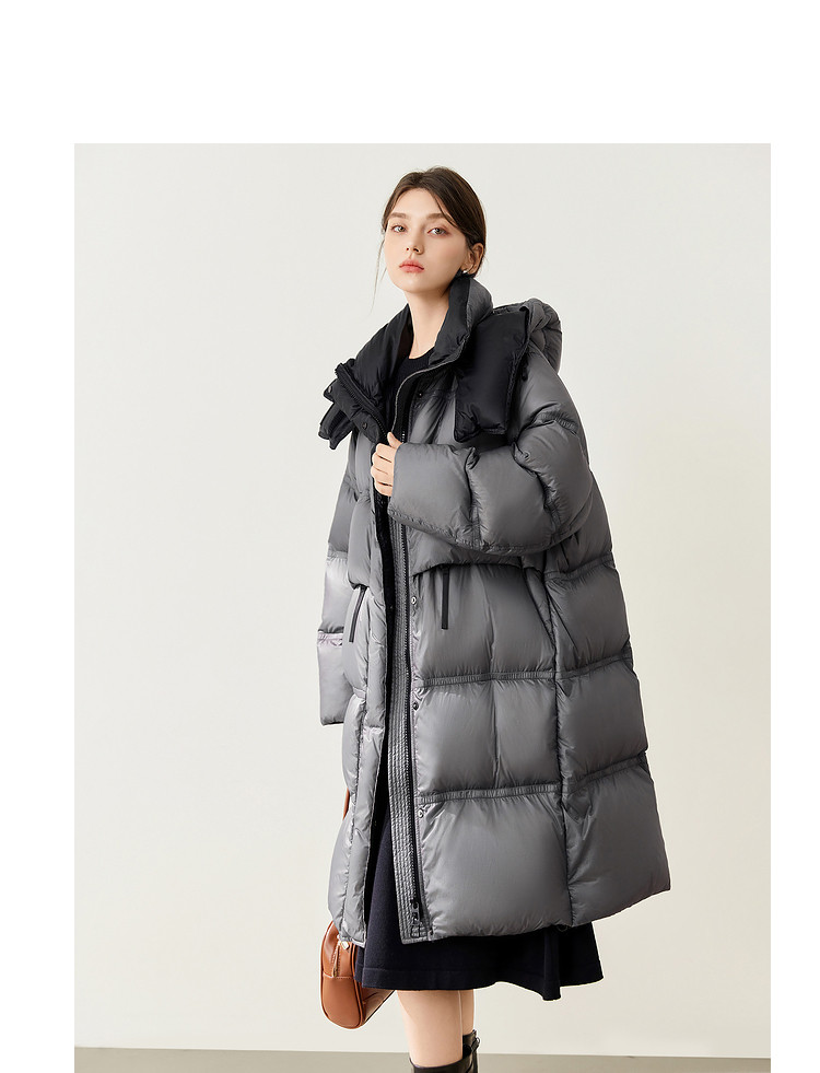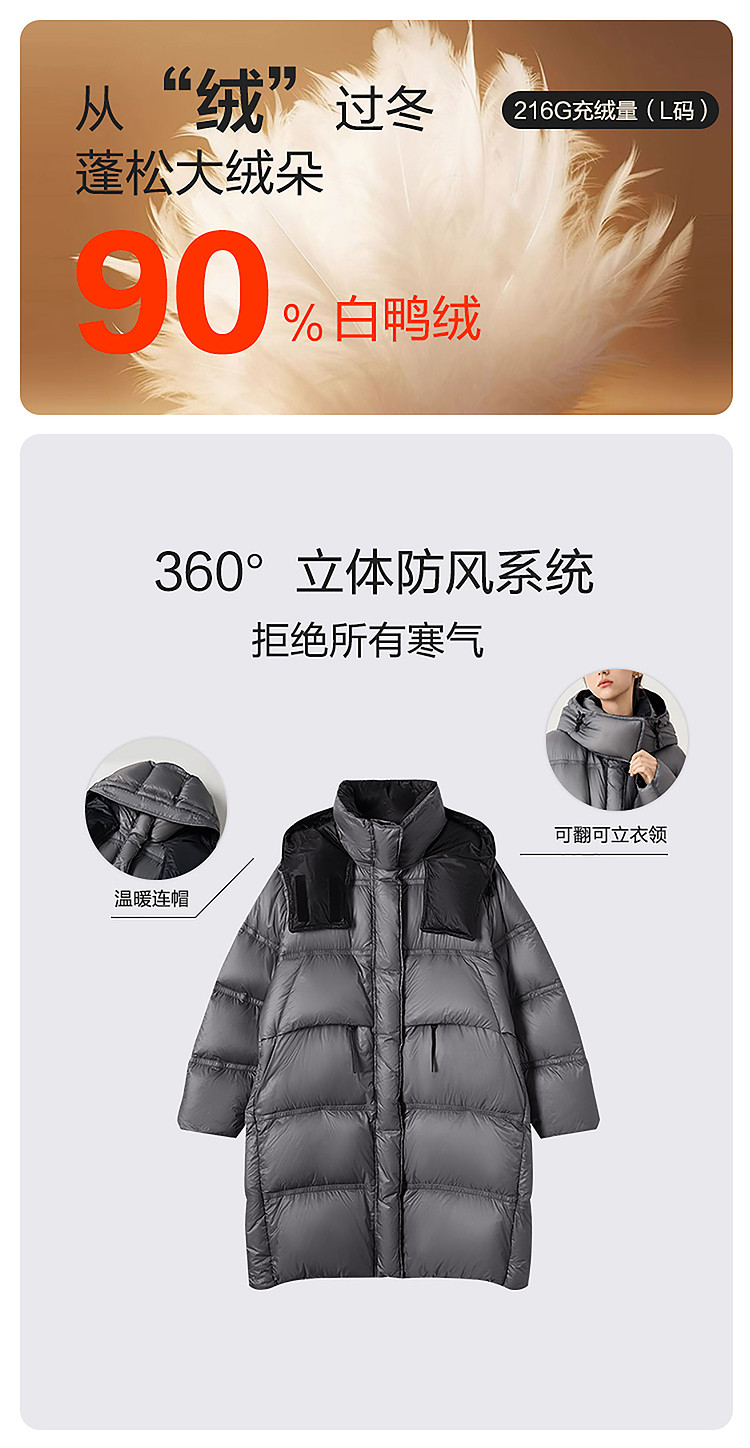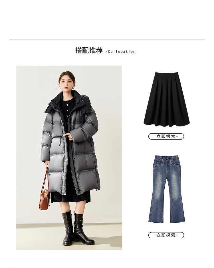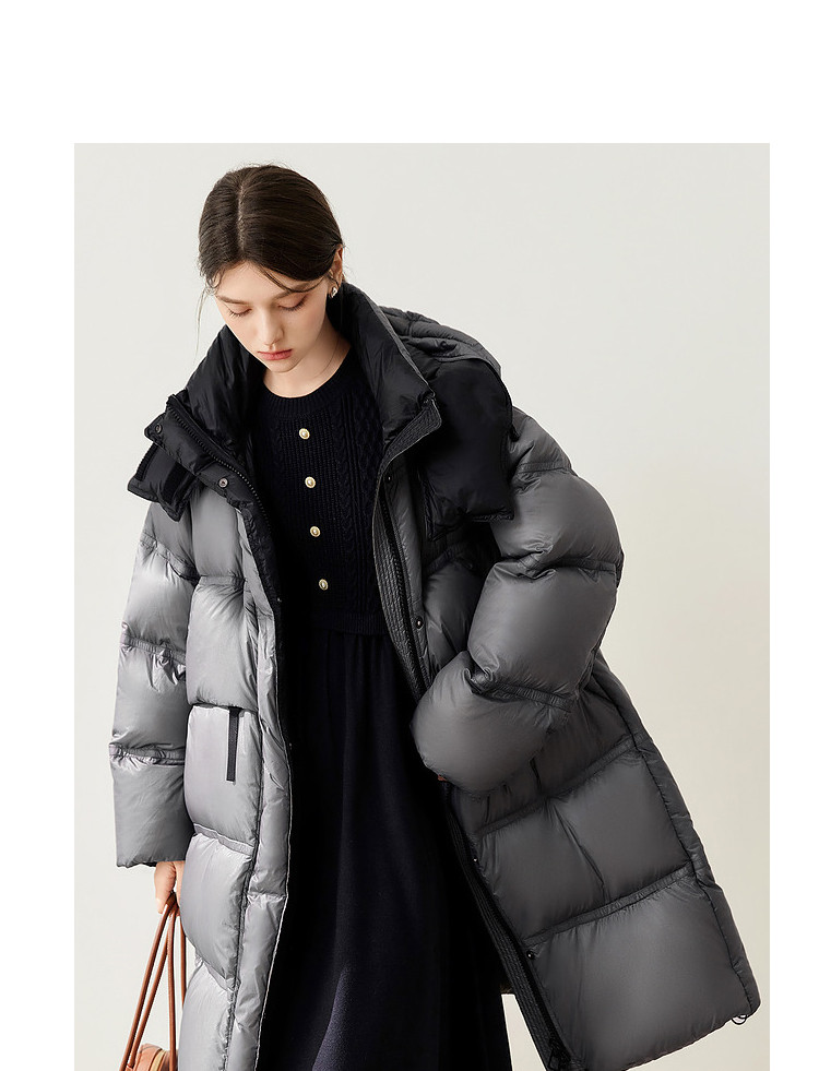 商品名称:【2024冬季】宽松连帽90白鸭绒长款羽绒服今年流行保暖外套 332244