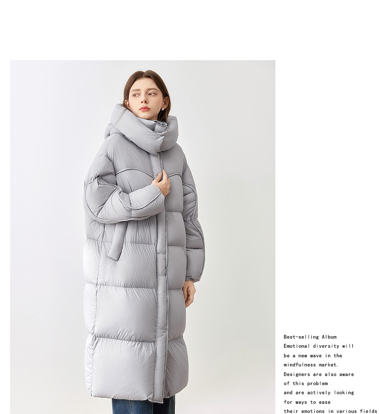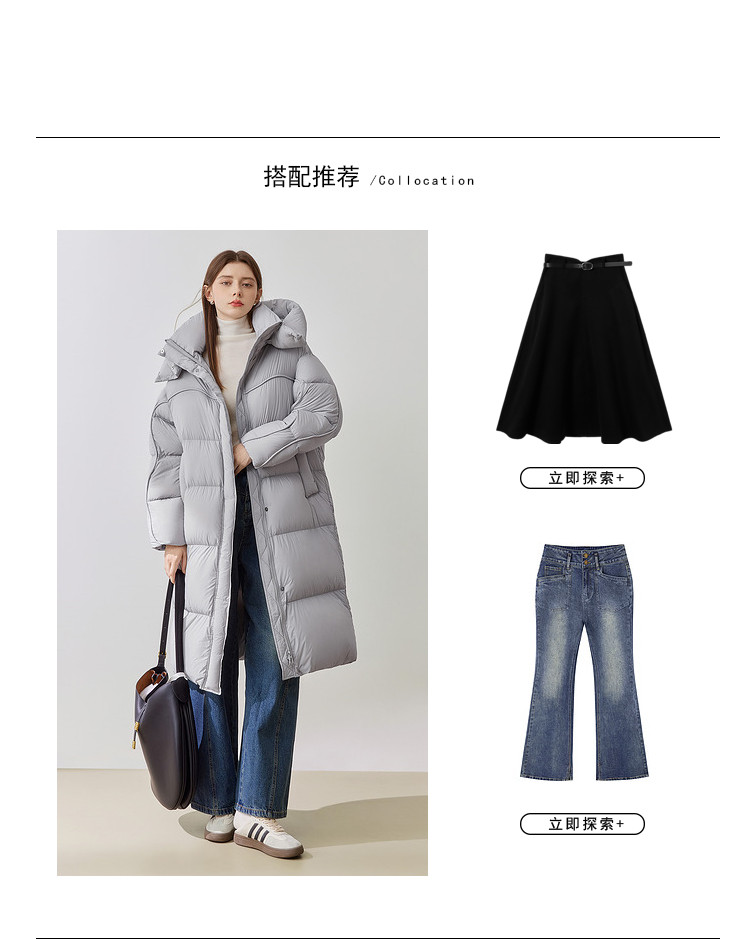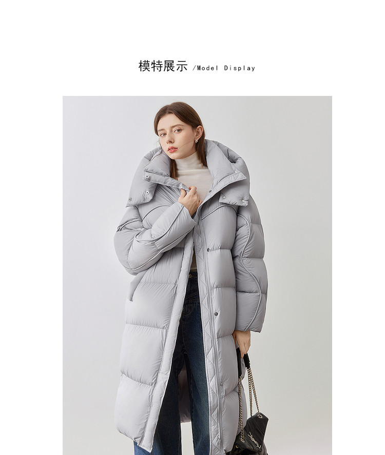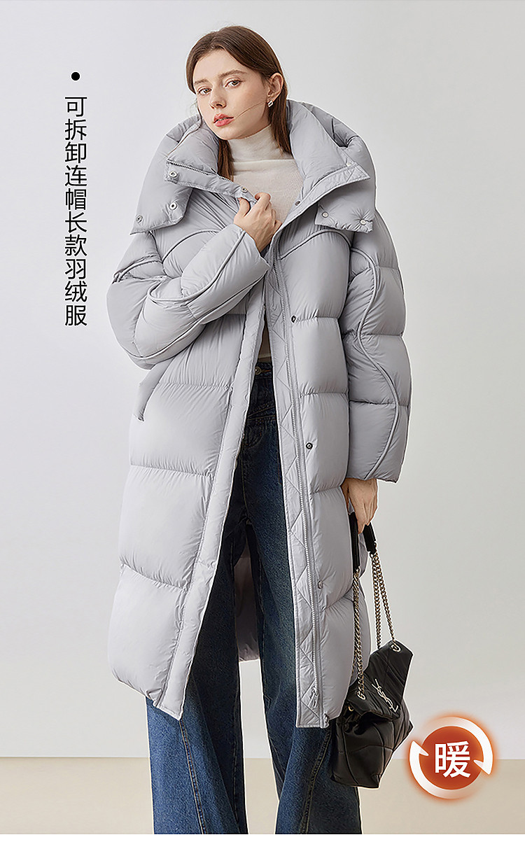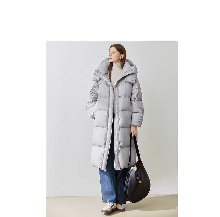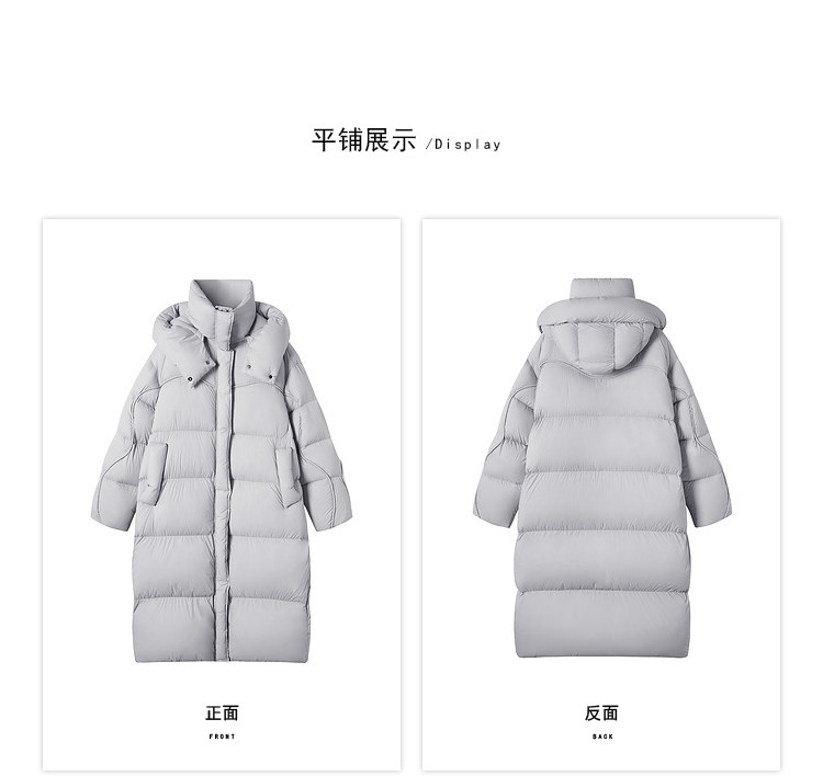 商品名称:【90白鸭绒|过膝款】24冬季时髦连帽长款羽绒服保暖蓬松外套 381396
