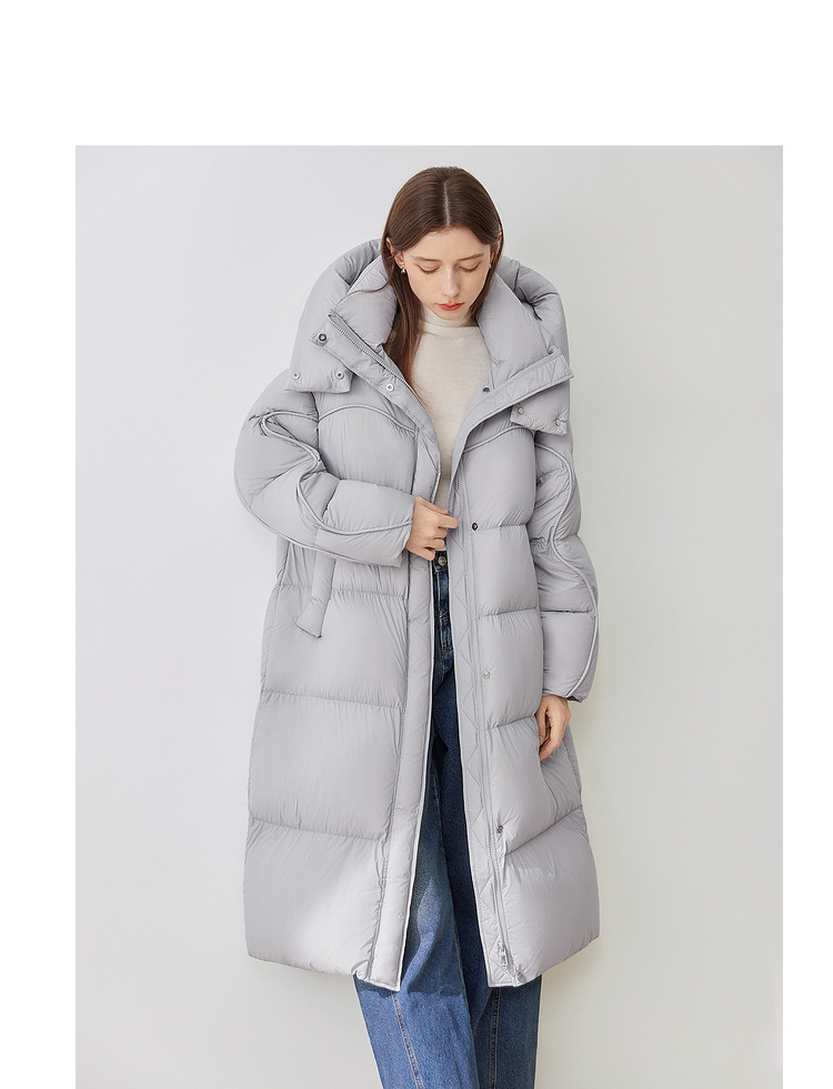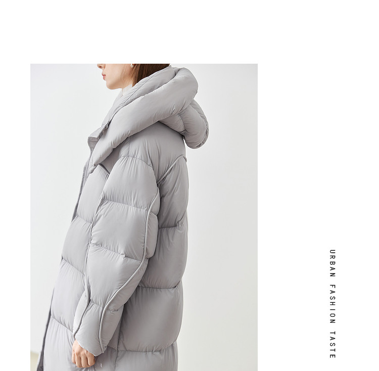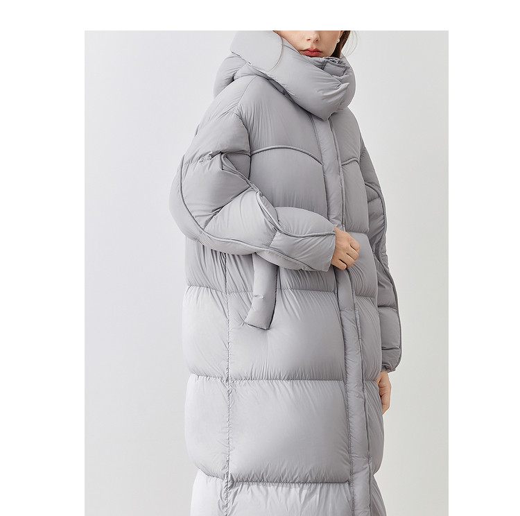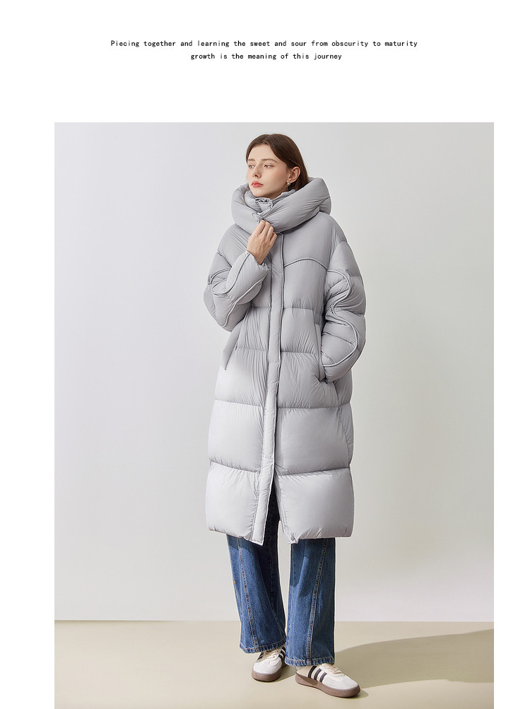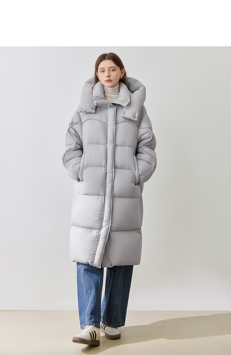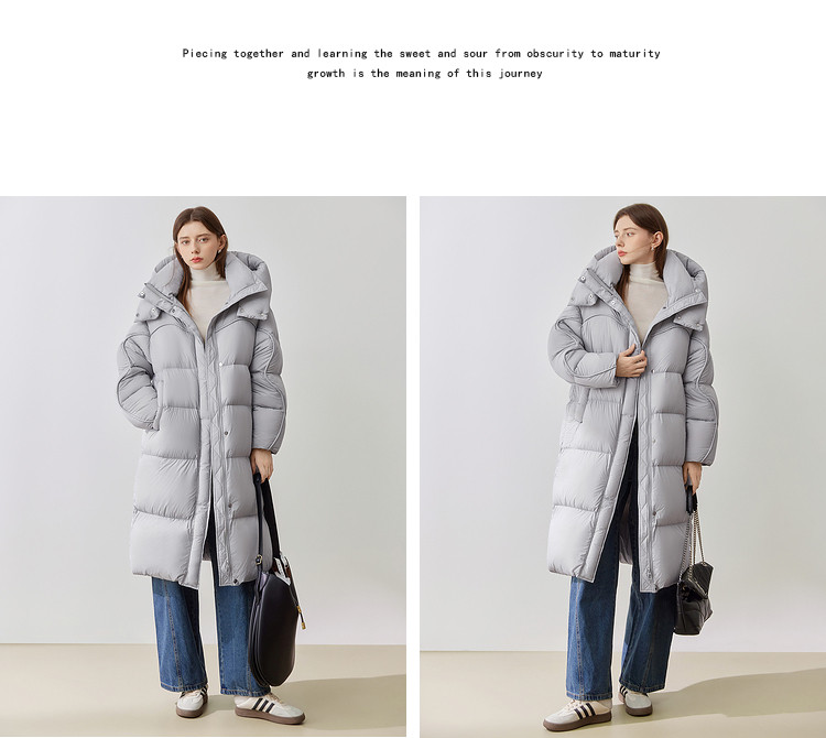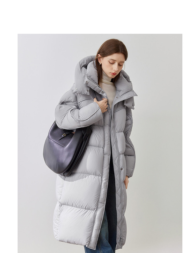 商品名称:【90白鸭绒|过膝款】24冬季时髦连帽长款羽绒服保暖蓬松外套 381396