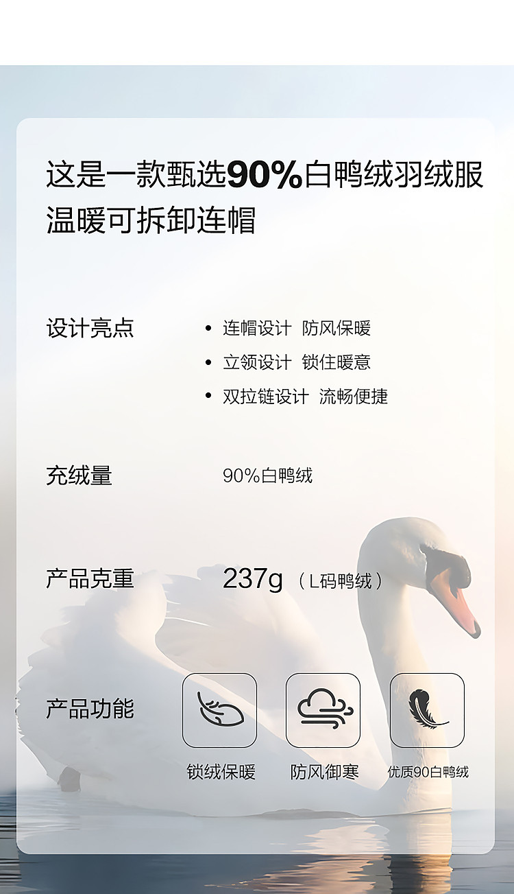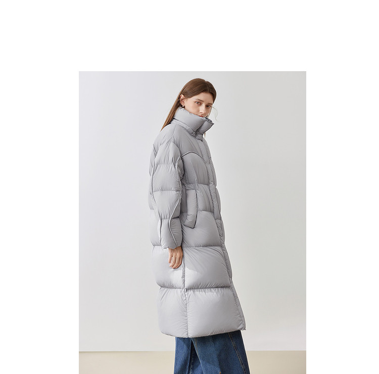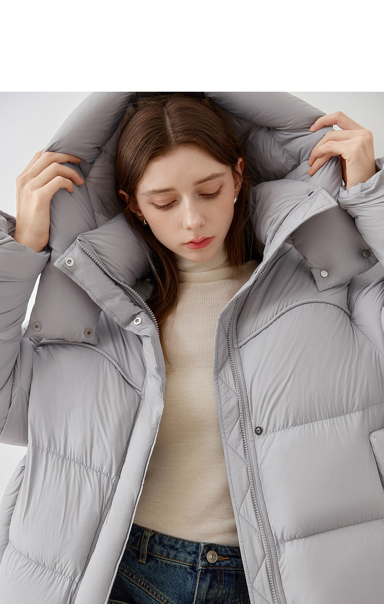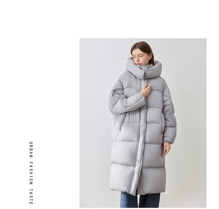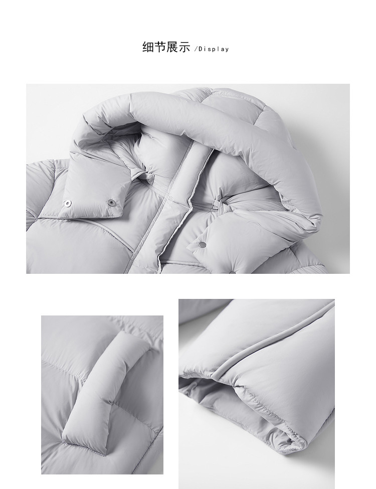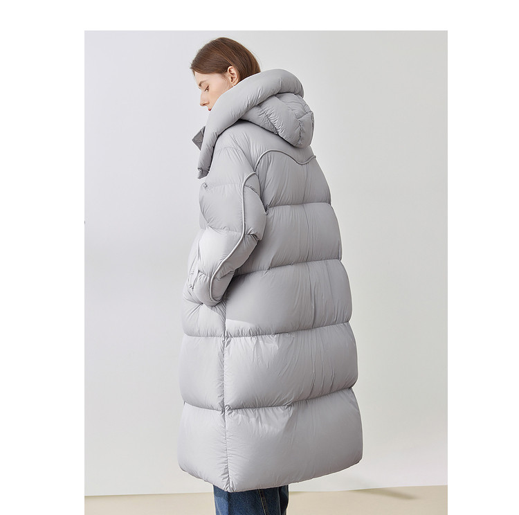 商品名称:【90白鸭绒|过膝款】24冬季时髦连帽长款羽绒服保暖蓬松外套 381396