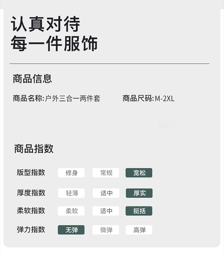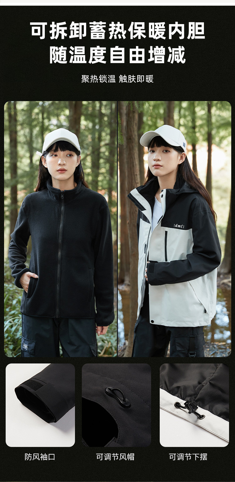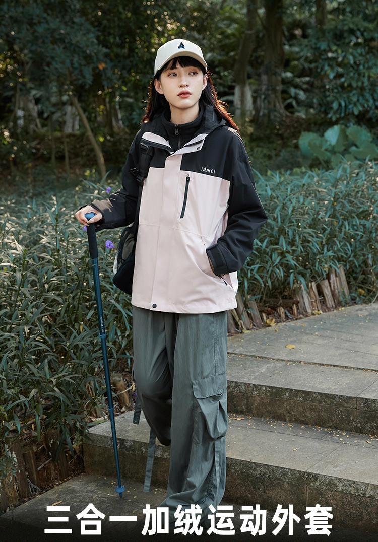 商品名称:【户外登山外套】冬季保暖御寒三合一加绒可拆卸运动风衣女防泼水 035777