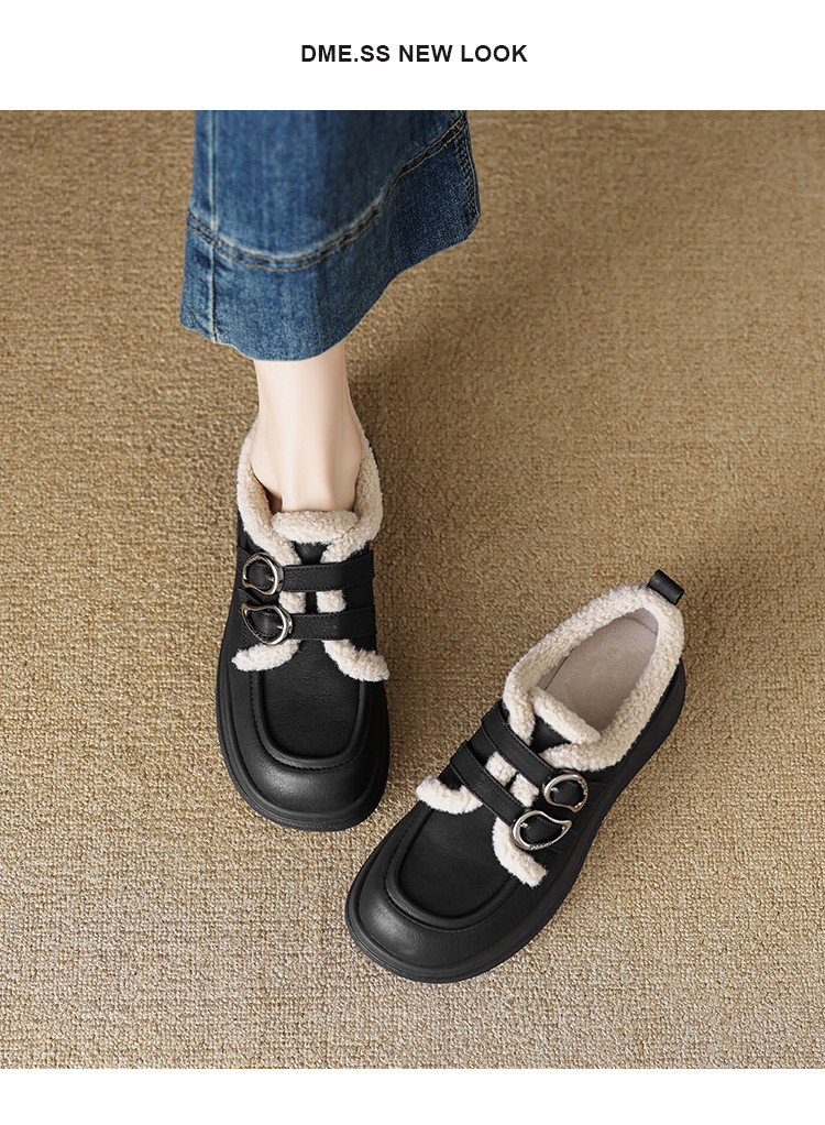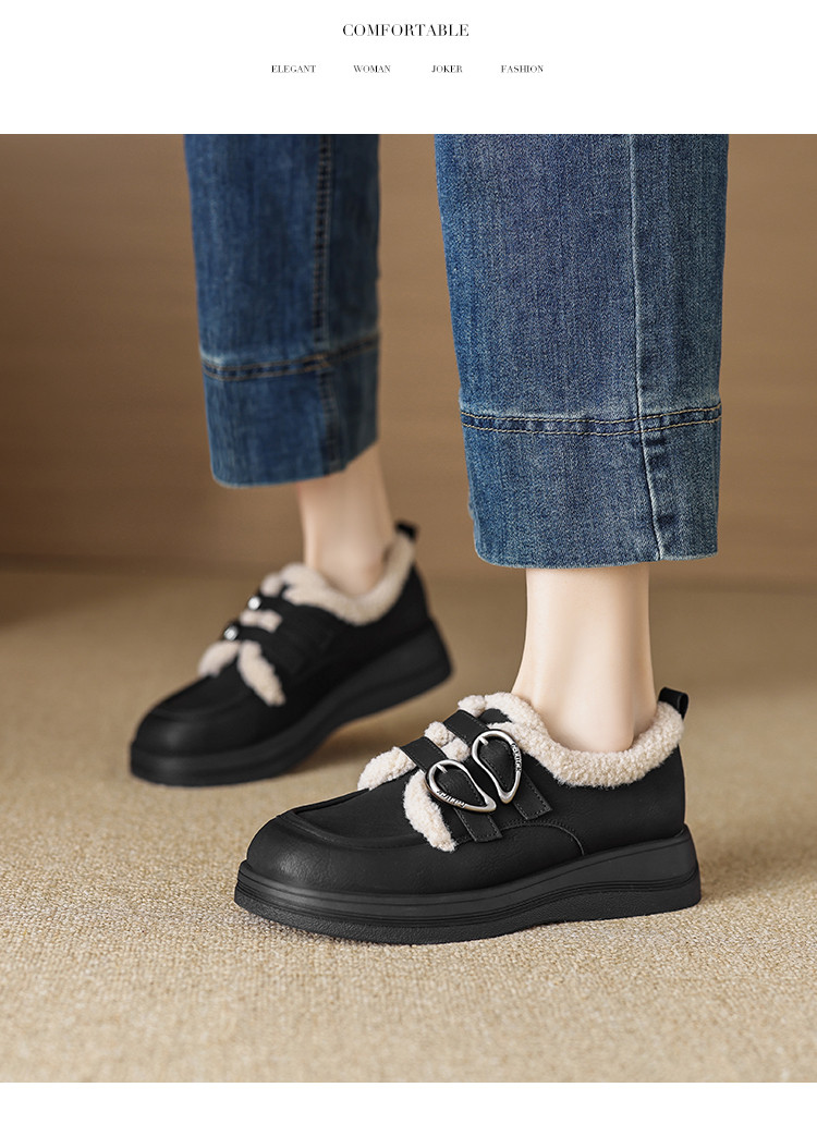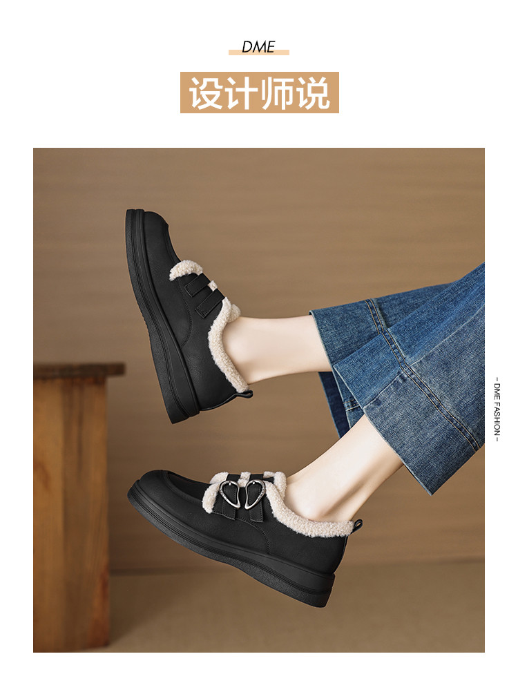 温暖日时尚百搭舒适休闲复古圆头毛领字母爱心扣毛毛鞋 157953