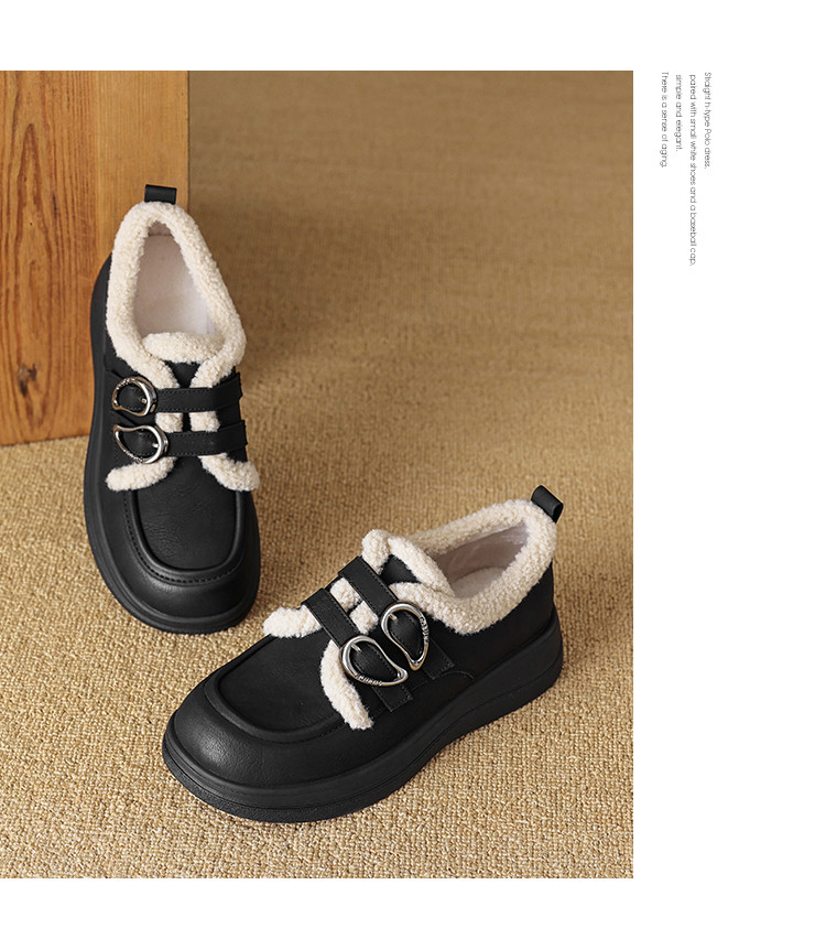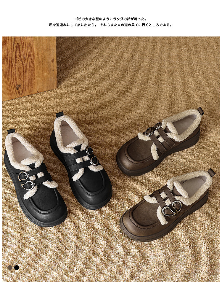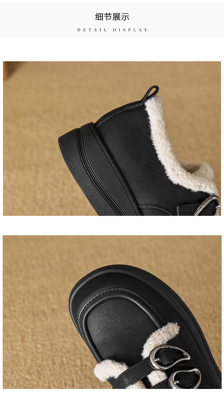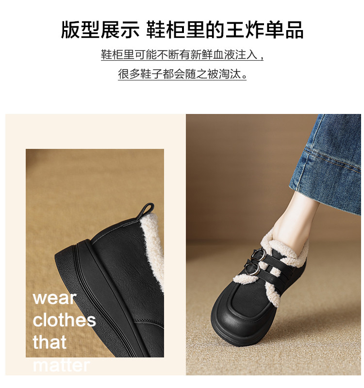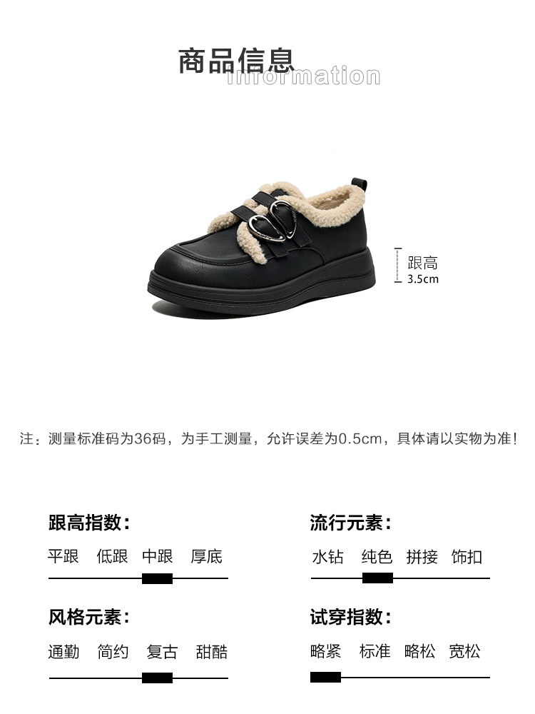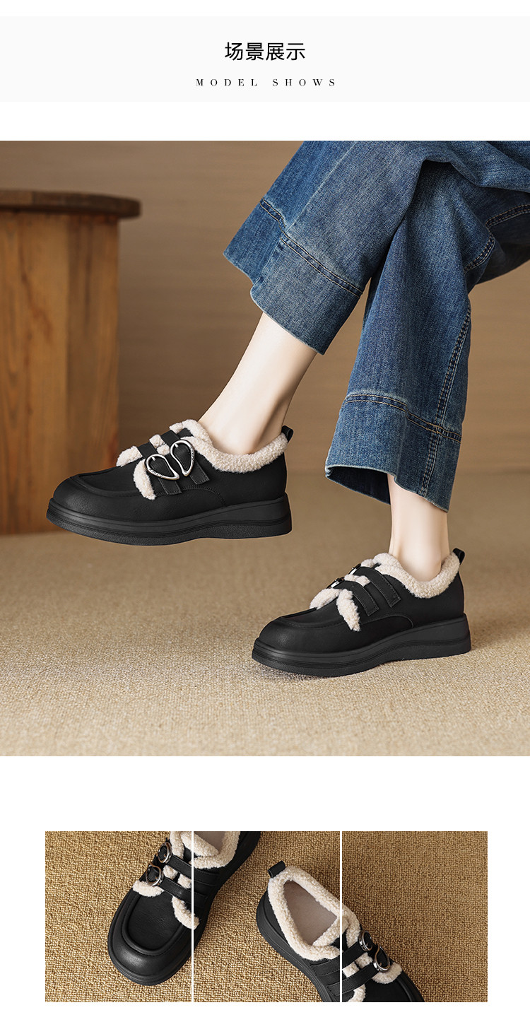 商品名称:温暖日时尚百搭舒适休闲复古圆头毛领字母爱心扣毛毛鞋 157953