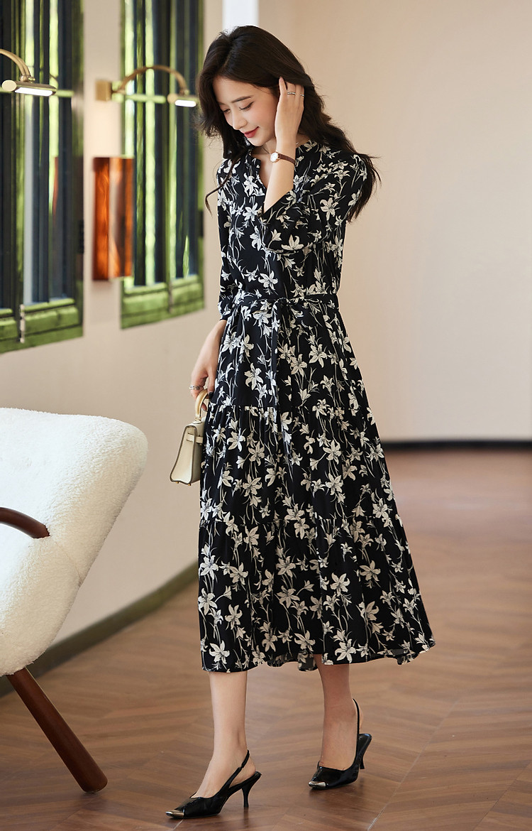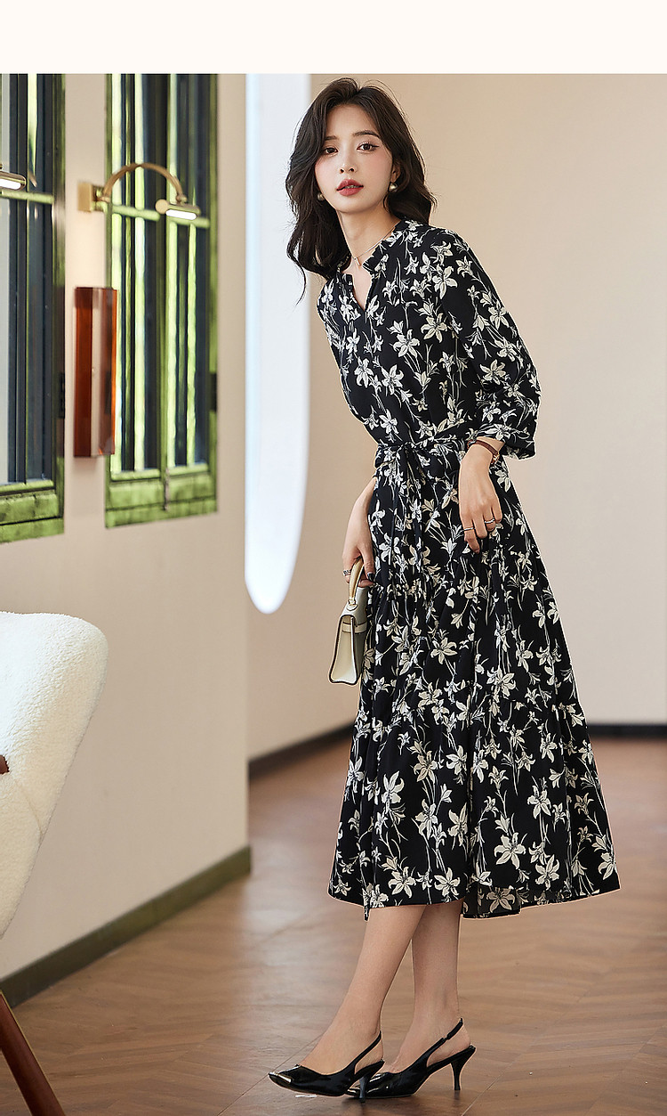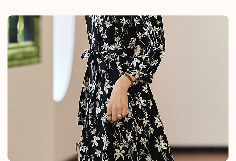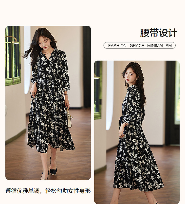 商品名称:【野百合的秋天】法式松弛感植物系茶歇裙腰带遮肉碎花女式连衣裙 409345