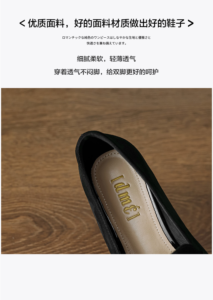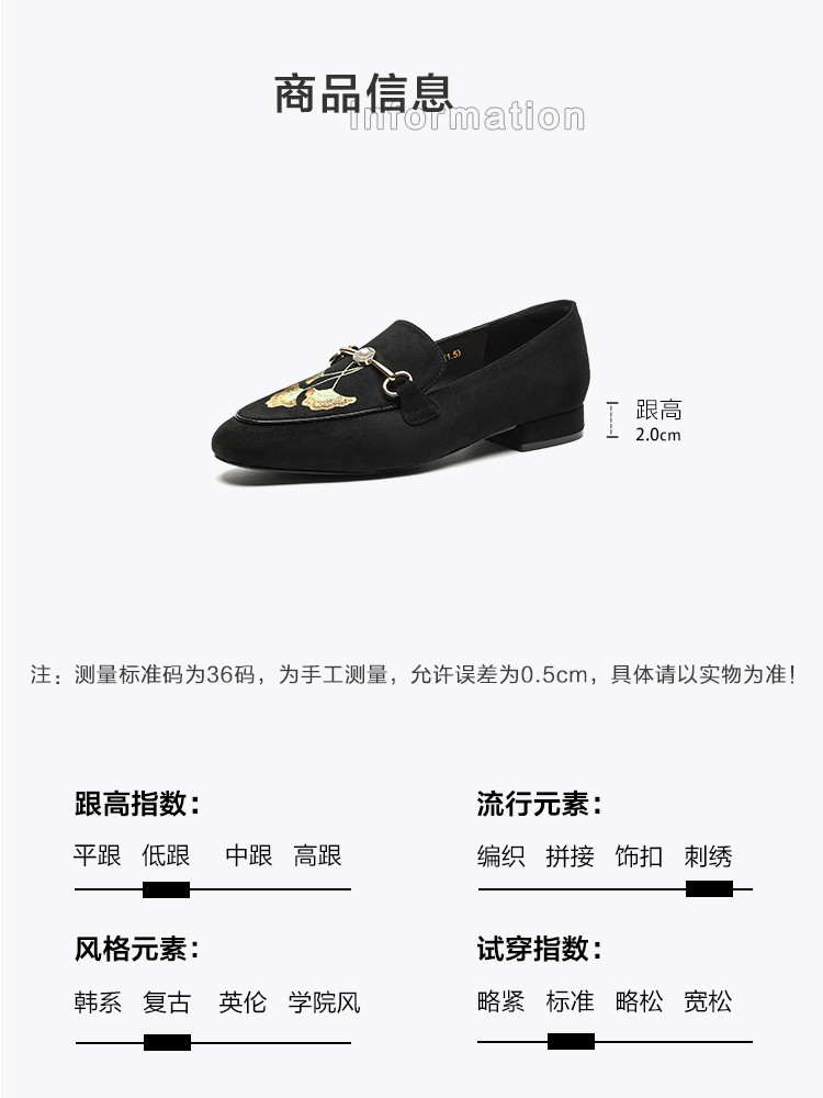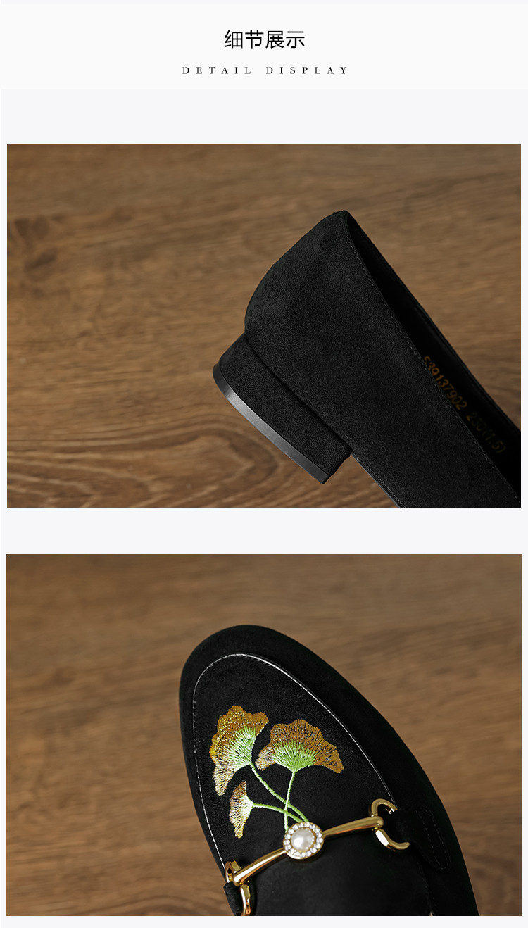 商品名称:2024秋季时尚简约绒面银杏刺绣珍珠马鞍扣圆头时装乐福鞋女单 292545