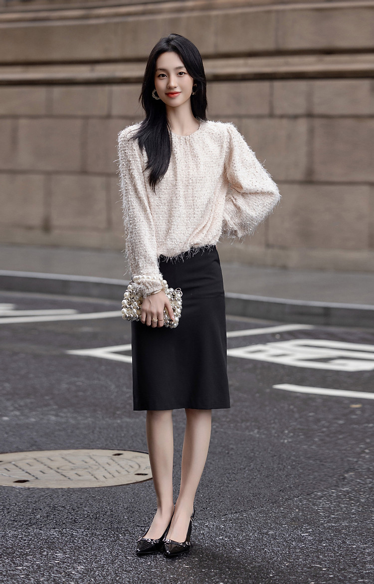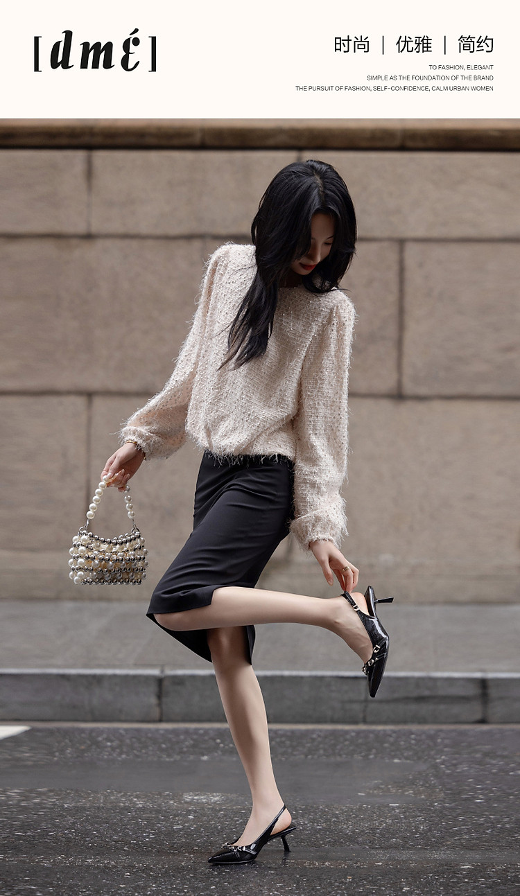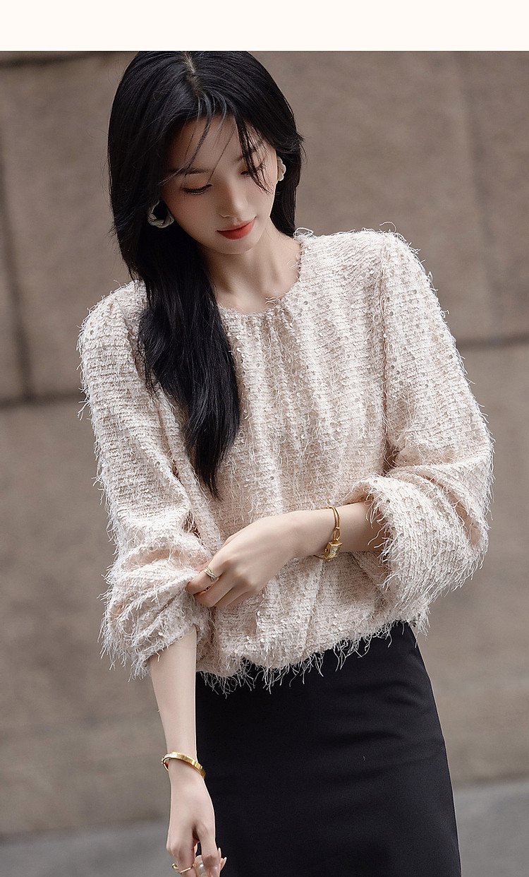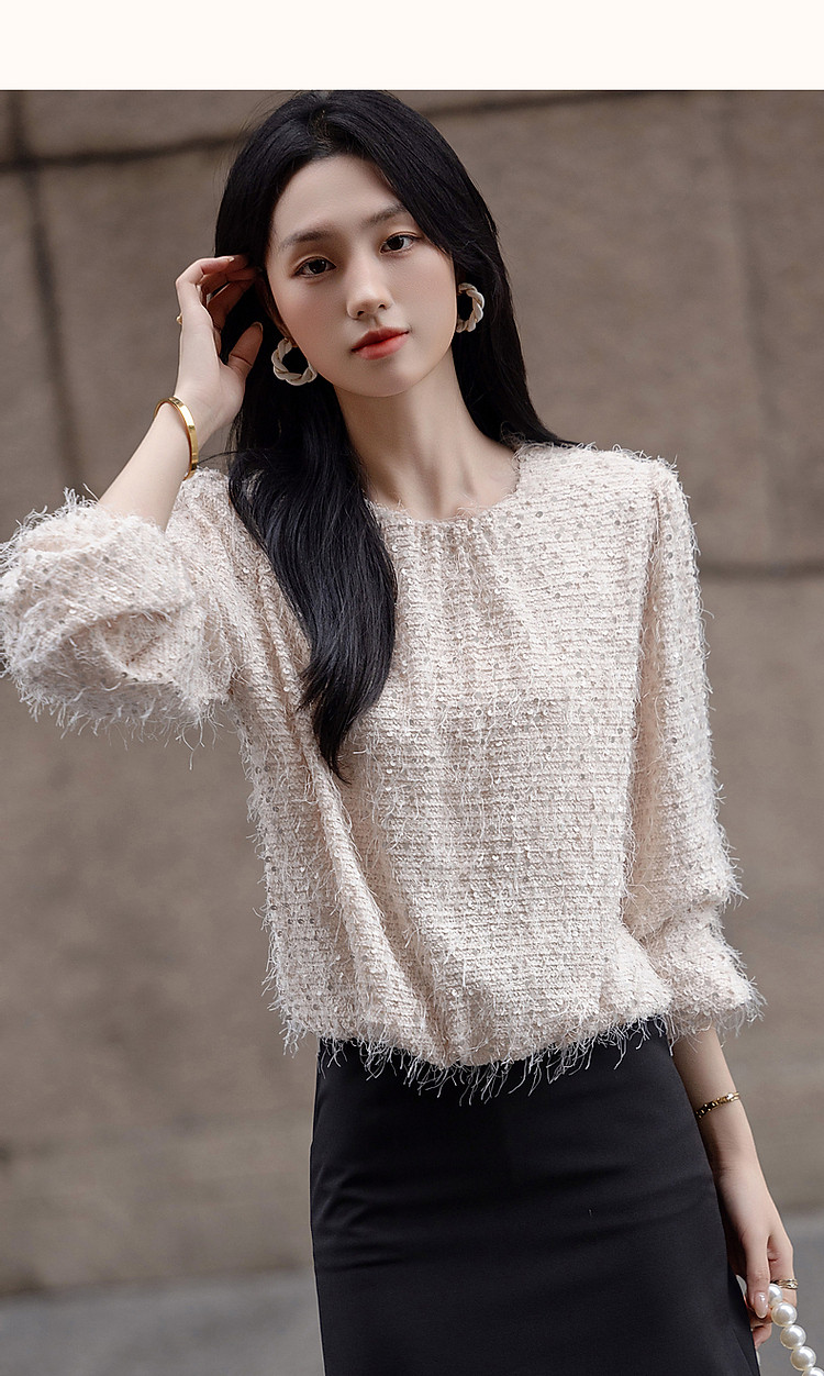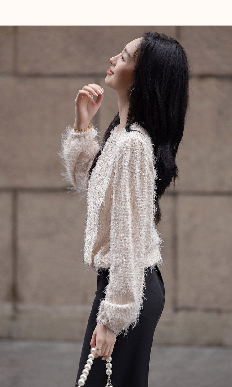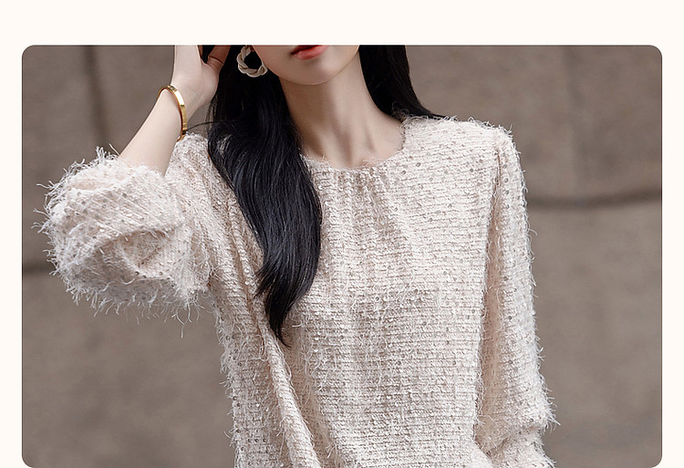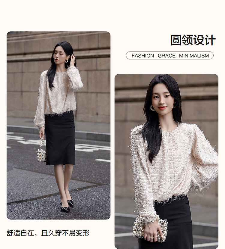 商品名称:【自由之诗】秋优雅风圆领肌理珠片针织弹力藏肉卫衣女上衣 318593
