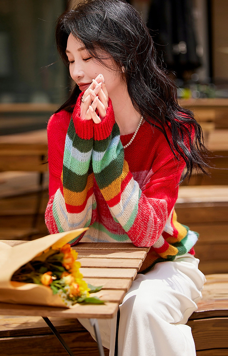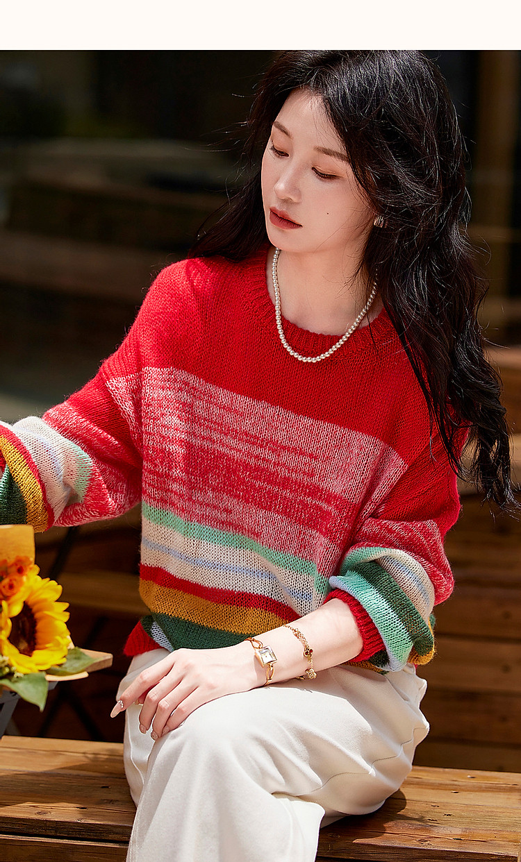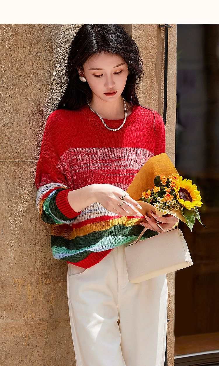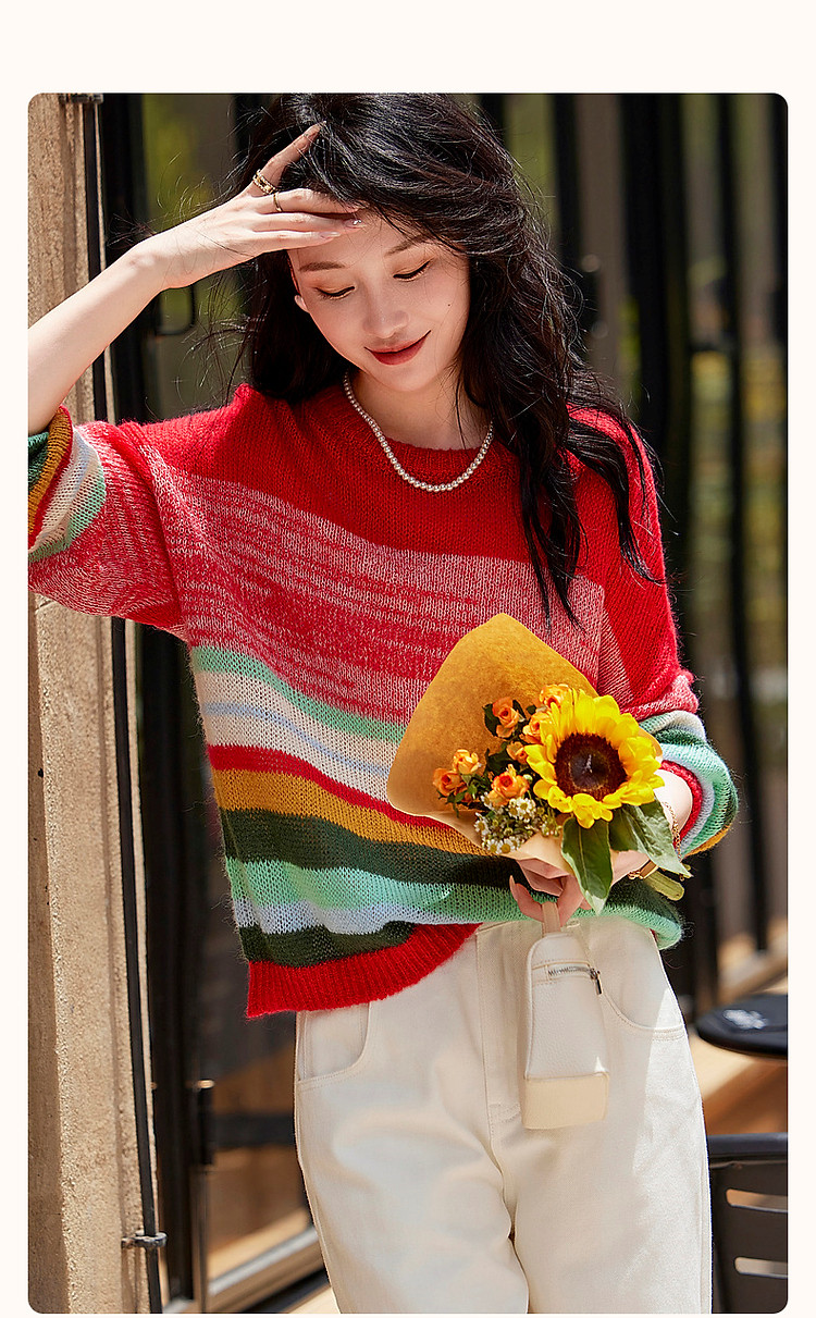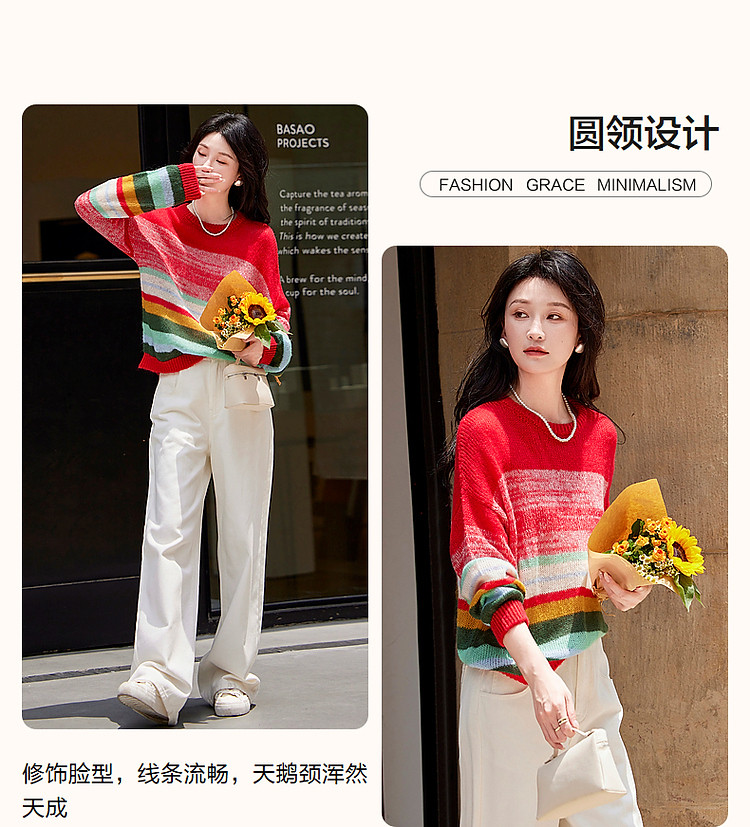 商品名称:【丁达尔艺术渐变】春秋含轻奢绵羊毛线衫藏肉小个子针织衫女上衣 090689