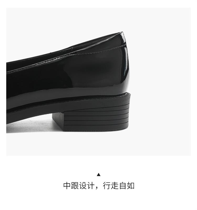 法式春秋季学院风通勤鞋简约浅口粗跟女单鞋乐福鞋女鞋 346010