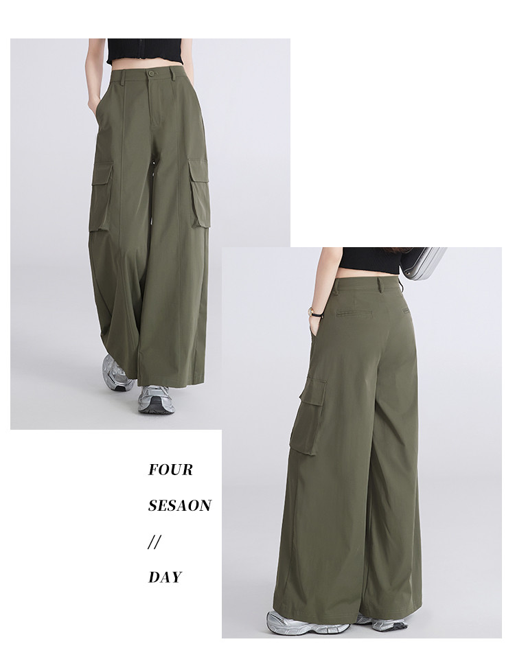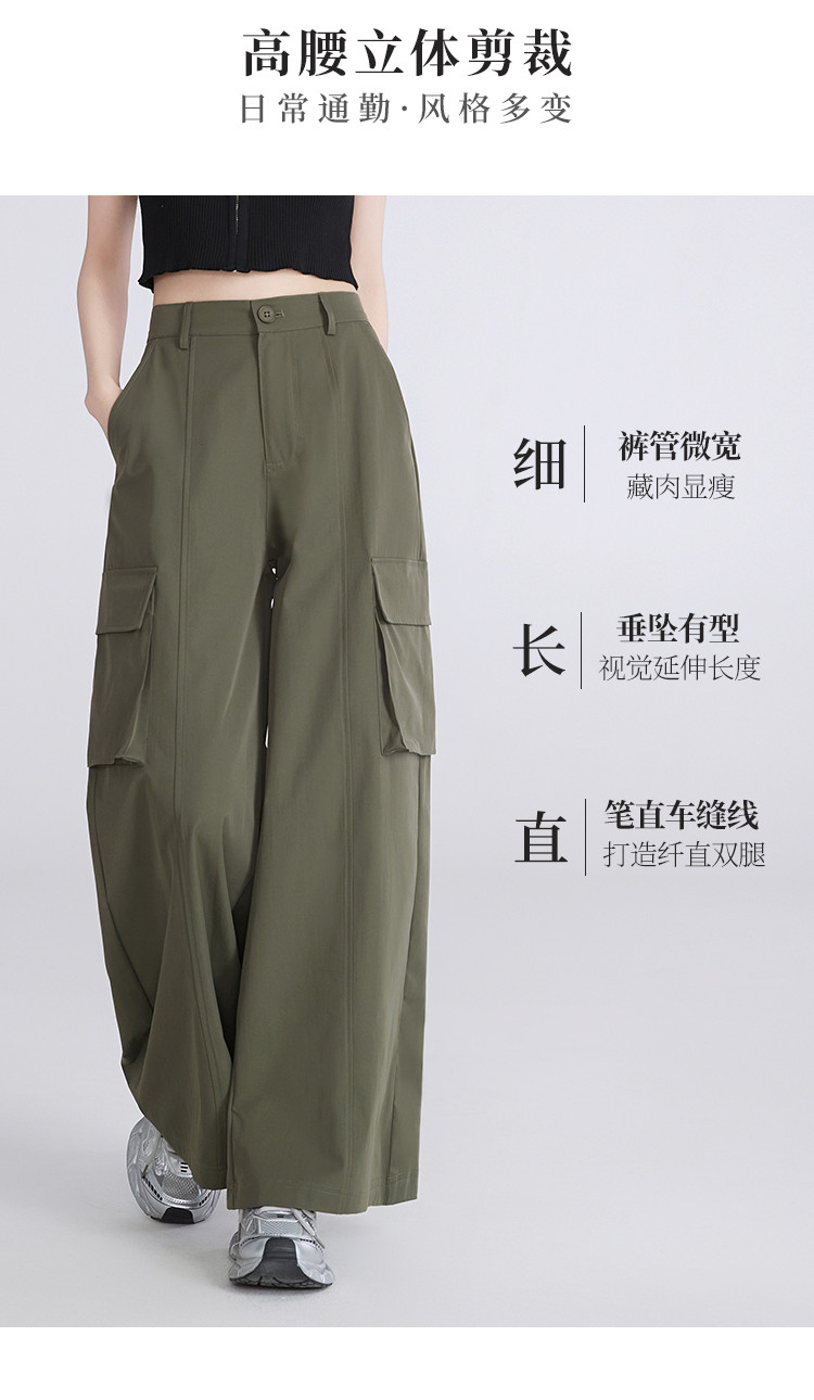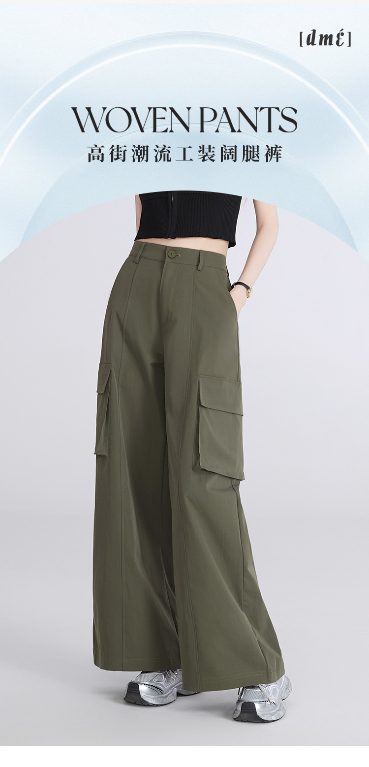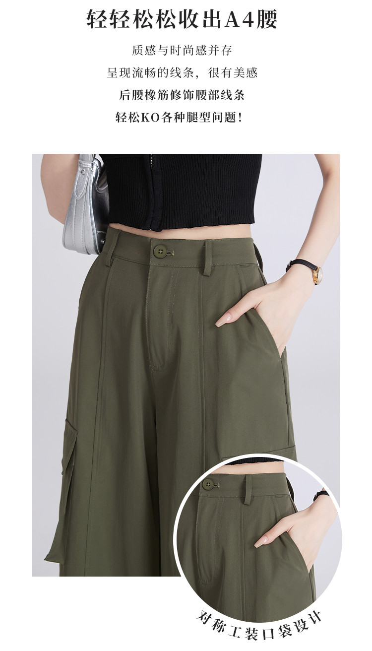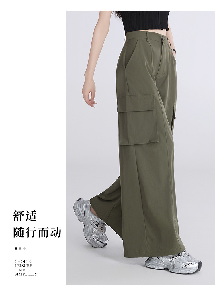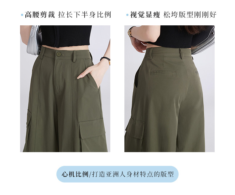 商品名称:【美式复古阔腿工装裤】简约小设计纯色大口袋女款休闲长裤 204161