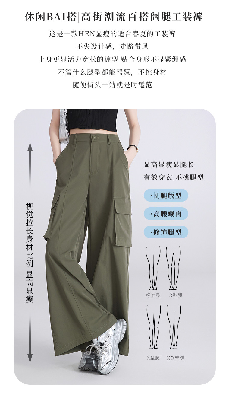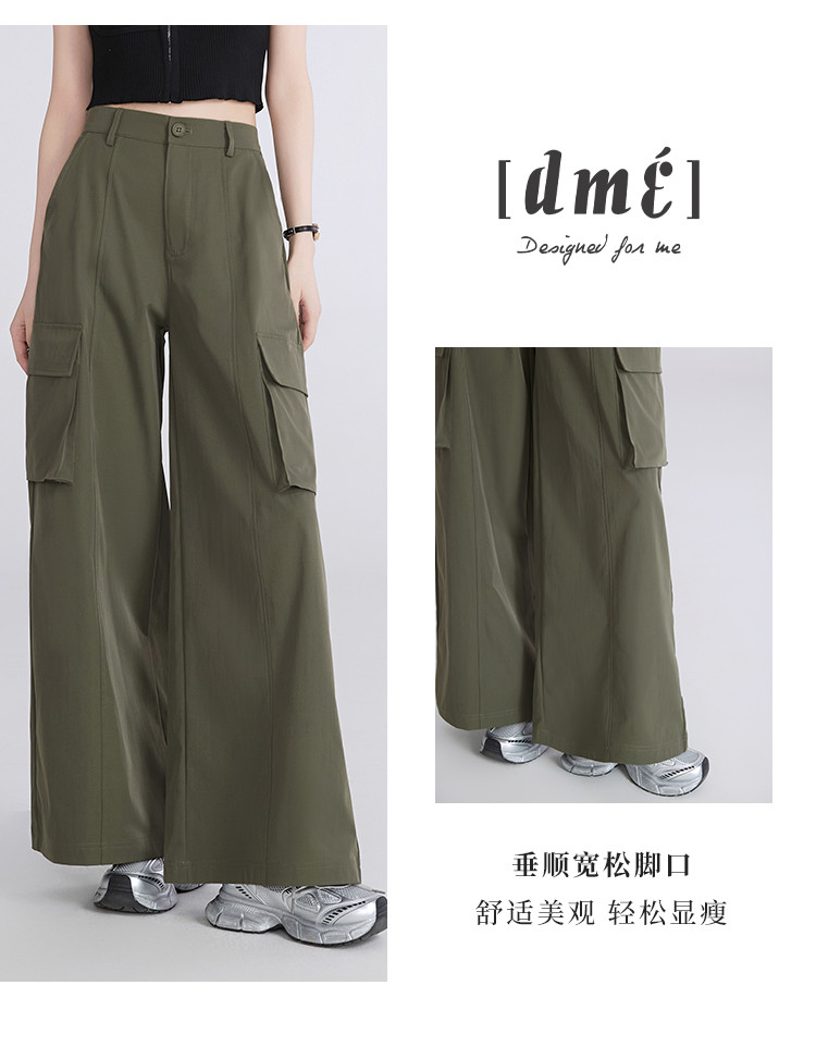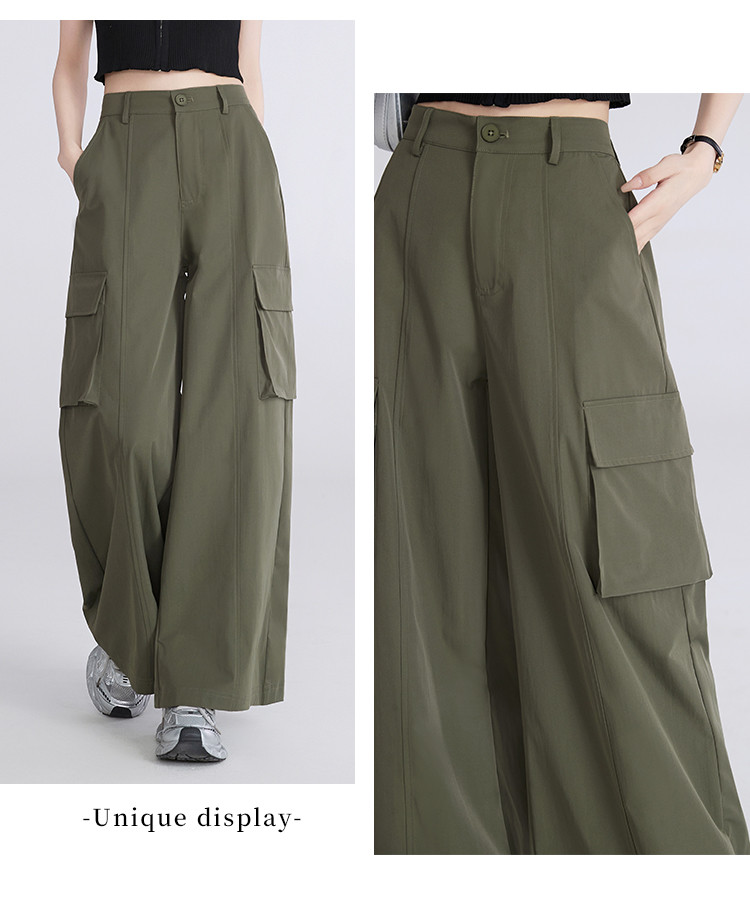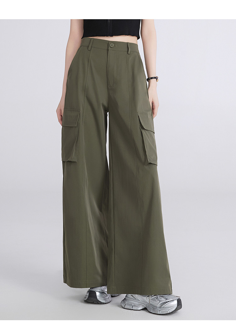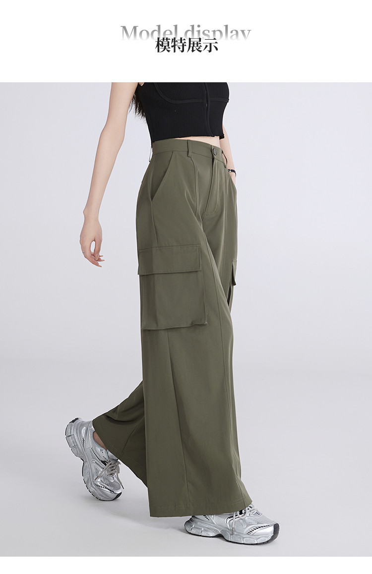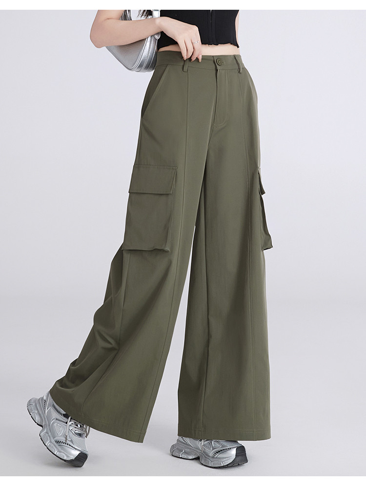 商品名称:【美式复古阔腿工装裤】简约小设计纯色大口袋女款休闲长裤 204161