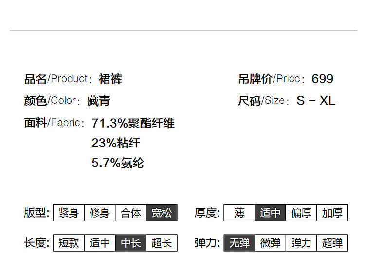 商品名称:【早八人省心穿搭】春秋松弛感假两件橡筋腰A摆藏肉七分休闲裤女 291713