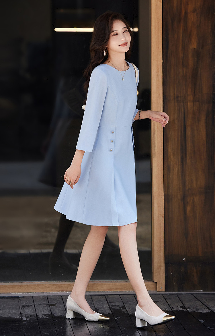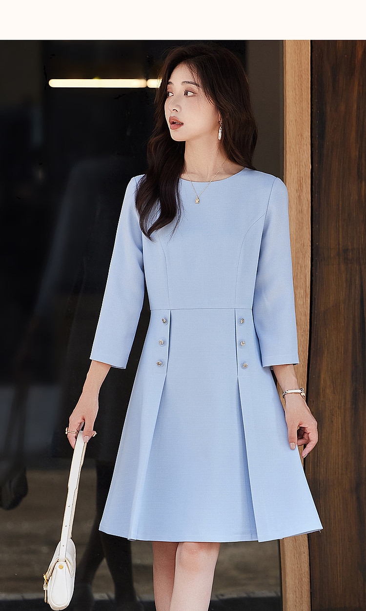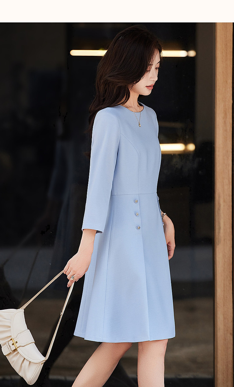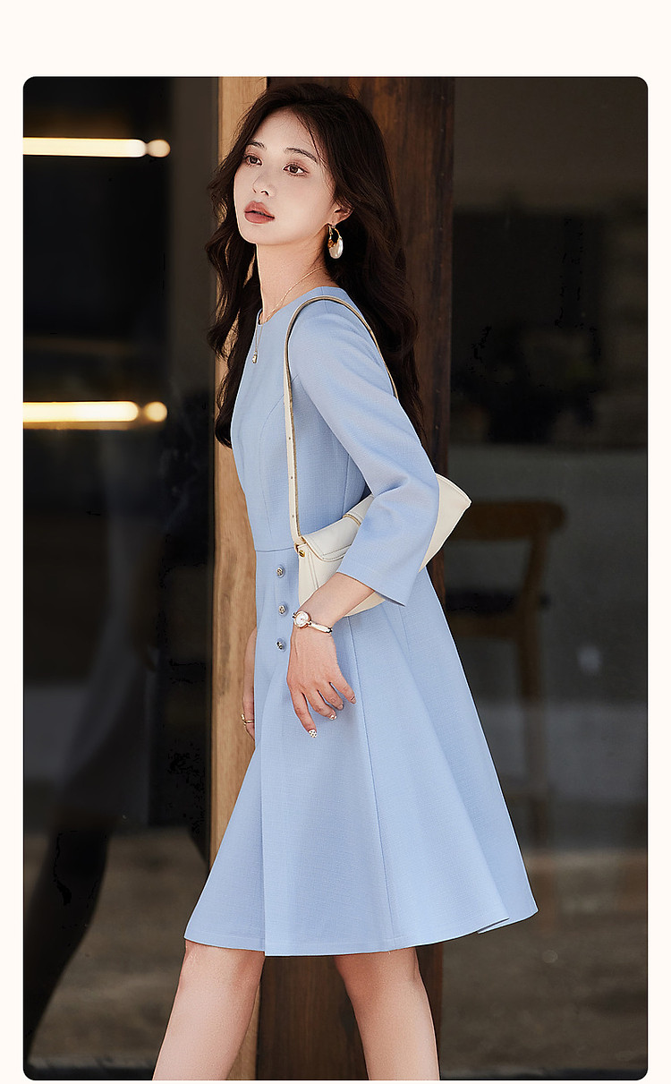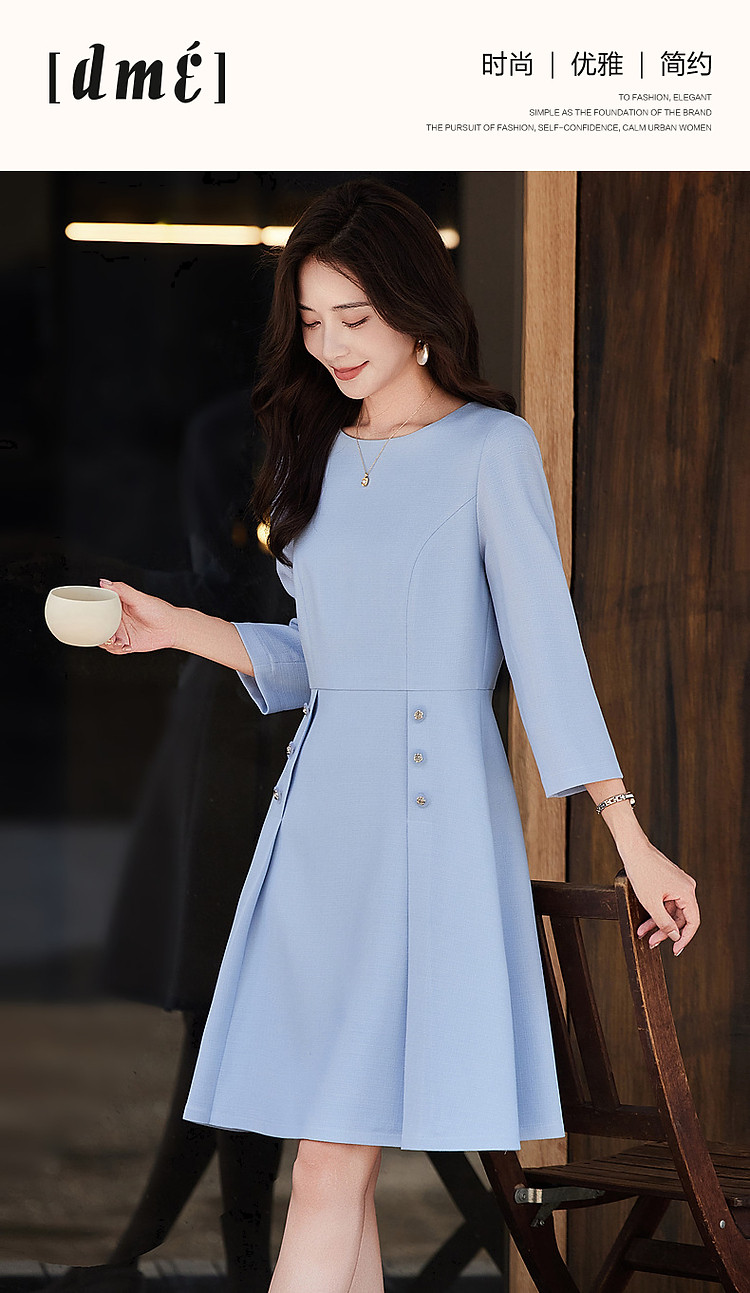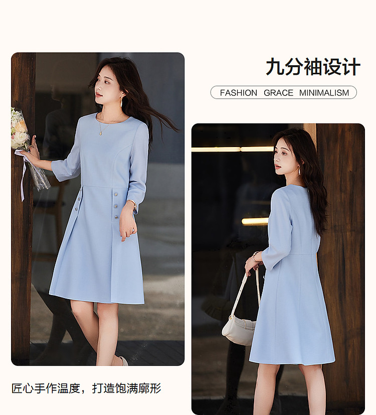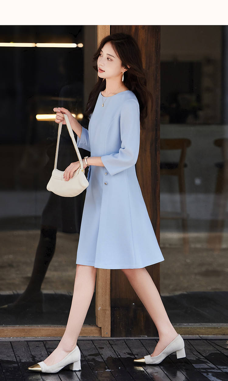 商品名称:【职场甜文女主】秋季温柔小香风多巴胺A字装饰扣连衣裙女中长款 425473