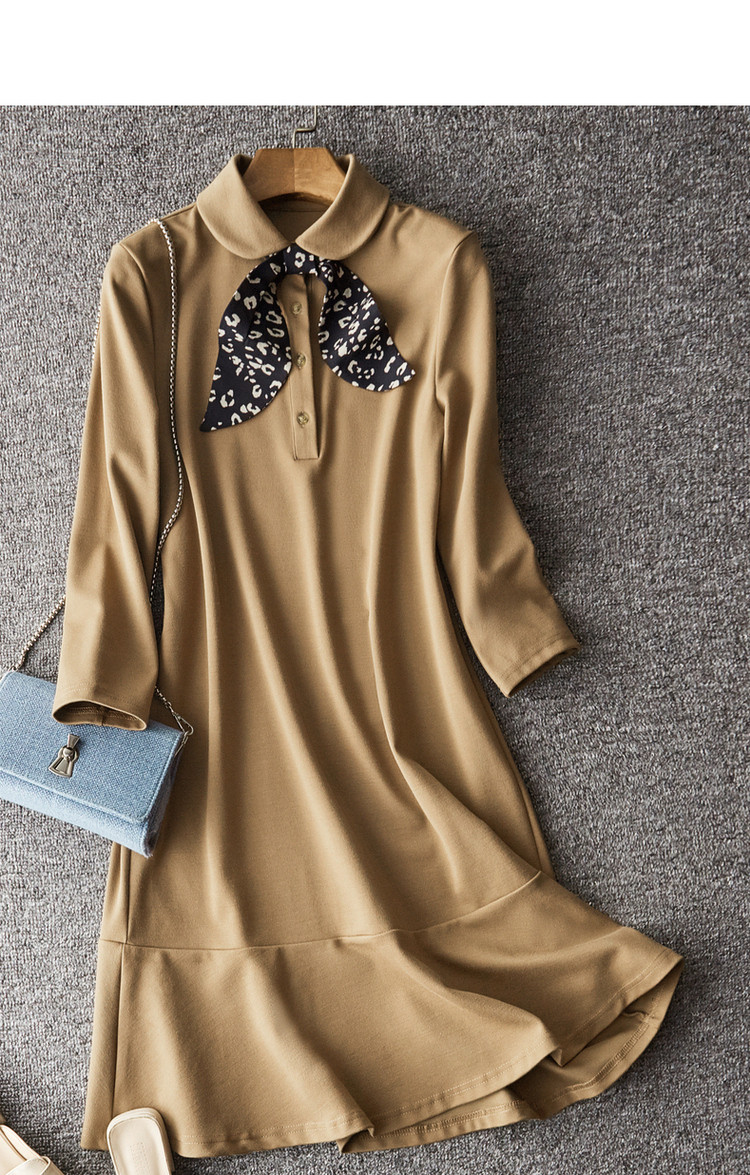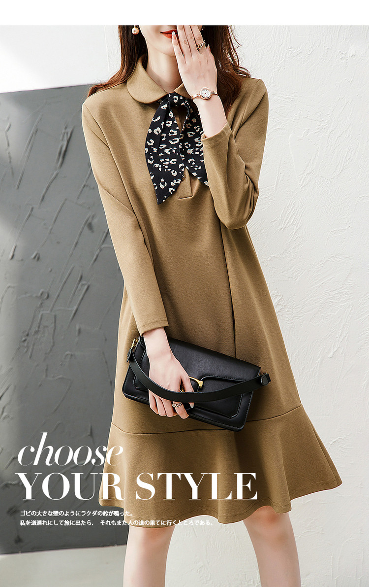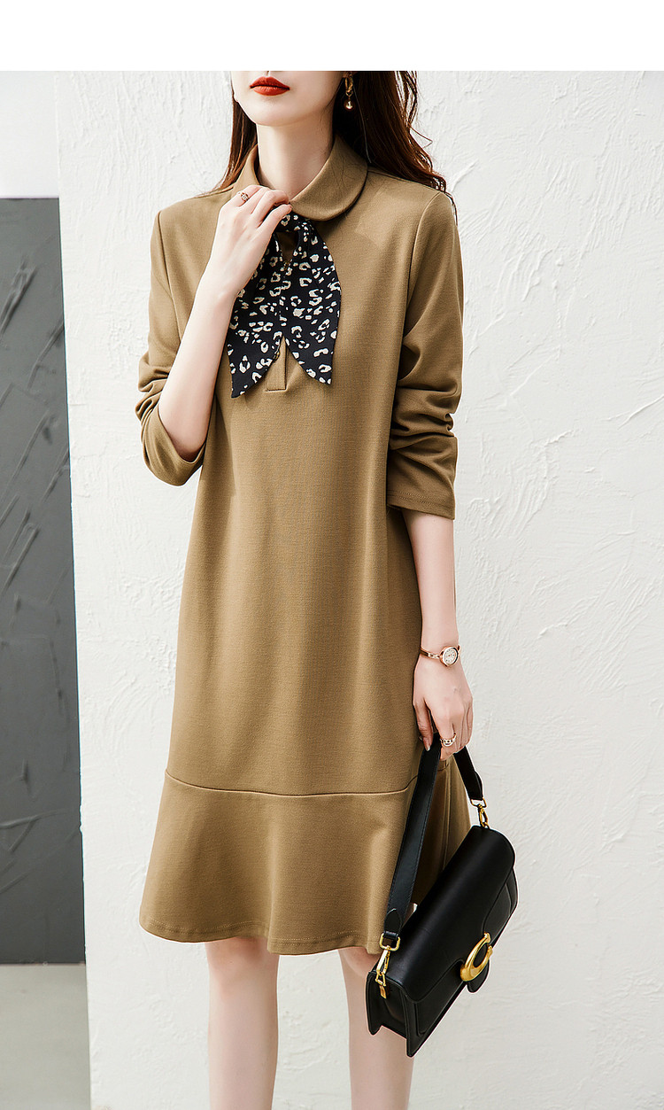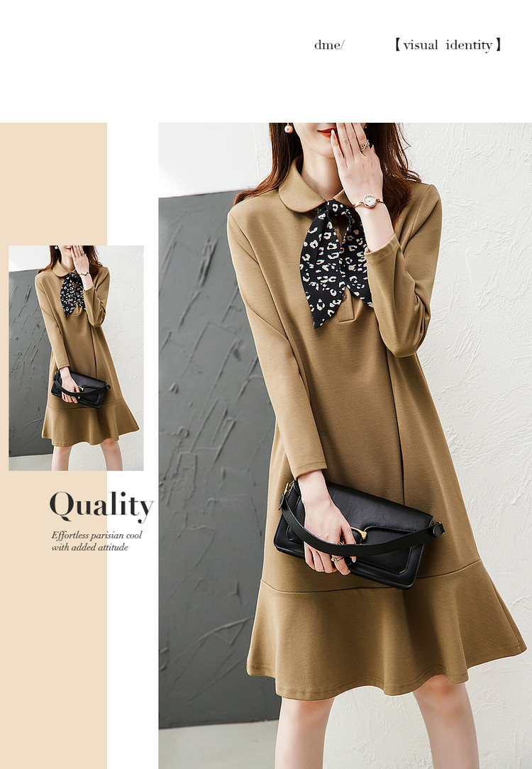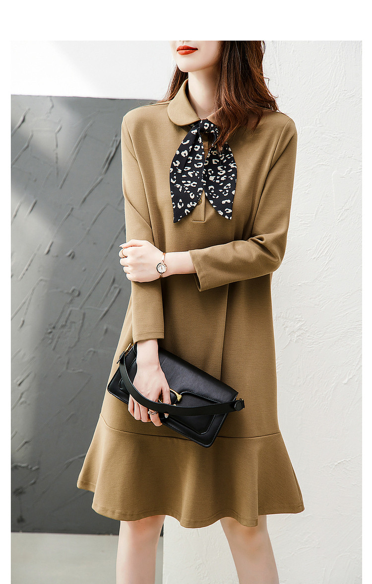 【罗马布】春秋可拆卸领结荷叶边连衣裙春秋季女长袖 010433