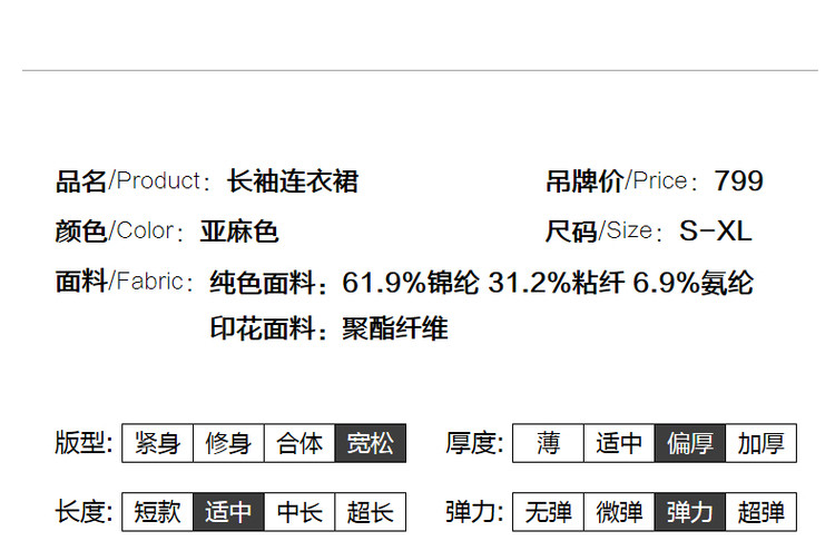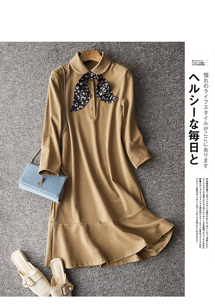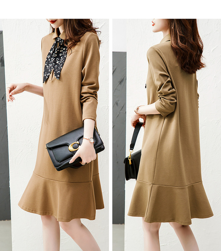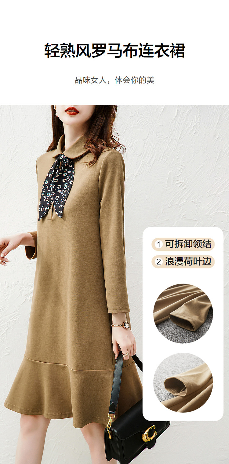 商品名称:【罗马布】春秋可拆卸领结荷叶边连衣裙春秋季女长袖 010433