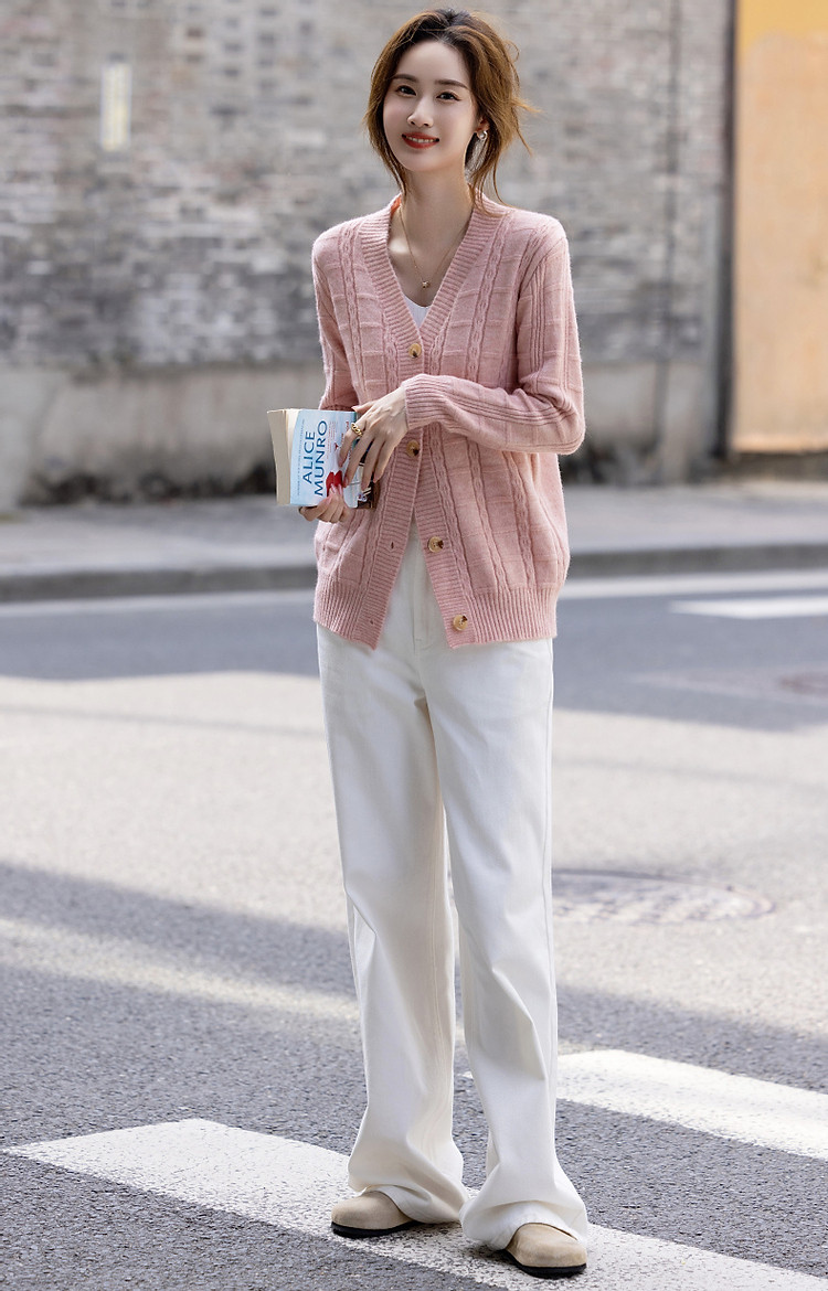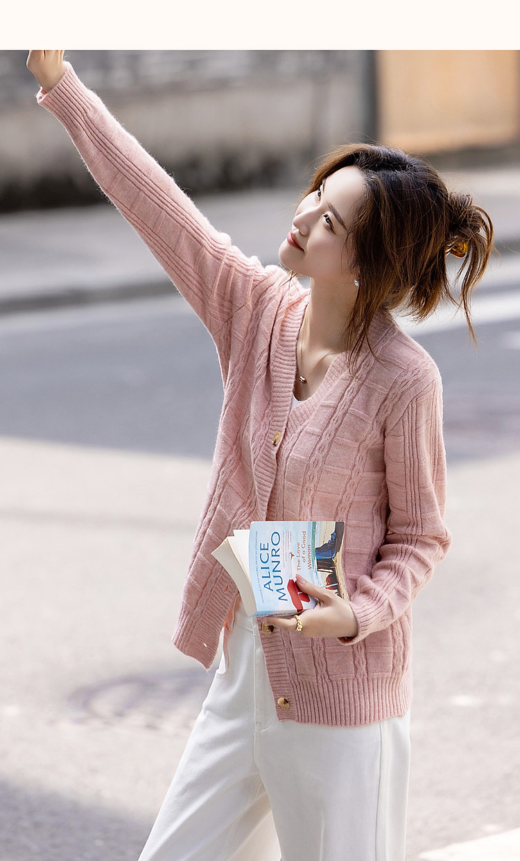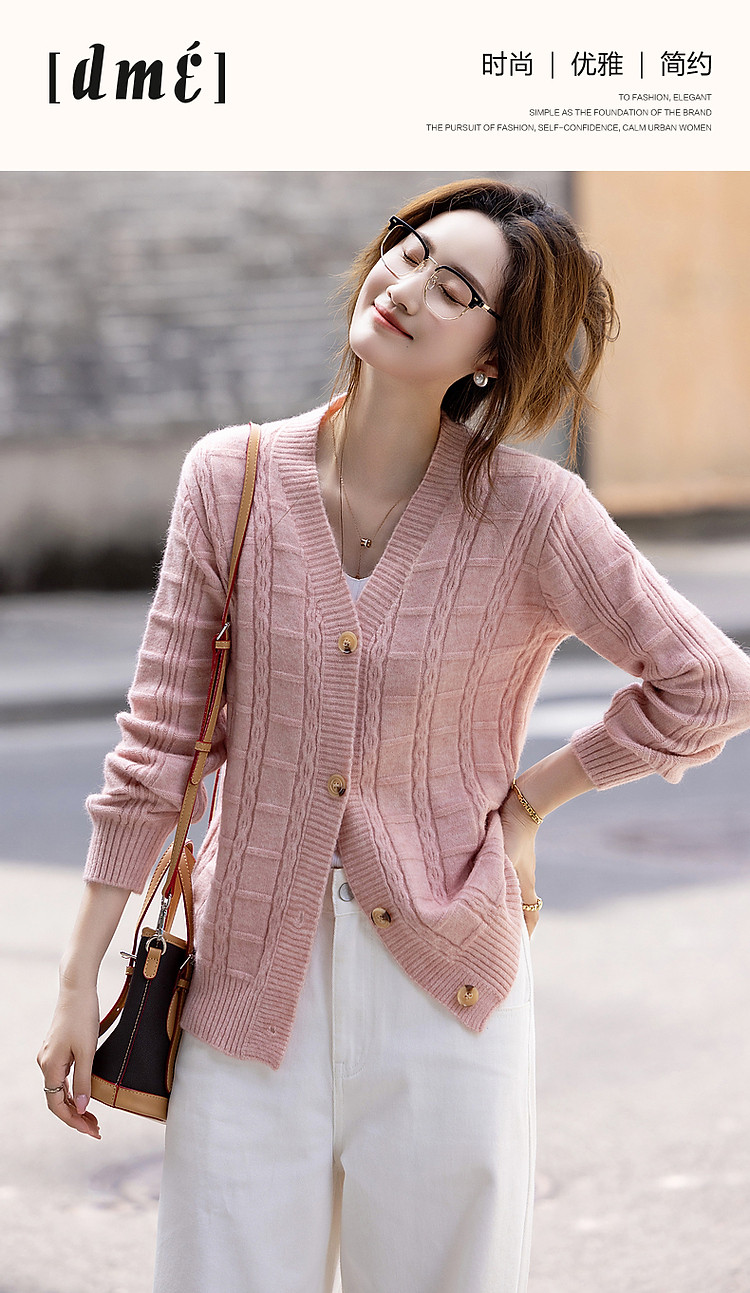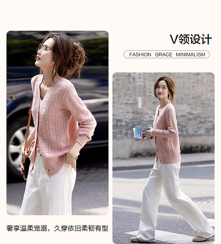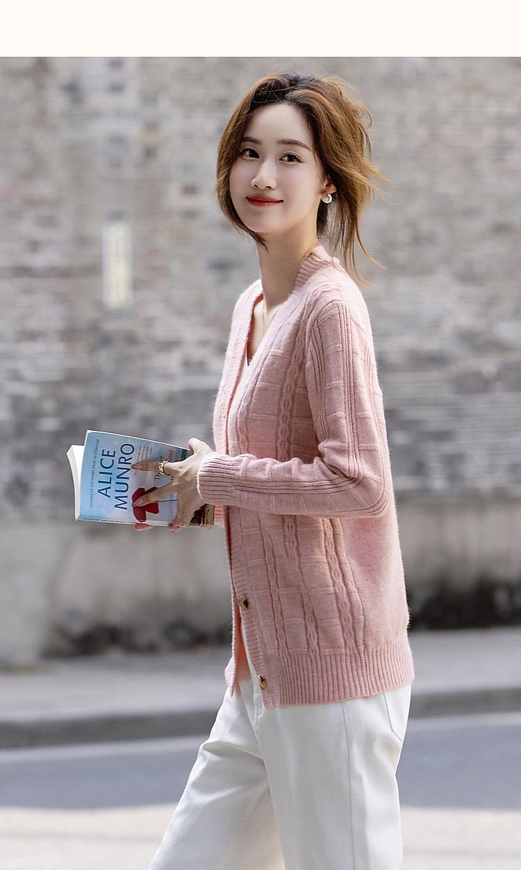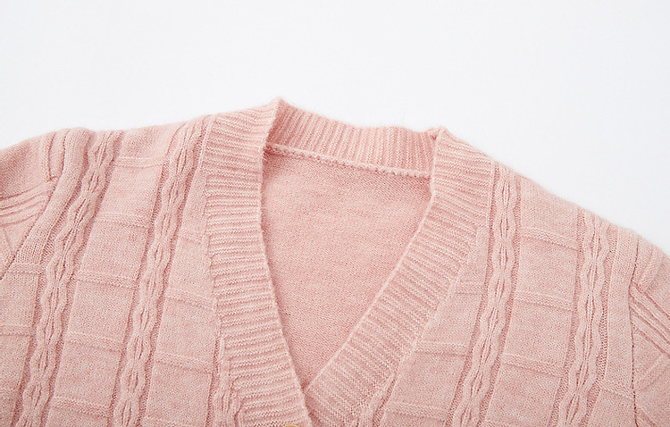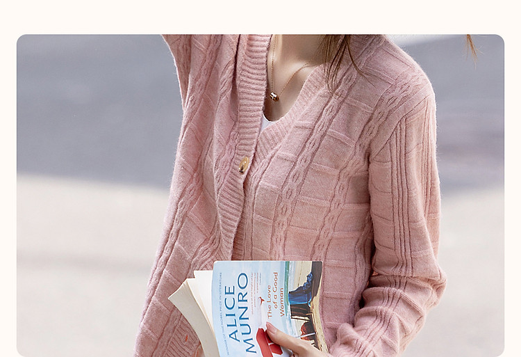 商品名称:【喵咪般柔软】秋法风V领开衫复古格纹线衫舒适遮肉针织衫女上衣 646337