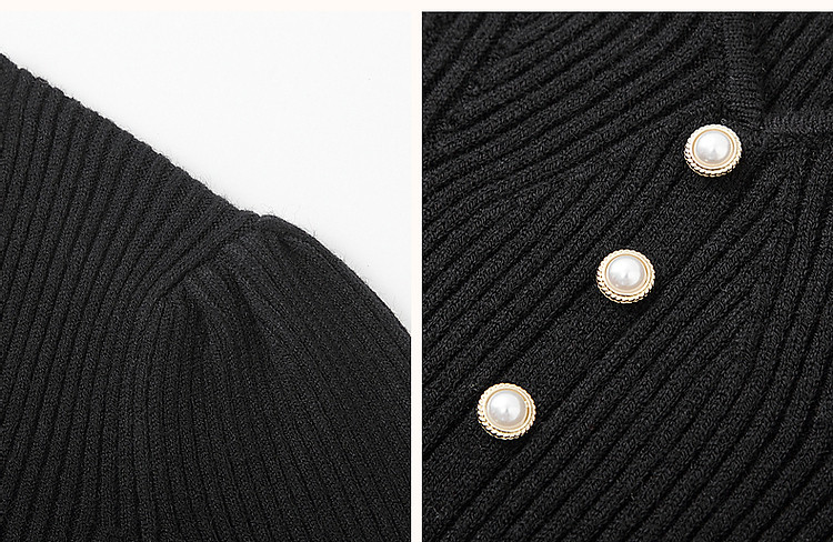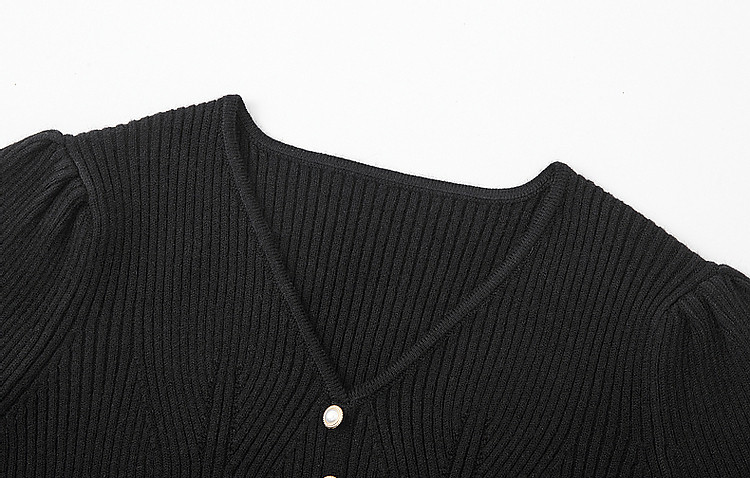 商品名称:【舒适纤绒纱】秋法式V领泡泡袖蕾丝花边线衫开叉针织衫女上衣 231745