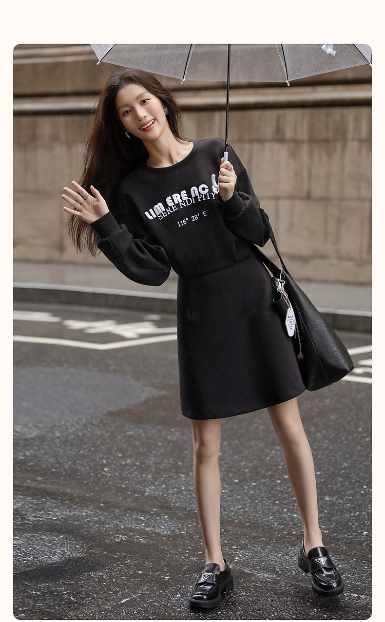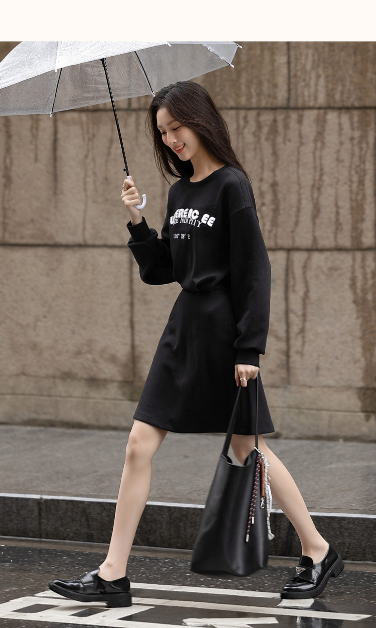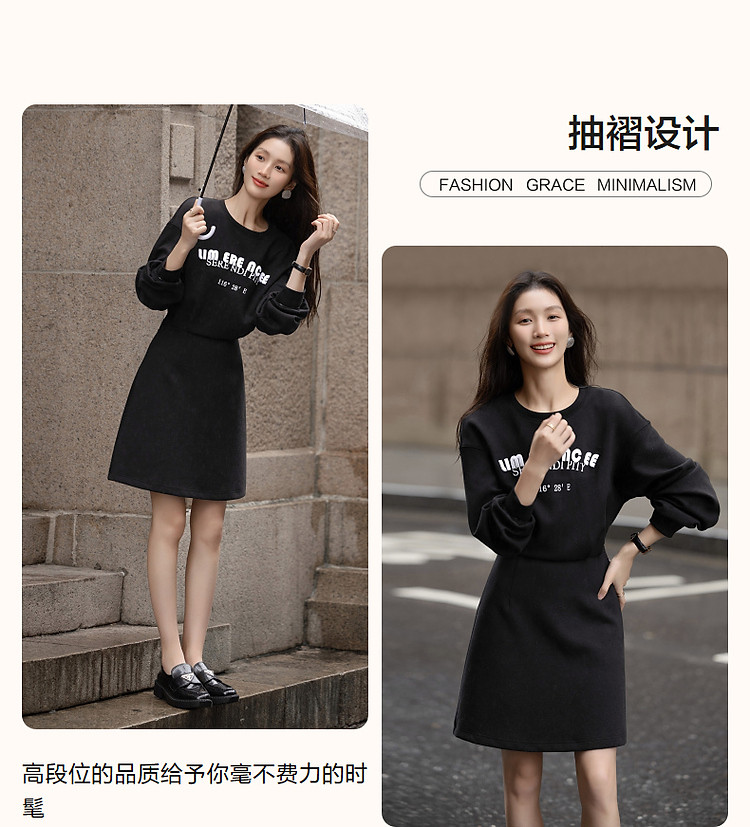 商品名称:【率性主角】秋季重工350G空气层牙刷绣抽褶收腰时髦连衣裙女 248129