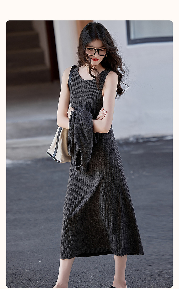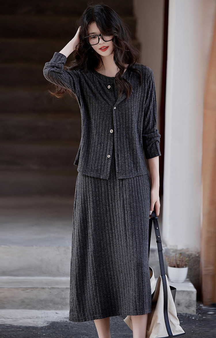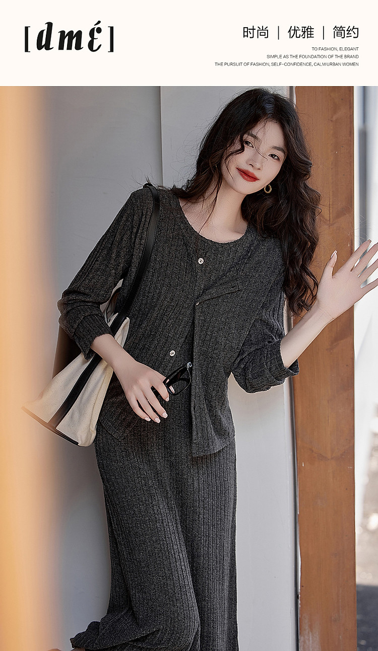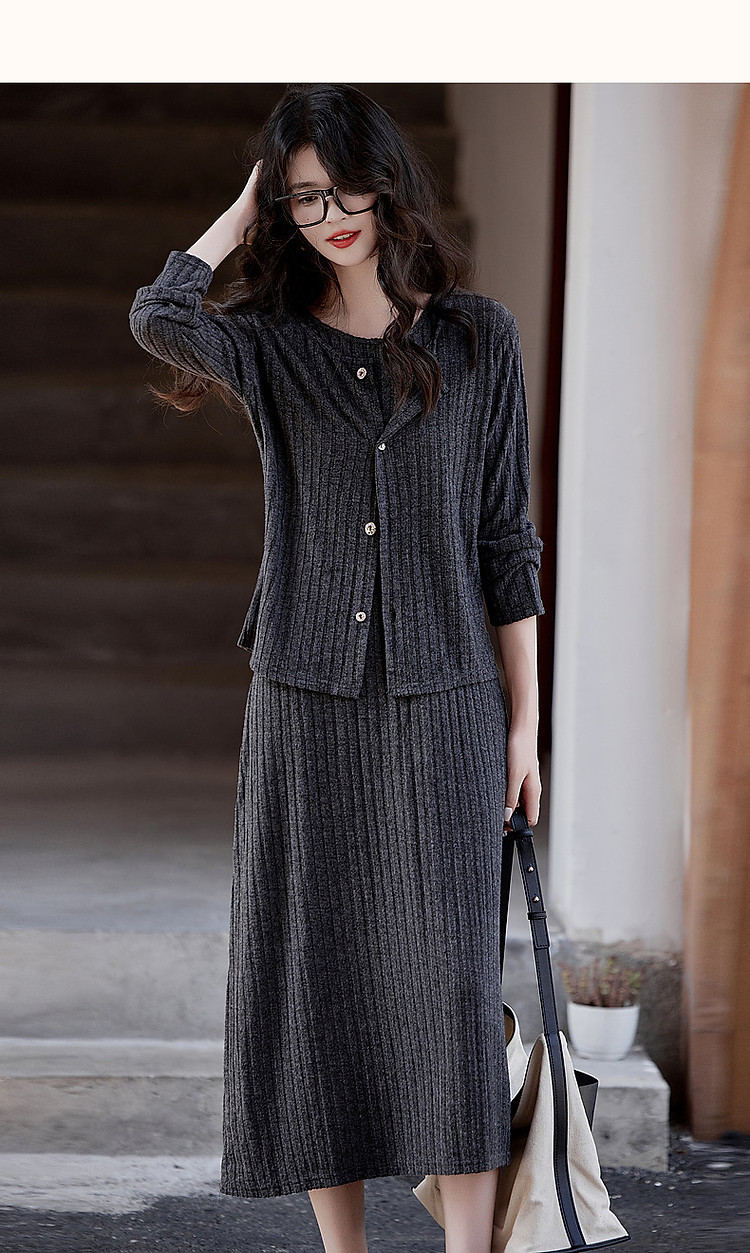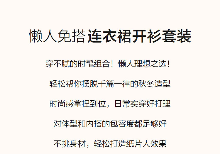 商品名称:【乖乖女】春秋懒人免搭套装A字连衣裙针织开衫两件套女时尚 793793