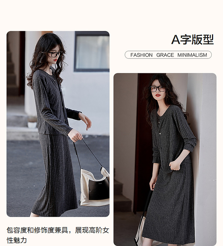 【乖乖女】春秋懒人免搭套装A字连衣裙针织开衫两件套女时尚 793793