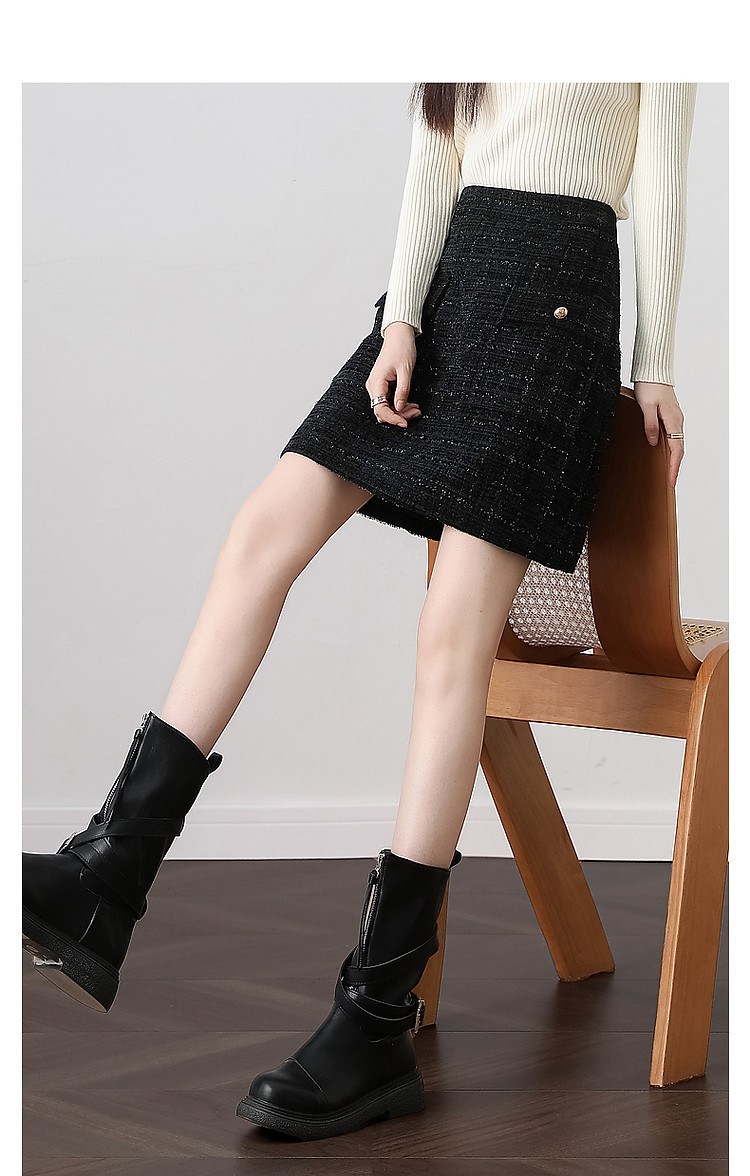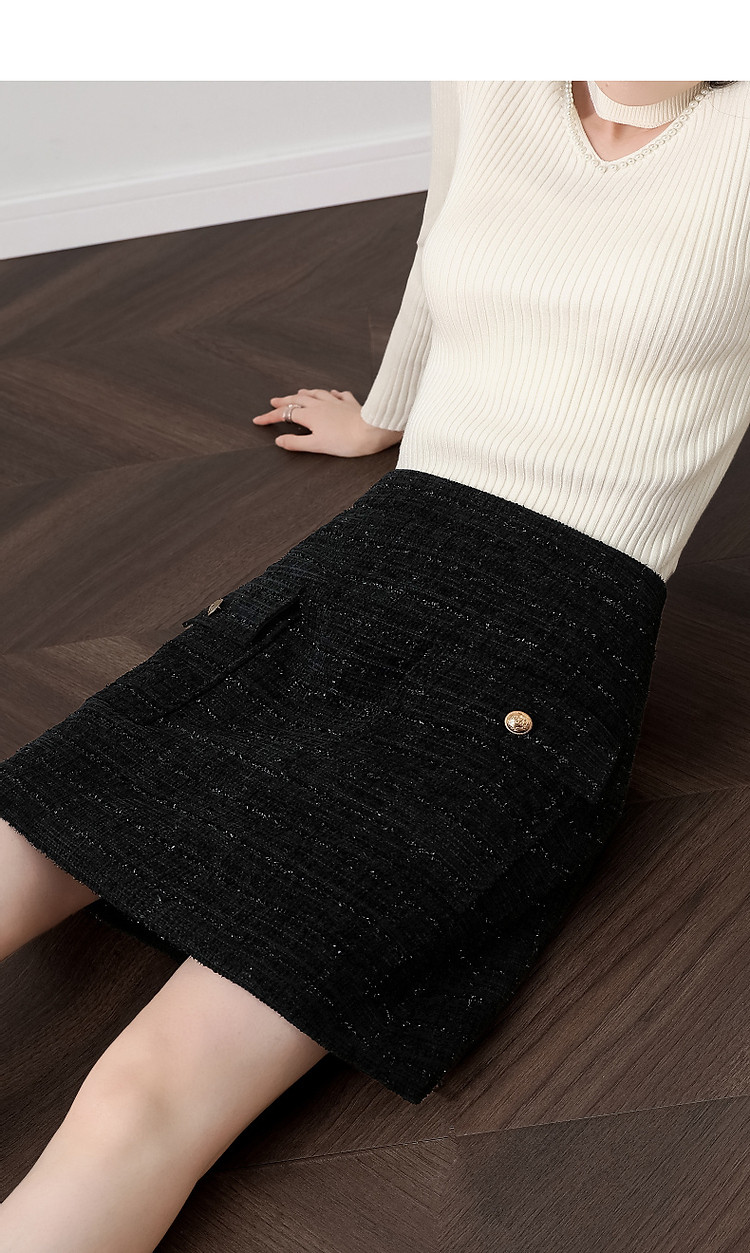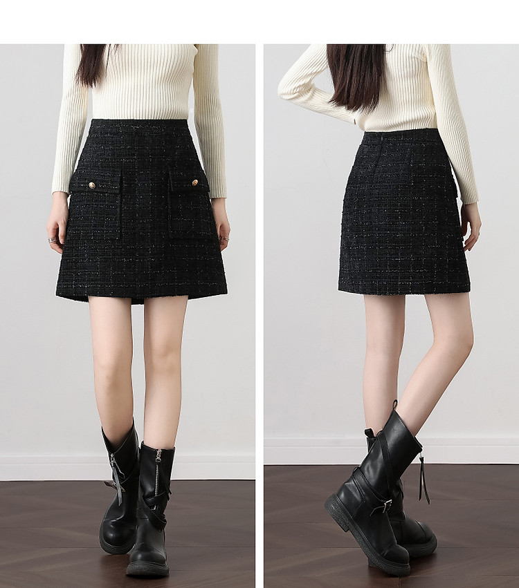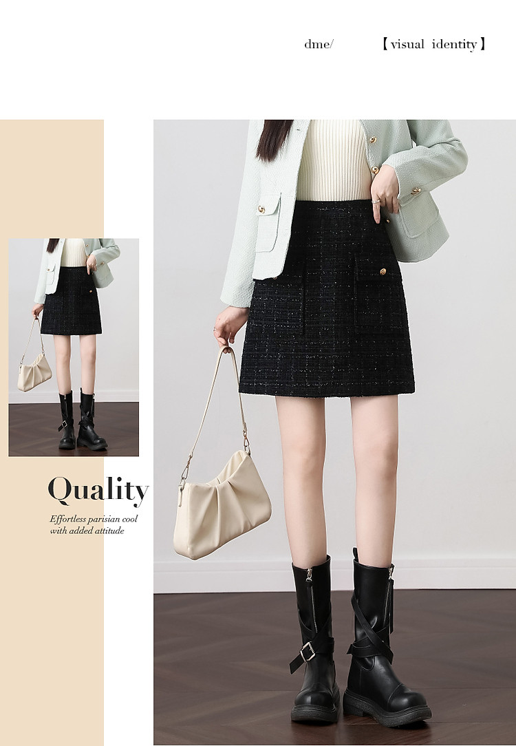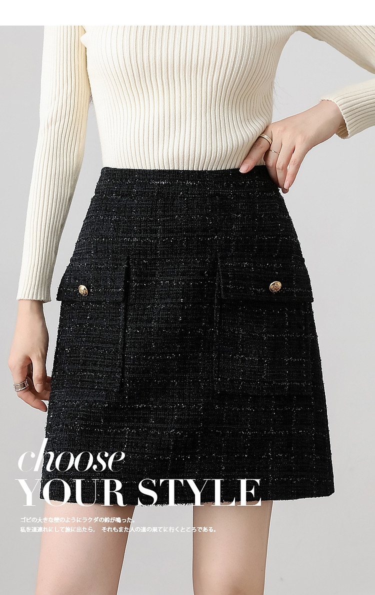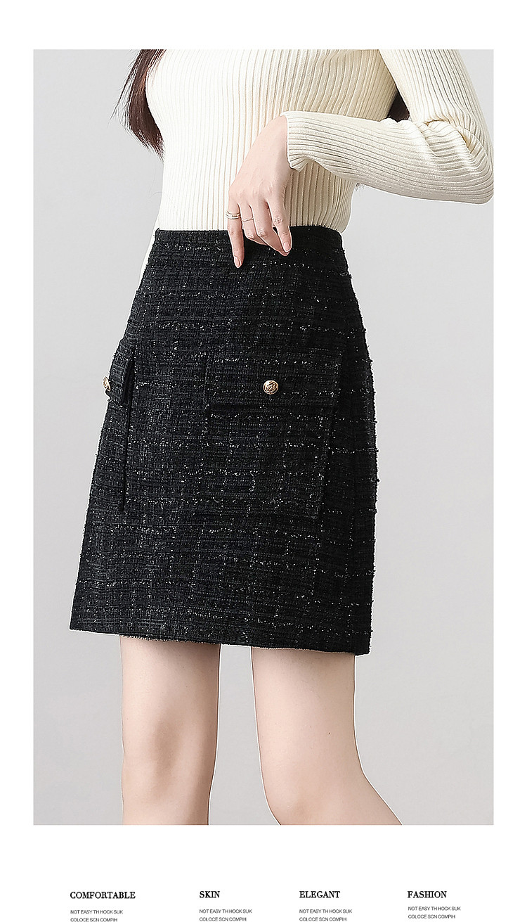 商品名称:【结构主义】秋小香风亮丝金葱口袋A字藏肉半身裙女短款 279489