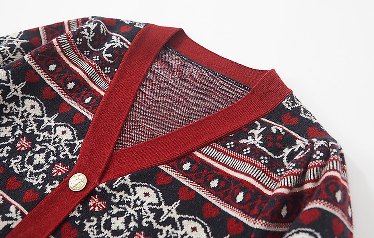 气质v领针织开衫女春秋撞色设计感百搭荷叶边长袖针织衬女上衣 571395