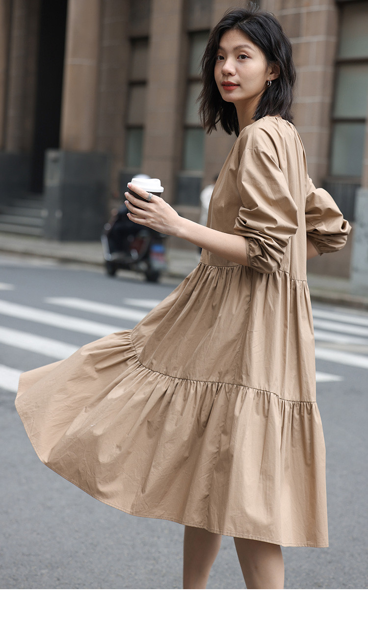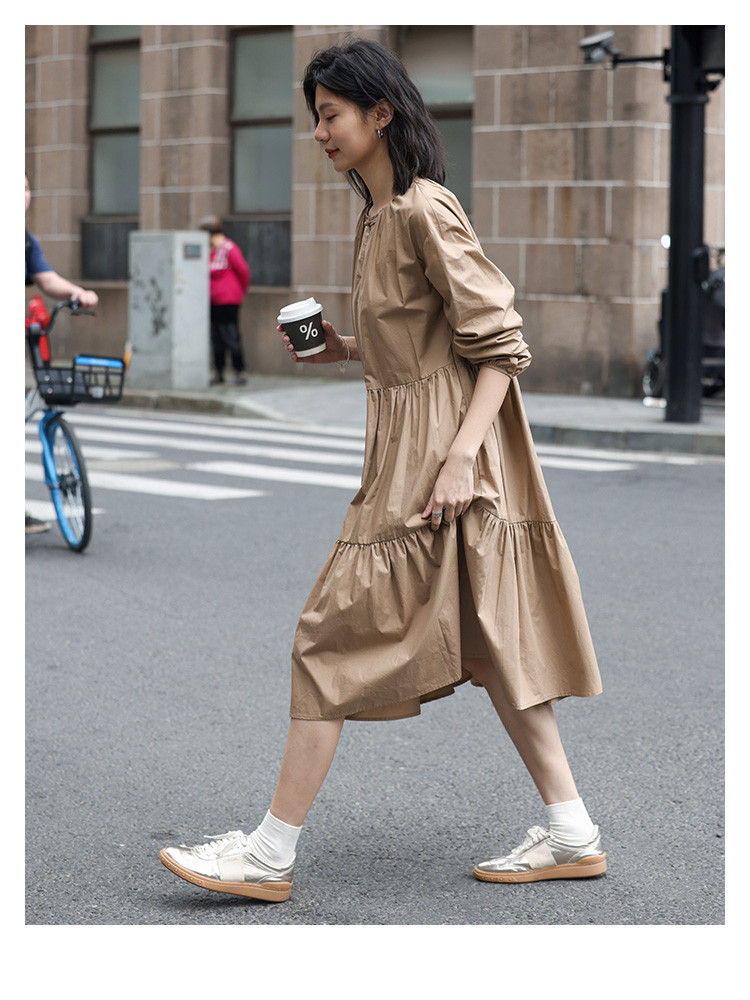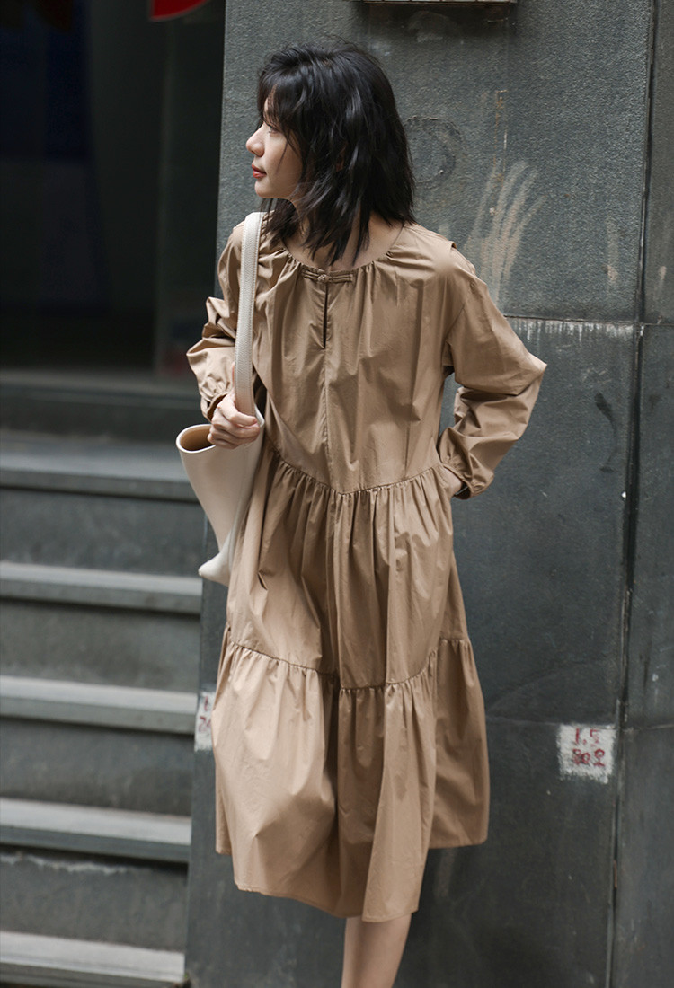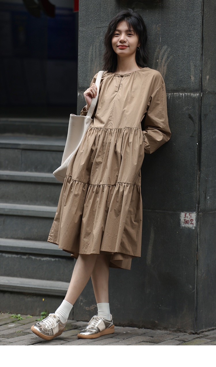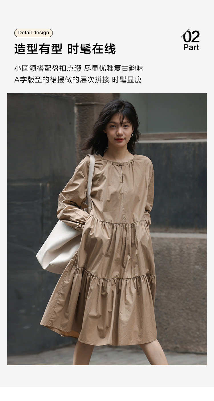 【复古新中式长裙】秋盘扣设计舒适松弛感显瘦连衣裙 055938